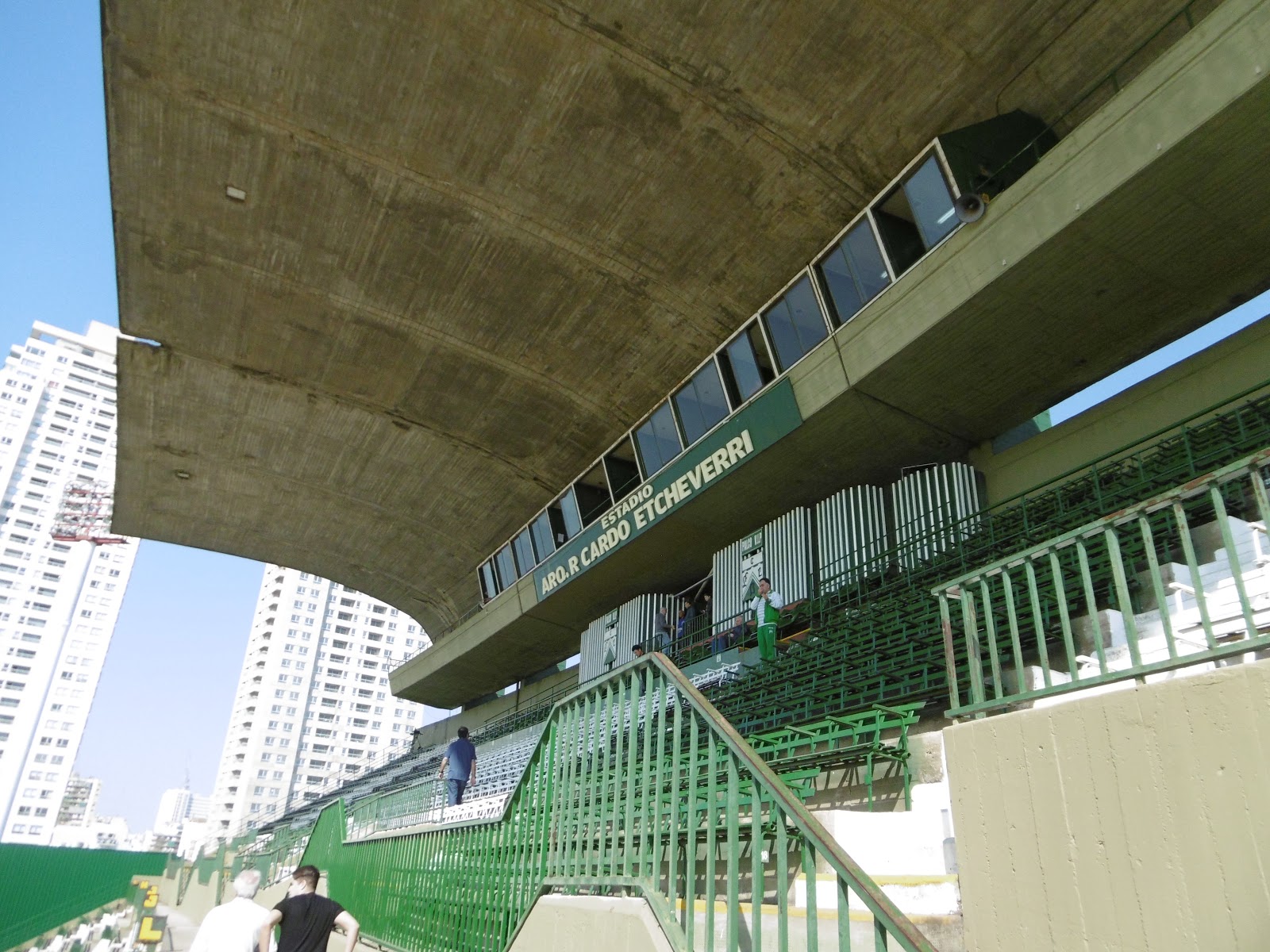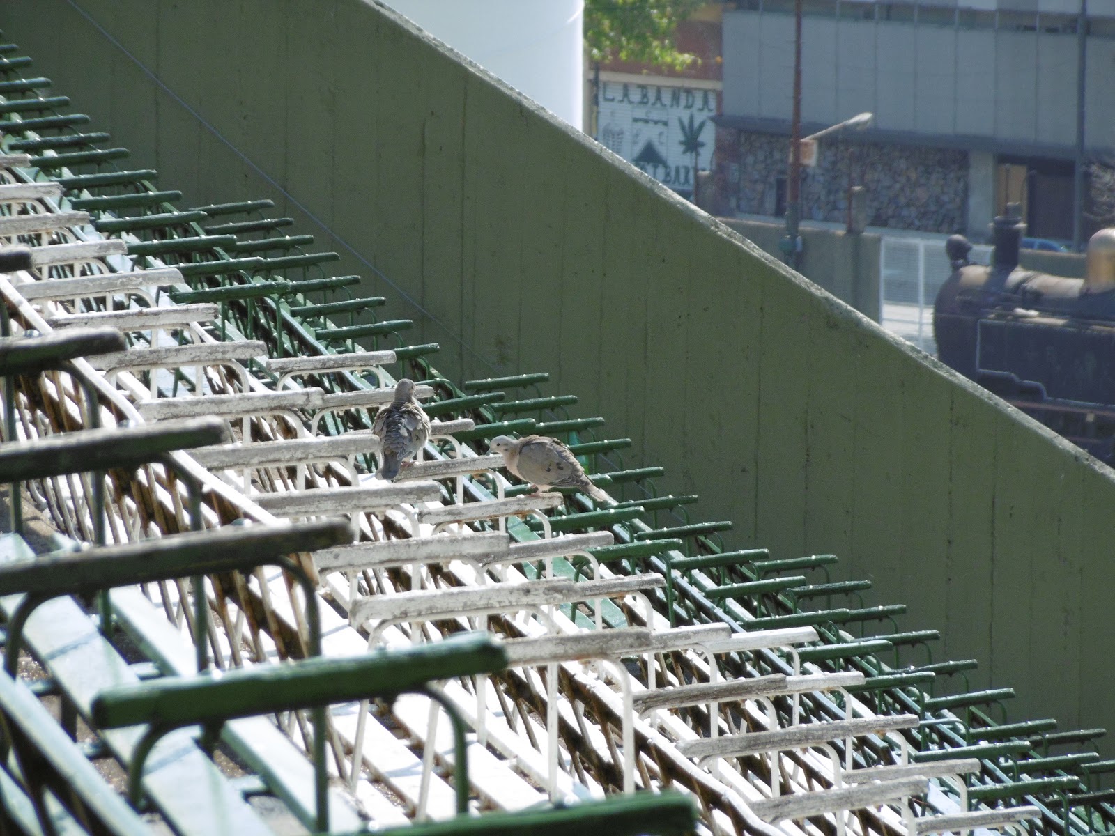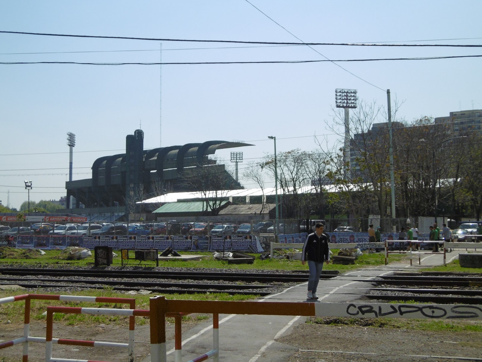 Dem durchaus beeindruckenden Stadion nähere ich mich standesgemäß über die Gleise der Sarmiento-Linie, von der man die mächtige Haupttribüne schon sehr gut sehen kann. Zwei Tribünen sind momentan abgerissen, weil der Bau gerade modernisiert wird und zukünftig für rund 30.000 Menschen Platz bieten soll. Die momentane Kapazität liegt bei lediglich 8.300.