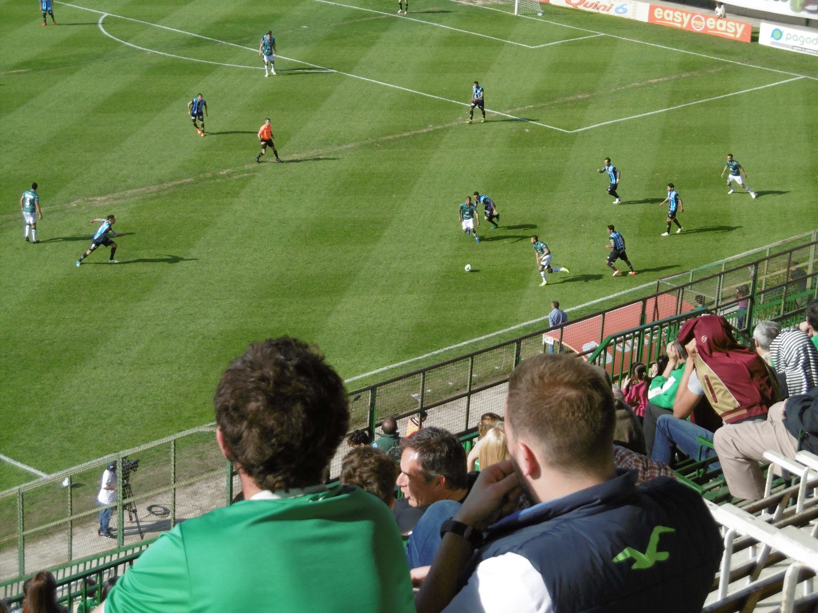 Die fehlenden Tribünen schmälern die Stimmung beim Match sicher etwas, insgesamt würde ich sie aber als durchwegs gut bezeichnen. Der Einmarsch der Trommler und Trompeter mit grünem Rauchtopf zu Beginn und auch die Performance der Fantribüne während des Spiels sind durchaus ansprechend. Lange Zeit kann das Geschehen am Rasen damit eher nicht mithalten. In der 94. Minute fällt allerdings doch noch der vielumjubelte Siegestreffer, der zumindest die meisten Heimfans wohl für das Gezeigte entschädigt.