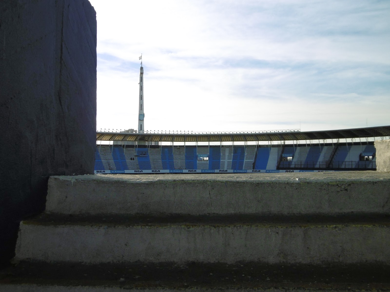Avellaneda erreiche ich wie gesagt nicht mit der U-Bahn, sondern mit einem der Colectivos. Es ist eine von Schwerindustrie geprägte Vorstadt, in der sich auch immer wieder eher heruntergekommenere Stadtteile finden. Das besondere am Stadion von Racing ist seine direkte Nachbarschaft zum großen Rivalen CA Independiente, der nicht einmal 200 Meter weiter seine Spiele austrägt. Auf den Klubseiten führt das dann freilich dazu, dass die Vereine die Luftaufnahmen der Stadien aus der jeweils anderen Himmelsrichtung aufgenommen haben, um ja nicht die Konkurrenz auf dem Bild zu haben.