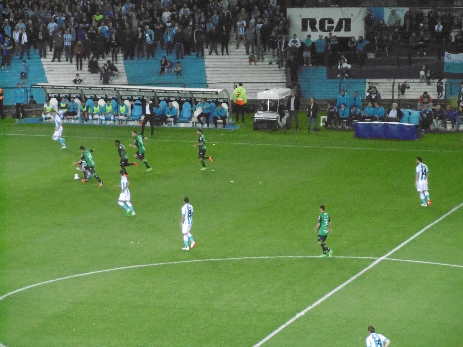 Das Estadio Presidente Peron, auch „El Cilindro“/der Zylinder genannt, ist jedenfalls absolut beeindruckend – besonders dann von innen. Genial ist vor allem der Stehplatzbereich, der sich auf beiden Seiten um das gesamte Oval herumschmiegt und somit bei voller Besetzung für Riesenstimmung sorgen muss. Aber auch bei eher schütterem Besuch wie heute muss das Publikum wenig Konkurrenz scheuen. Neben den Hardcorefans gehen auch die Sitzplatzbesucher immer wieder fanatisch mit Spielszenen mit und sorgen für Gänsehautstimmung. Noch dazu sind die Chants extrem eingängig und auch durchaus abwechslungsreich.