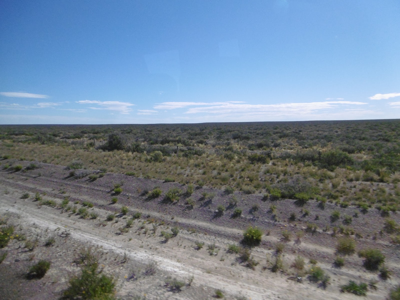 Den Tag davor verbrachte ich überwiegend im Bus. Dafür hatte ich auch die Gelegenheit, viel von der patagonischen Landschaft zu sehen. Diese ist durchaus beeindruckend, auf die Dauer dann aber auch relativ eintönig. Die lange Strecke in der Provinz Chubut ist geprägt von schnurgeraden Straßen, gesäumt von teils riesigen Schafweiden, deren einzige Abwechslung alle 20 bis 40 Kilometer Wirtschaftsgebäude und Haciendas sind. Erst kurz vor der Erdölstadt Comodoro Rivadavia wird das Gebiet hügeliger und abwechslungsreicher.