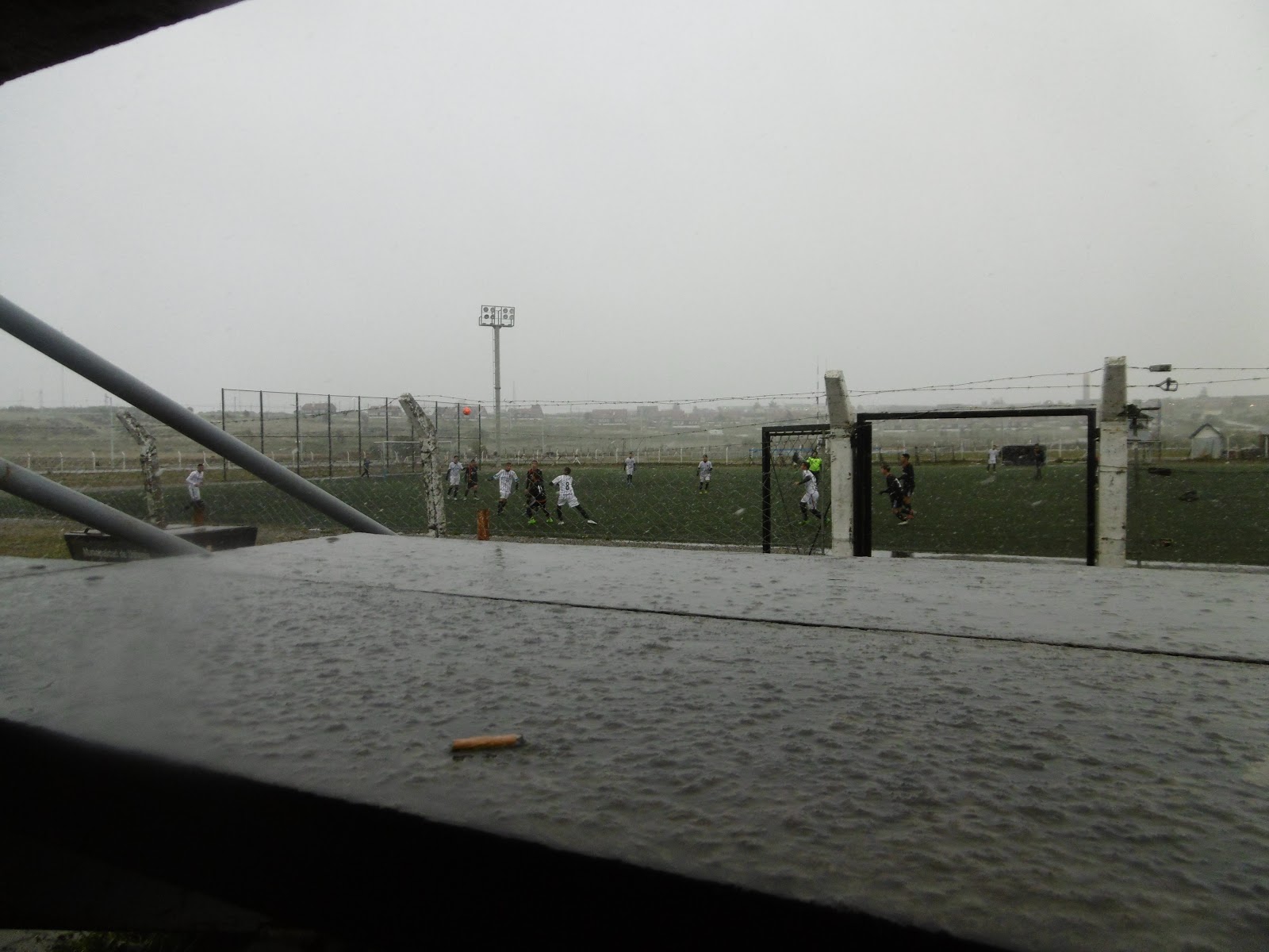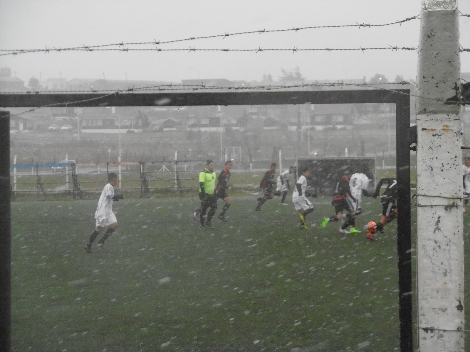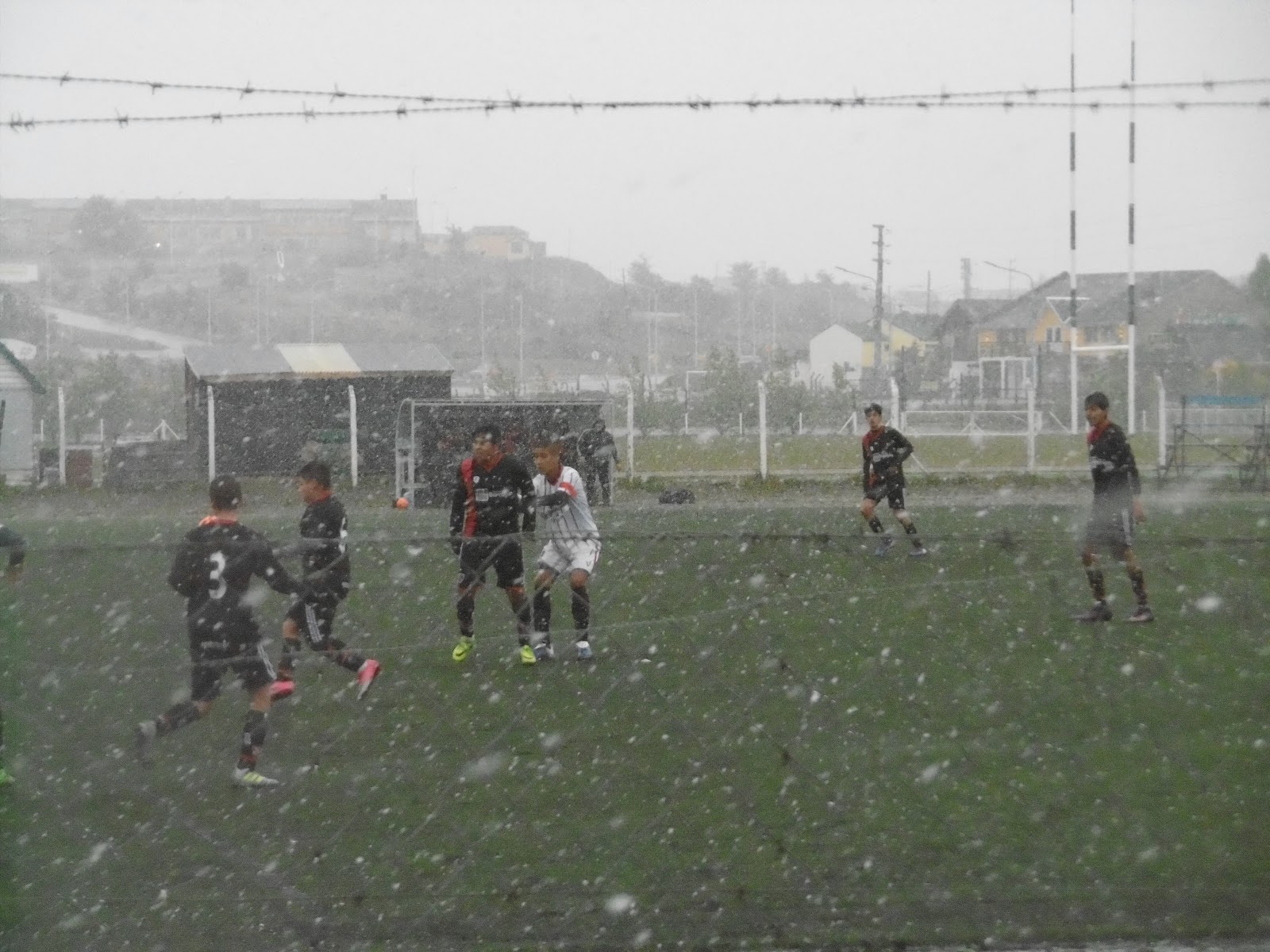Das dritte Spiel des Turniers der patagonischen U15-Auswahlen, das für den nationalen Wettbewerb im nächsten Jahr qualifiziert, tragen die Mannschaften von El Calafate und Trelew im städtischen Stadion von Ushuaia aus. Das Heimteam hatte bereits am Vortag und am Vormittag gegen diese beiden Teams gespielt. Wegen der widrigen Wetterbedingungen war ich mir eigentlich bis zuletzt ziemlich sicher, dass die Partie nicht ausgetragen wird. Mein hartnäckiger Kampf gegen Wind und Schnee wird aber am Austragungsort dann doch belohnt.