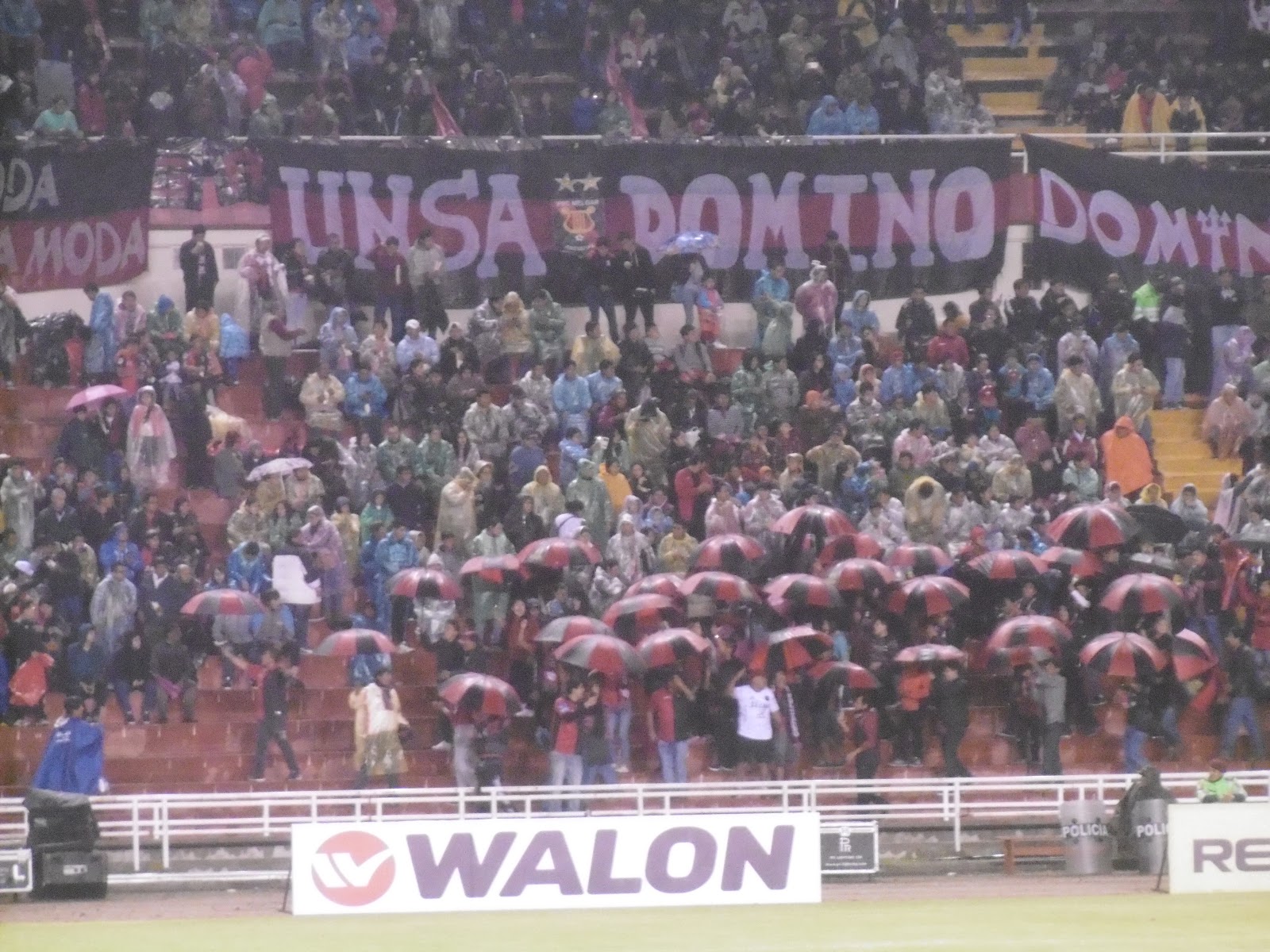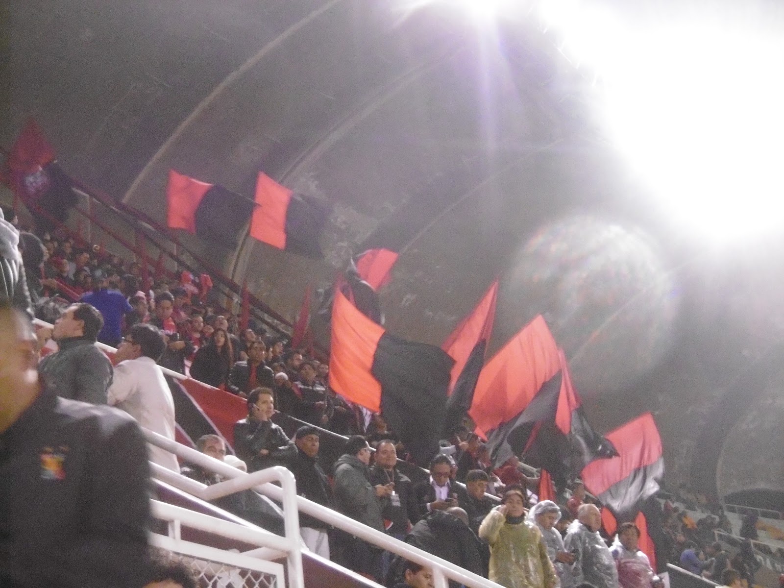 „Der Regen tötet nicht, wenn die Emotion in euch lebt“, meint der Stadionsprecher noch optimistisch, als das kühle Nass bereits in Strömen auf das Publikum herunterkommt. Die Vorstellung der Mannschaft zum Saisonbeginn wird dadurch etwas getrübt, das Highlight der „Noche rojinegra“ mit dem Spiel gegen das kolumbianische Team Once Caldas geht aber zum Glück im Trockenen über die Bühne.