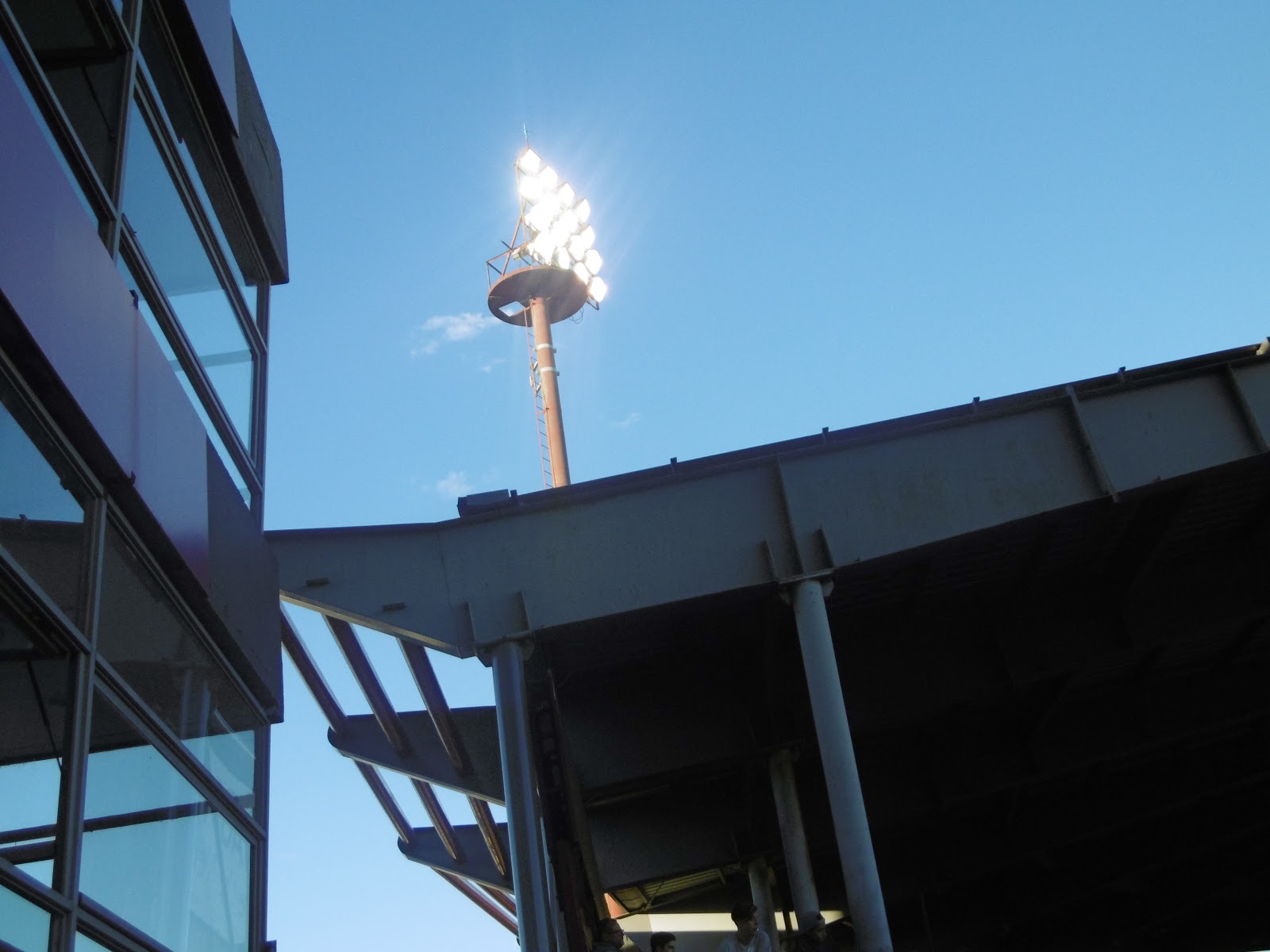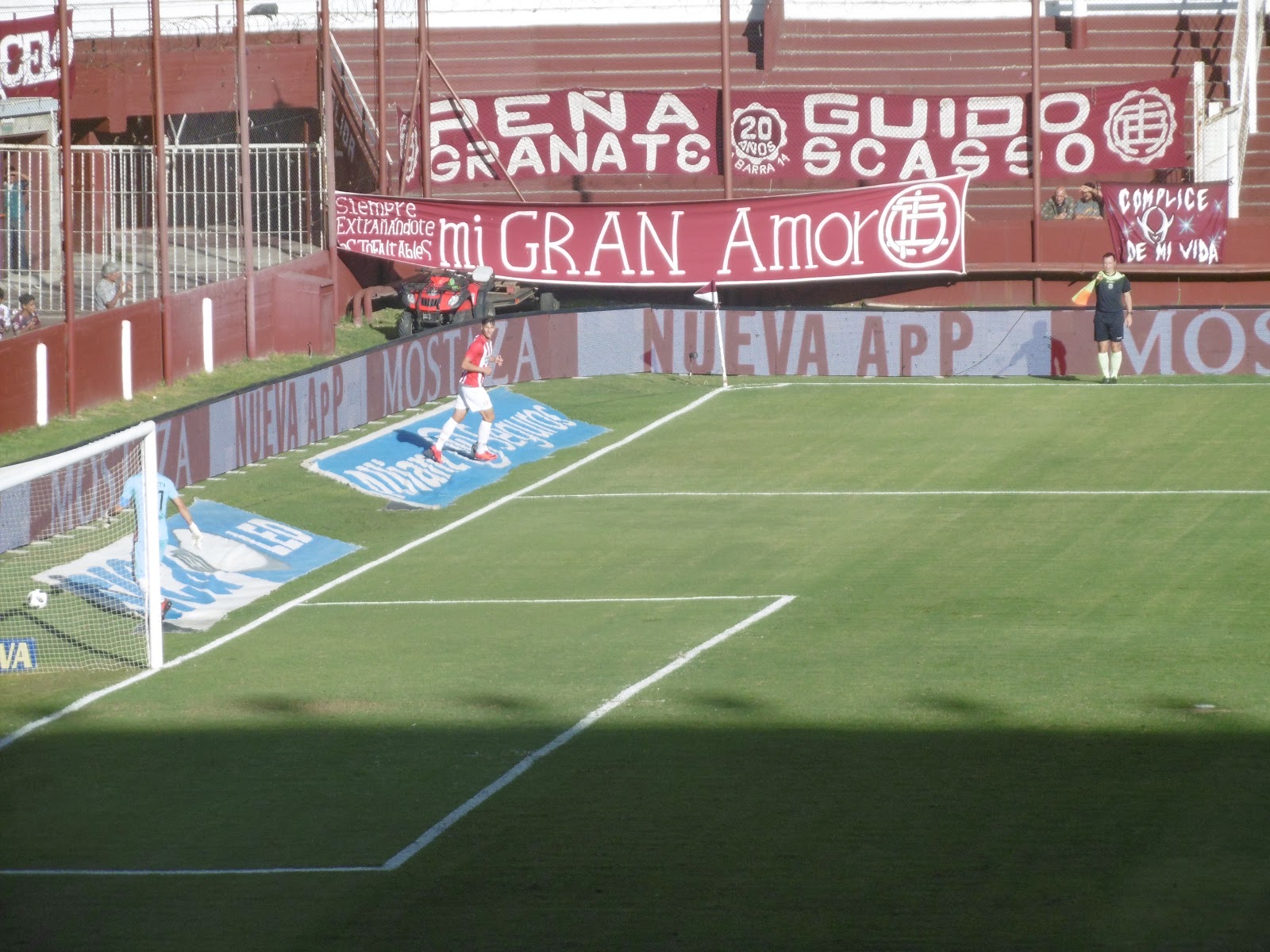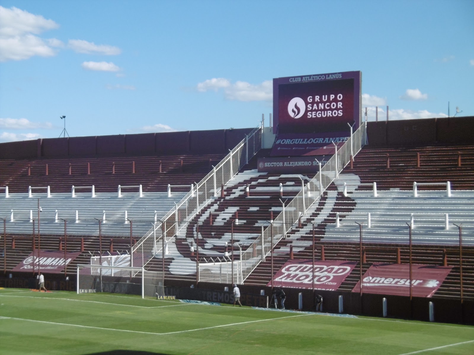 Das Estadio Perez verfügt über eine große Haupttribüne mit Sitz- und sonst lediglich Stehplätzen, selbst auf der Gegengeraden. Die Ränge sind dabei ganz in den Vereinsfarben Granatrot und Weiß gehalten. So richtig füllen wollen sie sich aber an diesem Tag nicht, obwohl die Anpfiffzeit mit 17 Uhr ja eigentlich ziemlich perfekt ist. Die offenbar an der Perfektion kratzende Akkustik lässt aber selbst die wenigen Zuschauer zwischenzeitlich durchaus laut werden.