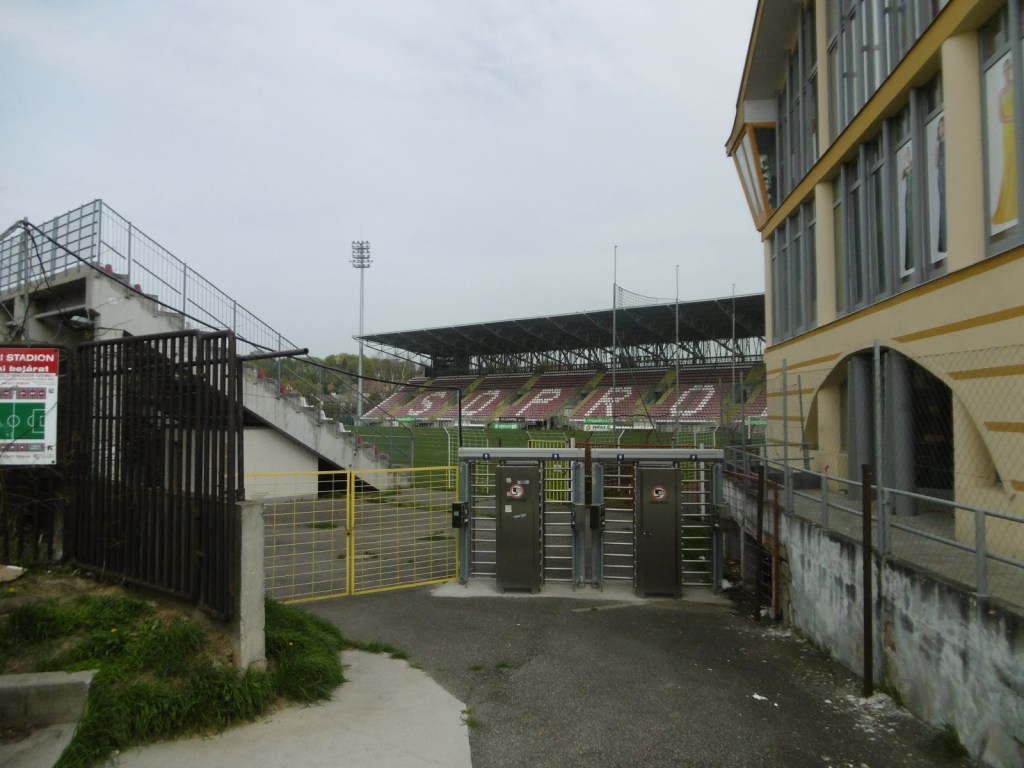 Das städtische Stadion befindet sich nur unweit des Stadtkerns und ist wie hierzulande üblich in den letzten Jahren ordentlich saniert worden. Die Haupttribüne aber auch die Gegengerade würden in Österreich selbst so manchem Bundesligisten gut zu Gesicht stehen, hier aber wird sie vom weit abgeschlagenen Tabellenschlußlicht der zweiten Liga bespielt.