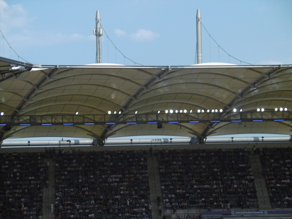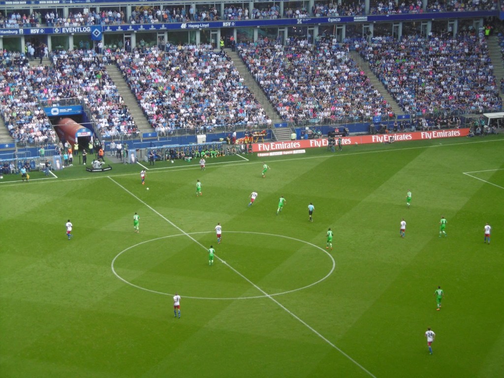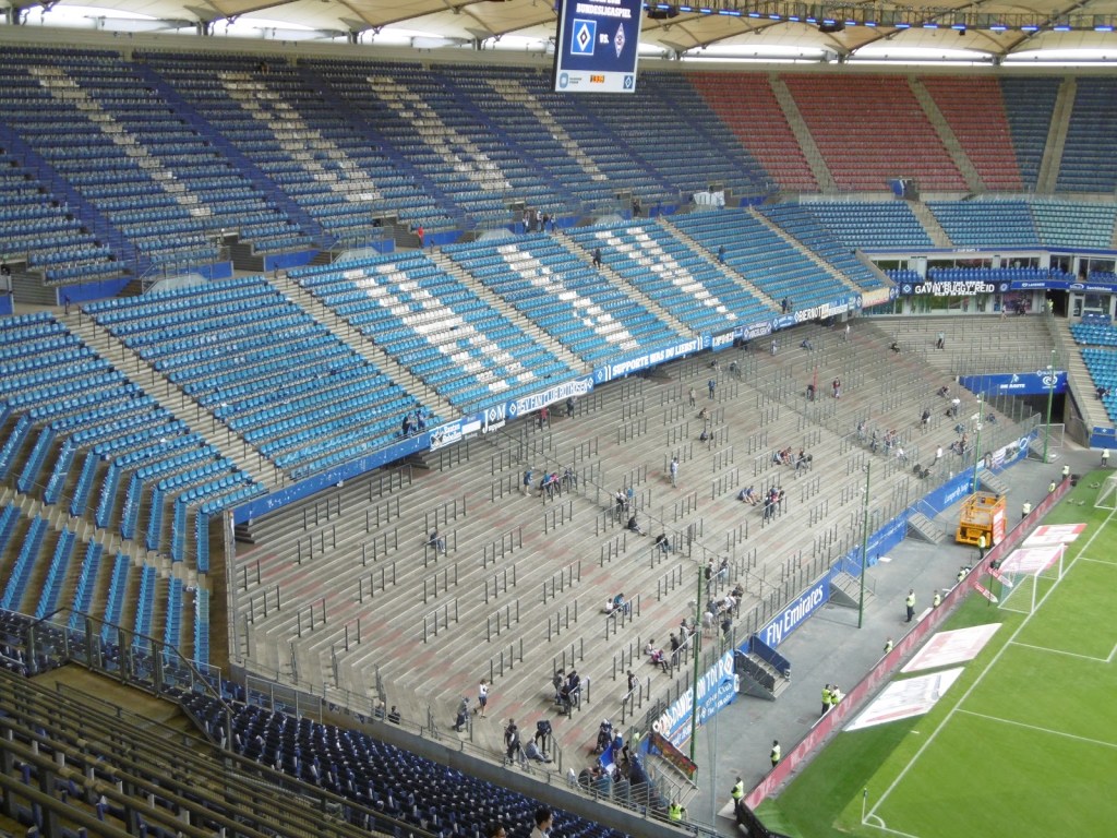 Zwar besuchte ich das Volksparkstadion bereits vor einigen Jahren im Rahmen einer Führung, verbunden mit einem Match blieb es aber jetzt länger der einzig weiße Fleck auf meiner Bundesligakarte. Nun sollte es also auf den allerletzten Drücker doch noch soweit sein – erfreulicherweise ja sogar unter seinem traditionellen Namen, nachdem es seit einigen Jahre nicht mehr durch einen Sponsor verschandelt wird. Die moderne Arena liegt rund 20 S-Bahn-Minuten entfernt vom Hauptbahnhof. Den anschließenden Weg durch einen Park kann man entweder zu Fuß oder per Busshuttle bewältigen.