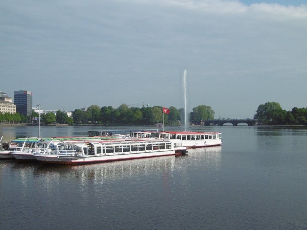 Nach kurzem, noch wolkenverhangenen Start in den Morgen zeigt sich das Hamburger Wetter sehr bald von seiner besten Seite. Eine kleine Innenstadtrunde mit Frühstück an der Binnenalster verkürzen also perfekt die wenigen Stunden, die zwischen Ankunft mit dem Zug und Anpfiff liegen.