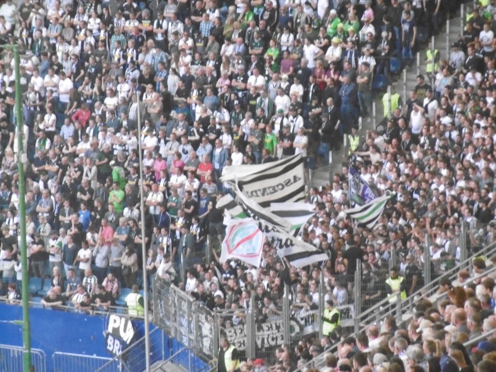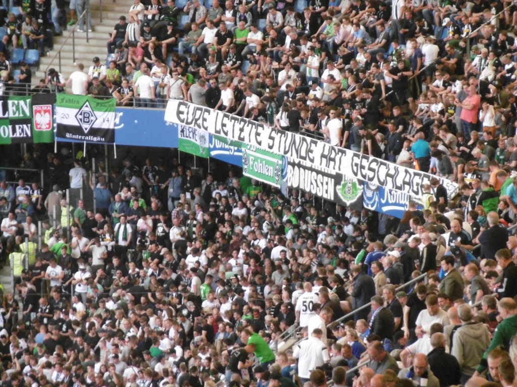 Erstmals bemerkbar machen sich die ansonsten eher enttäuschenden (rund 8.000) Gästefans mit „Endlich zweite Liga“-Gesängen, die auf den Ausgleich durch ihre Mannschaft folgen. Kurz danach können sie allerdings nur mehr aufgrund des Ergebnisses in Wolfsburg weitersticheln, denn nach dem 2:1 für die Hamburger läuft bei den Fohlen trotz baldiger numerischer Überlegenheit nicht mehr wirklich viel zusammen. Die Ereignisse auf den Rängen beeinflussen dann den weiteren Spielverlauf allerdings ohnehin viel stärker.