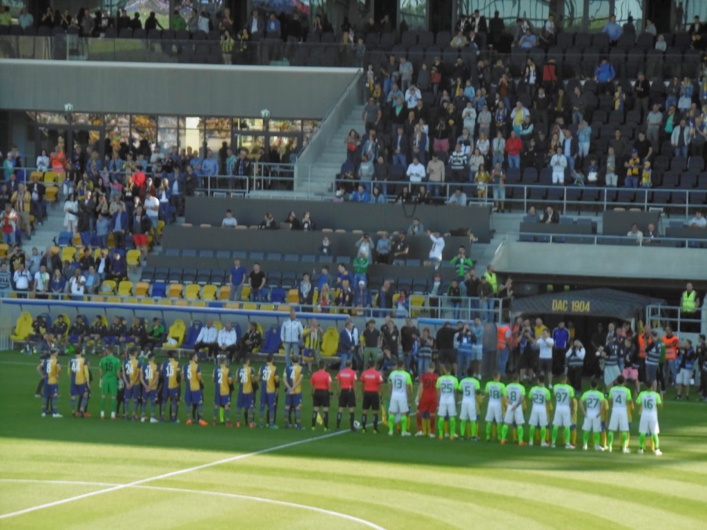 Ob man es jetzt als Heimspiel oder Auswärtsspiel für beide Mannschaften bezeichnet, ist wohl eher Ansichtssache hier. Das hohe Zuschaueraufkommen bei diesem Freundschaftsmatch ist jedenfalls eher unslowakisch, auch wenn in der Hochburg der ungarischen Minderheit selbst bei Meisterschaftsspielen immer wieder sehr viele Menschen den Weg ins Stadion finden.