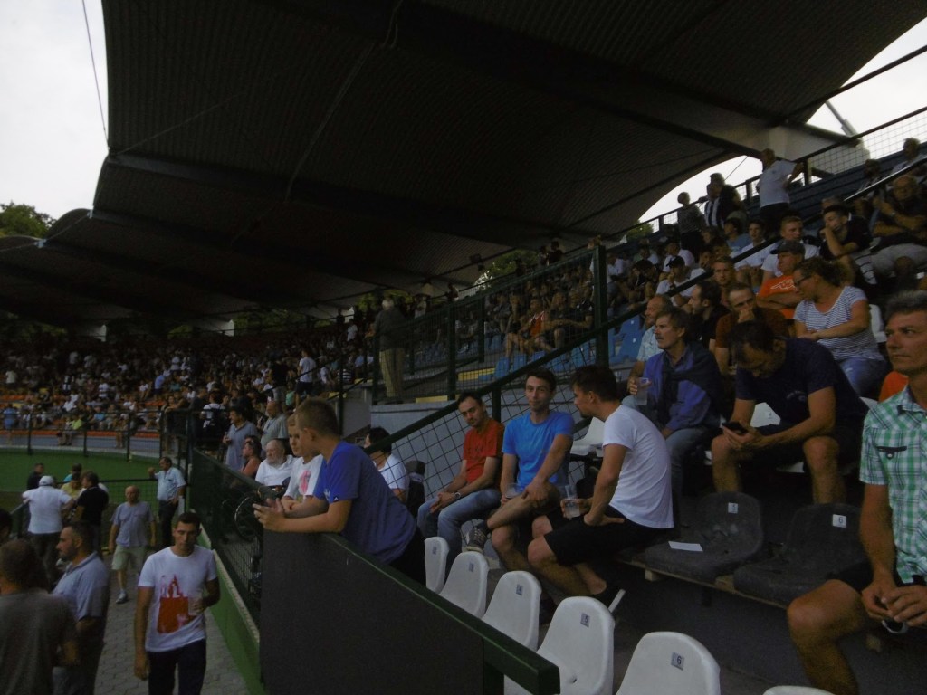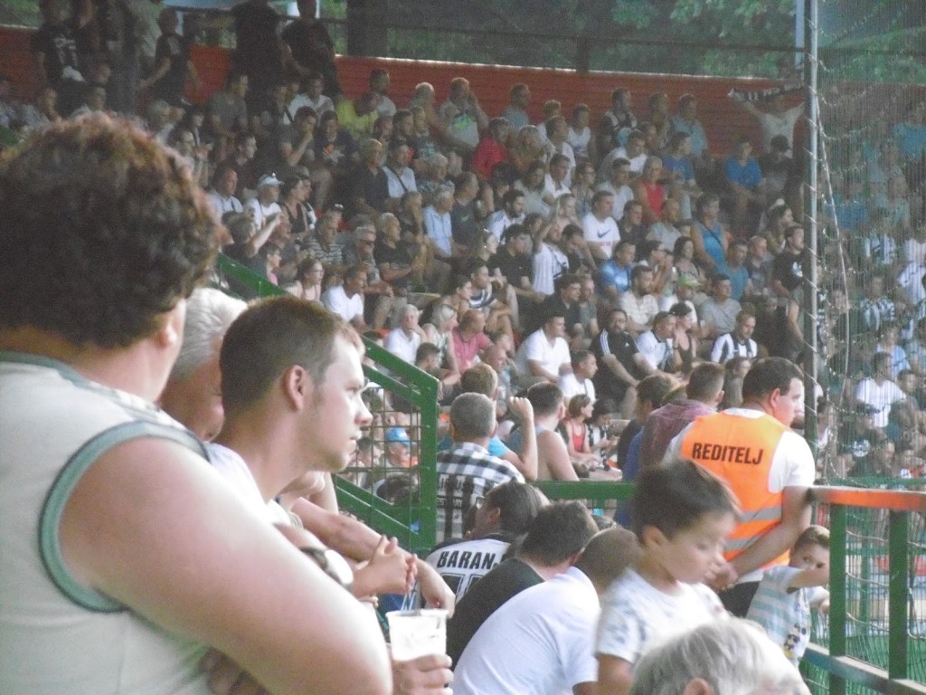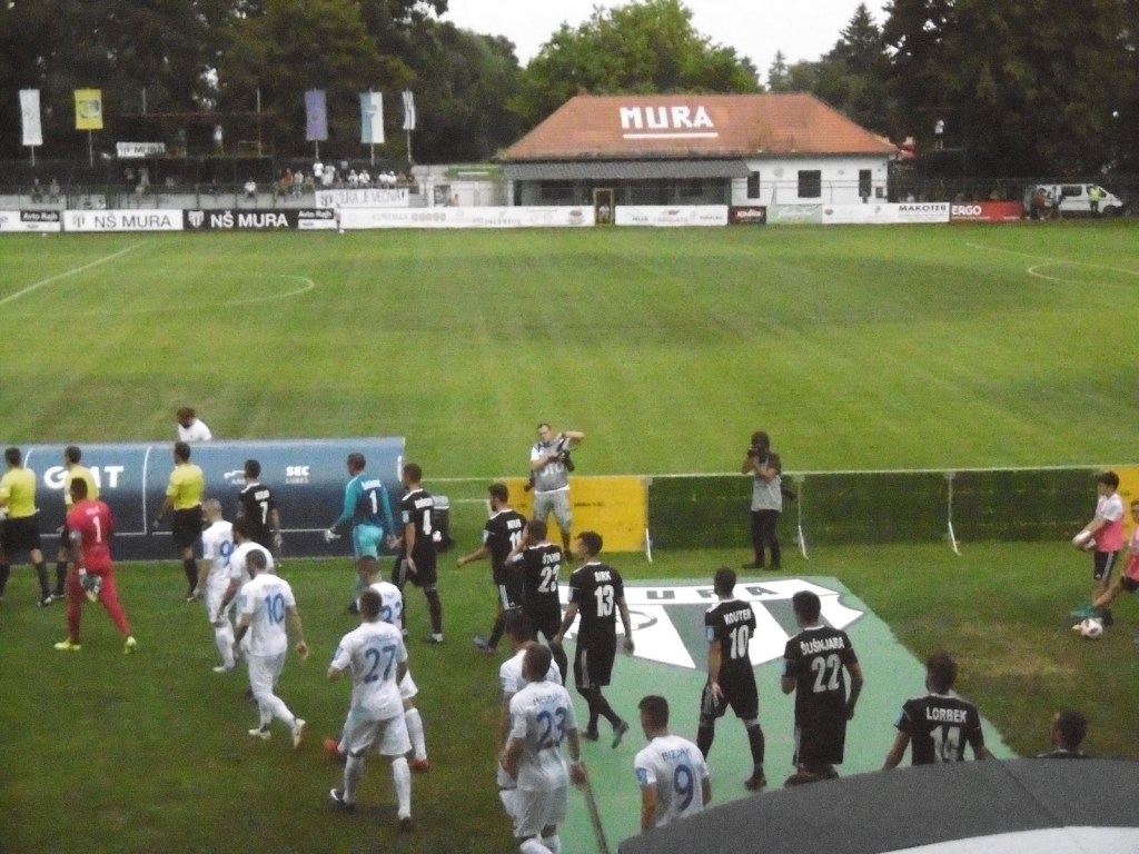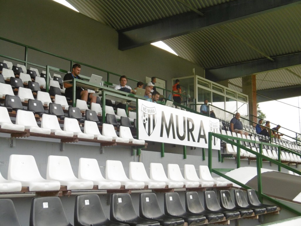 Die Mura-Fans gelten angeblich neben jenen aus Maribor und Ljubljana als die treuesten und heißblütigsten des Landes. Zumindest bei unserem Besuch bekommen wir dies auch zu spüren. Zwar gibt es auf einer alleinstehenden Tribüne des Stadions sogar einen kleinen Ultras-Bereich, dem wird aber von den „Normalos“ sehr schnell der Rang abgelaufen. Sprechchöre und Anfeuerungsrufe kommen über das ganze Spiel hinweg aus allen Sektoren. Selbst Ballgewinne tief in der eigenen Hälfte werden gefeiert, als ob bereits die gesamte Saison damit gewonnen wäre. Die Lautstärke ist extrem beeindruckend, vor allem auch weil das Stadion durch seine Weitläufigkeit nicht gerade ideal für eine dichte Atmosphäre errichtet wurde.
