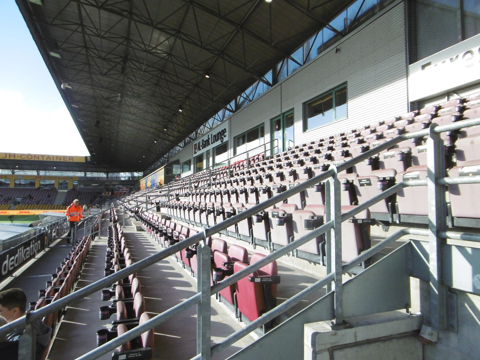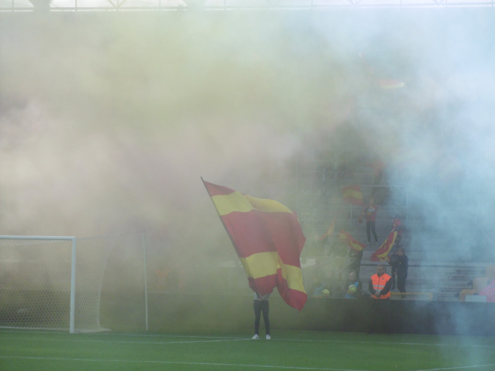 Dass das Interesse an dieser Konstellation allerdings nicht in Begeisterung für den Klub übergeht (zumindest bei mir), zeigt sich schon bald nach Betreten des Stadions. Alles, von der viel zu laut beschallenden Musik bis hin zur mickrigen, unkreativen und aufgesetzt wirkenden Fanzene, deutet hier auf einen nur zu Erfolgszeiten angenommenen Kunstverein hin.