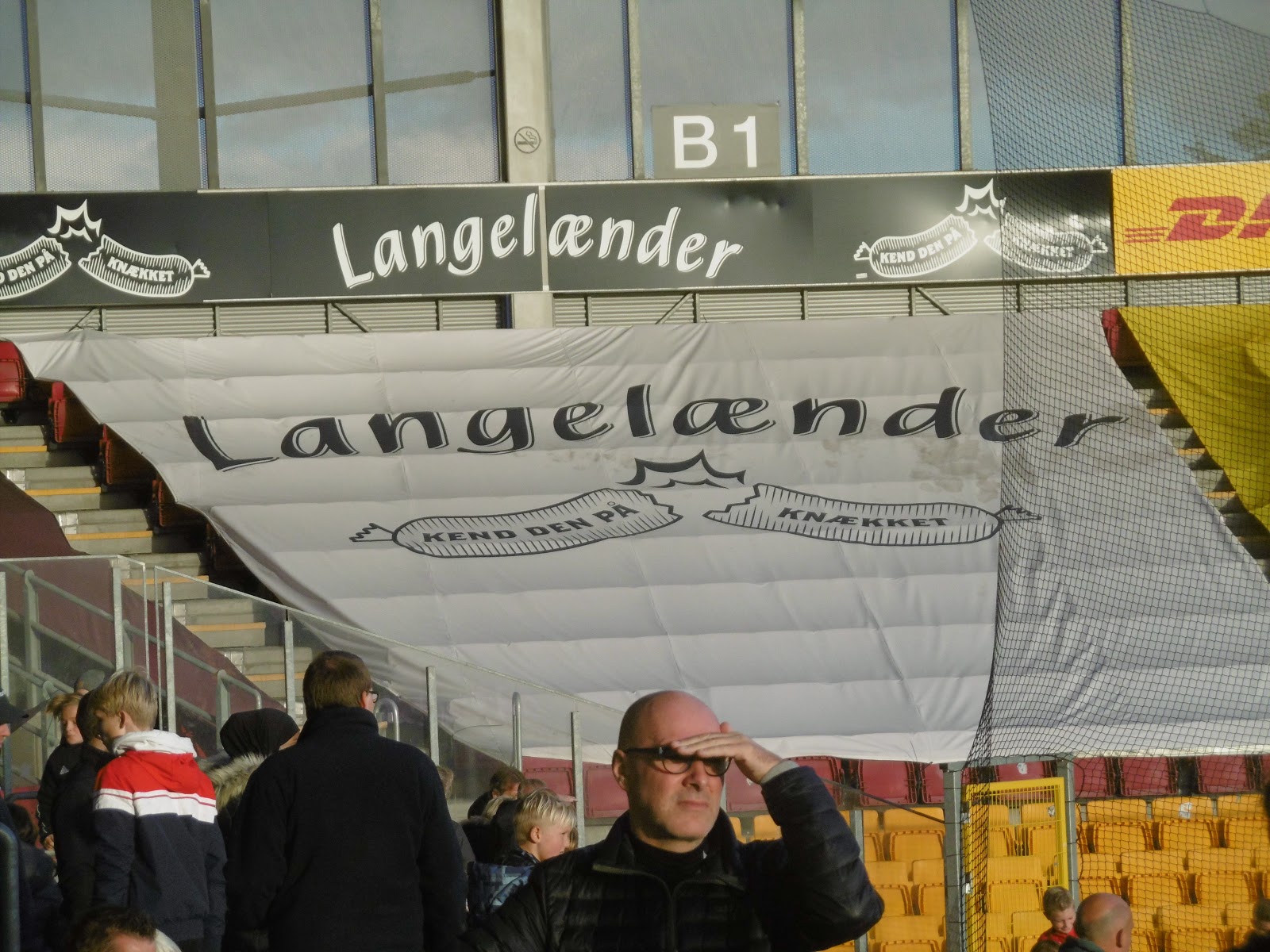 Anders da schon die Auswärtszene des FC Midtjylland, der im Gegensatz zu den Gastgebern ja ein „echter“ Fusionsverein ist. Zwar selbst höchstens mit rund 300 Fans anwesend, singen sie ihr Gegenüber dennoch locker aus dem Stadion. Sie verfügen über kreatives und vielfältiges Liedgut, das eingängig ist und selbst beim reinen Zuschauen und -hören Spaß macht.