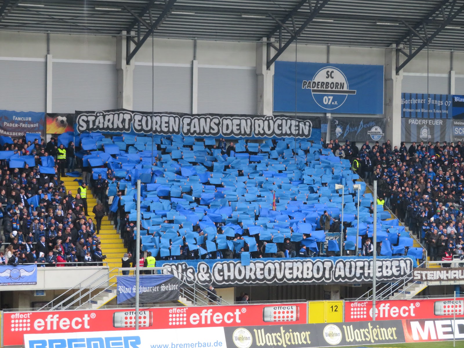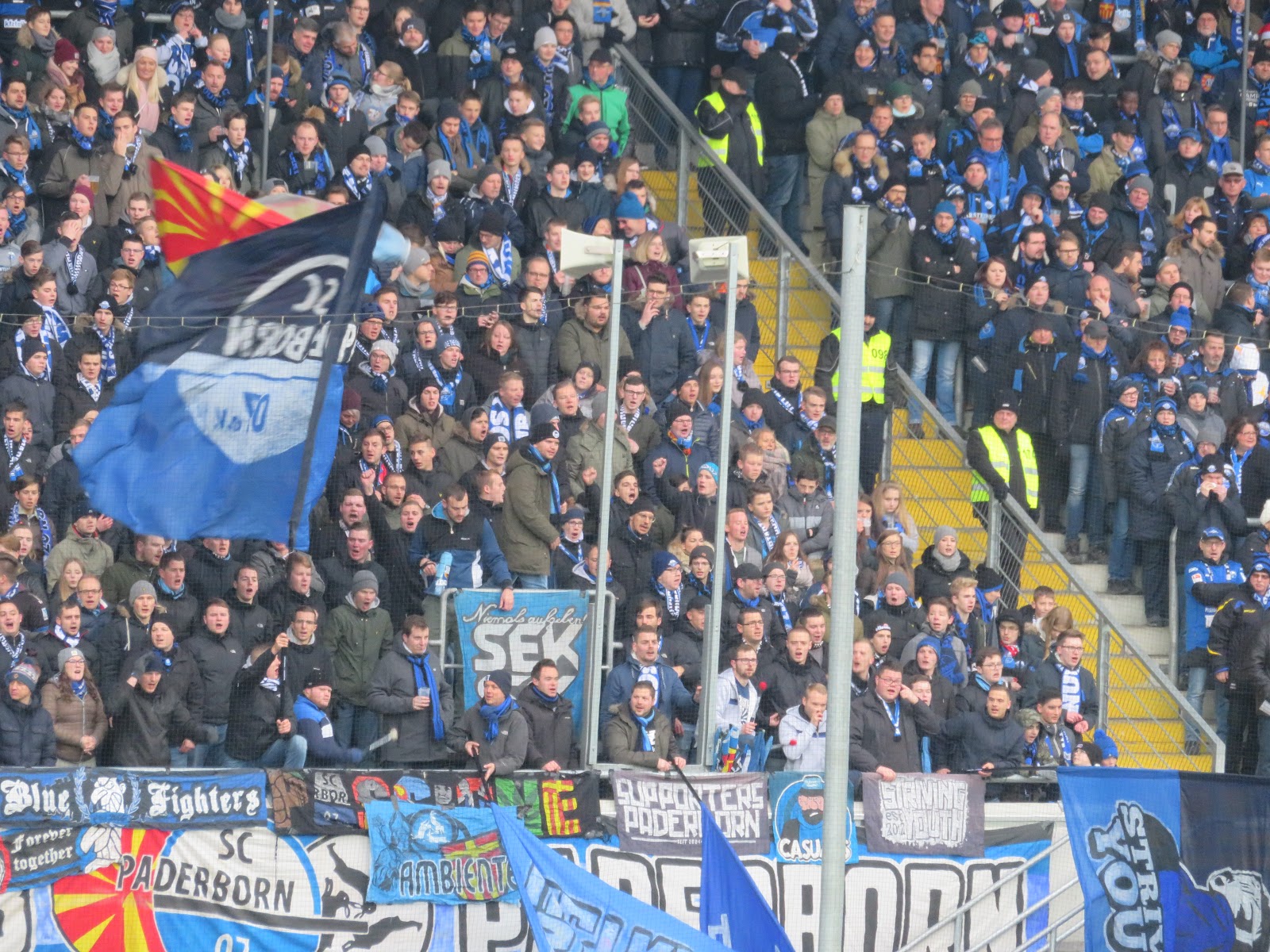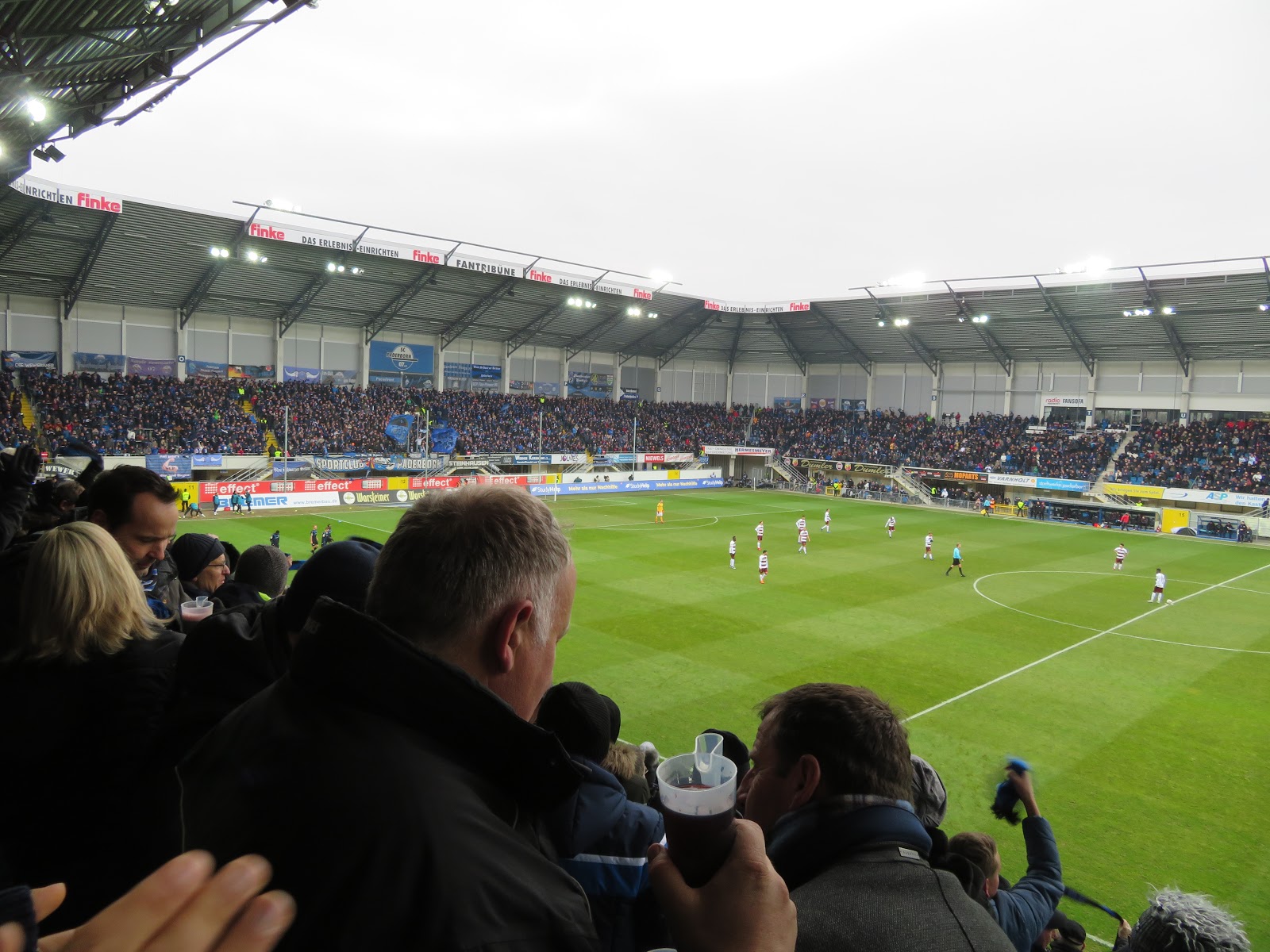 Wenn es schon schweinekalt ist, dann kann man gleich auch den gesamten Tag im Fußballstadion verbringen. Den Auftakt an diesem Adventsamstag machte der SC Paderborn. Bisher wegen vermuteter Langweiligkeit immer gemieden, aufgrund des heutigen Gegners aber durchaus aufgepimpt und insofern abgehakt.