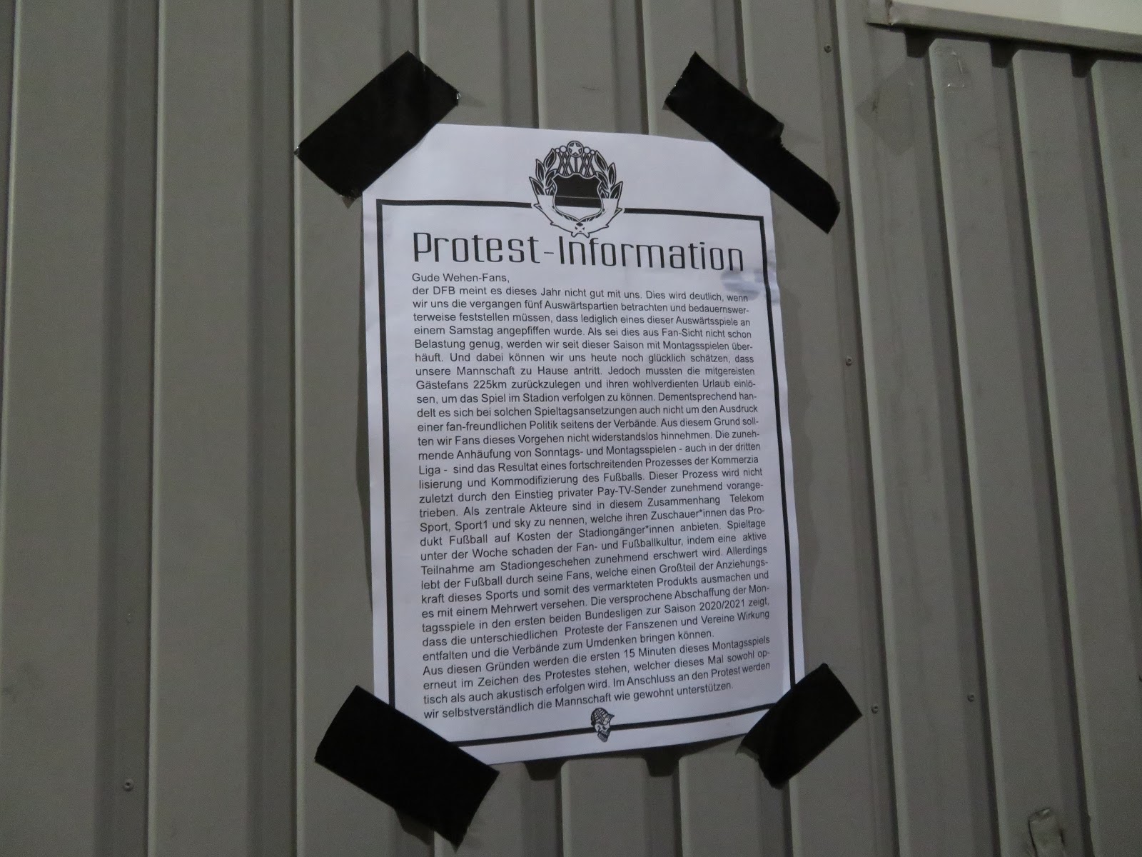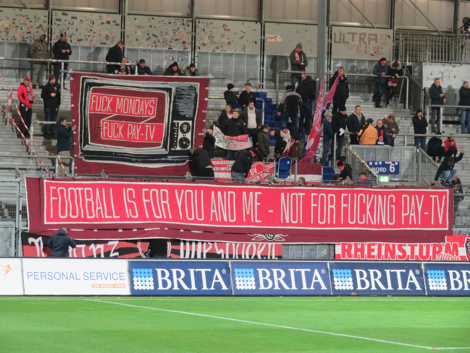 Auch fantechnisch wird es heute nicht besser, obwohl beide Lager mit Protestaktionen gegen die Montagsspiele durchaus Sympathien sammeln können. Höhepunkt davon ist ein „Scheiß DFB“-Wechselgesang zwischen beiden Kurven.