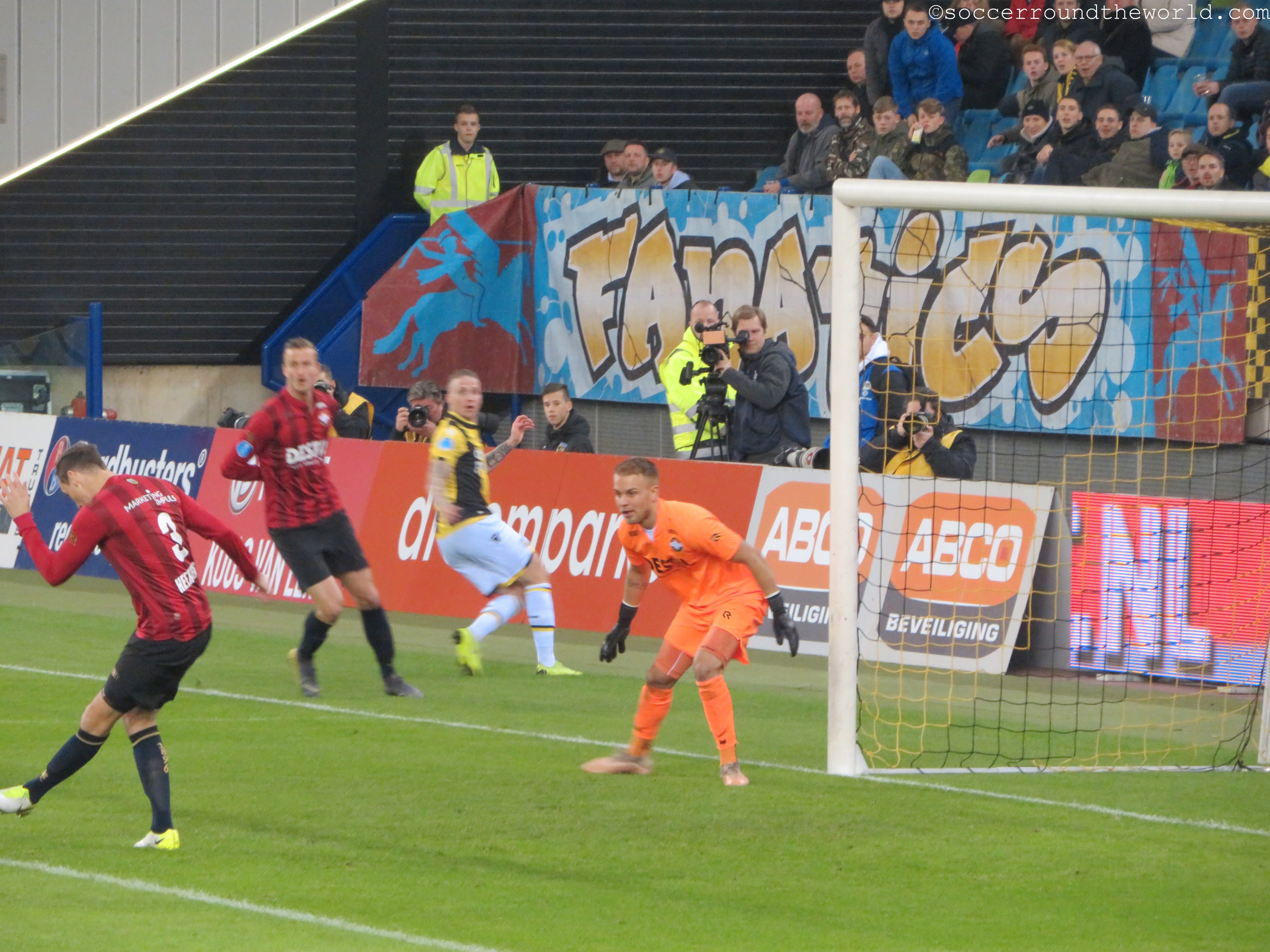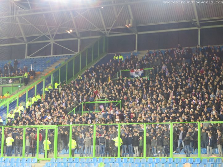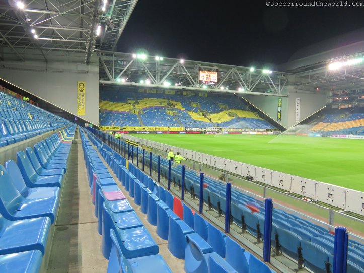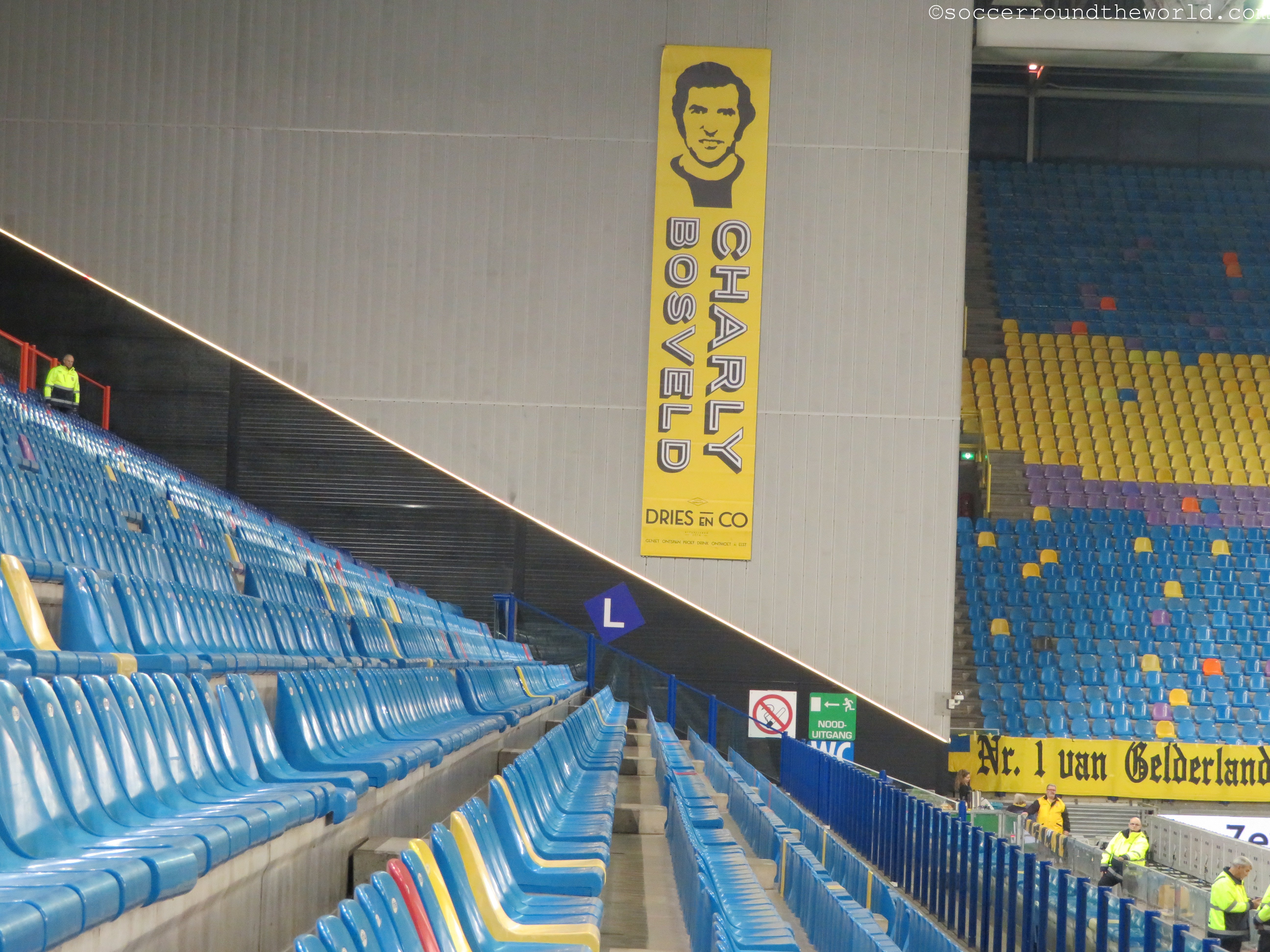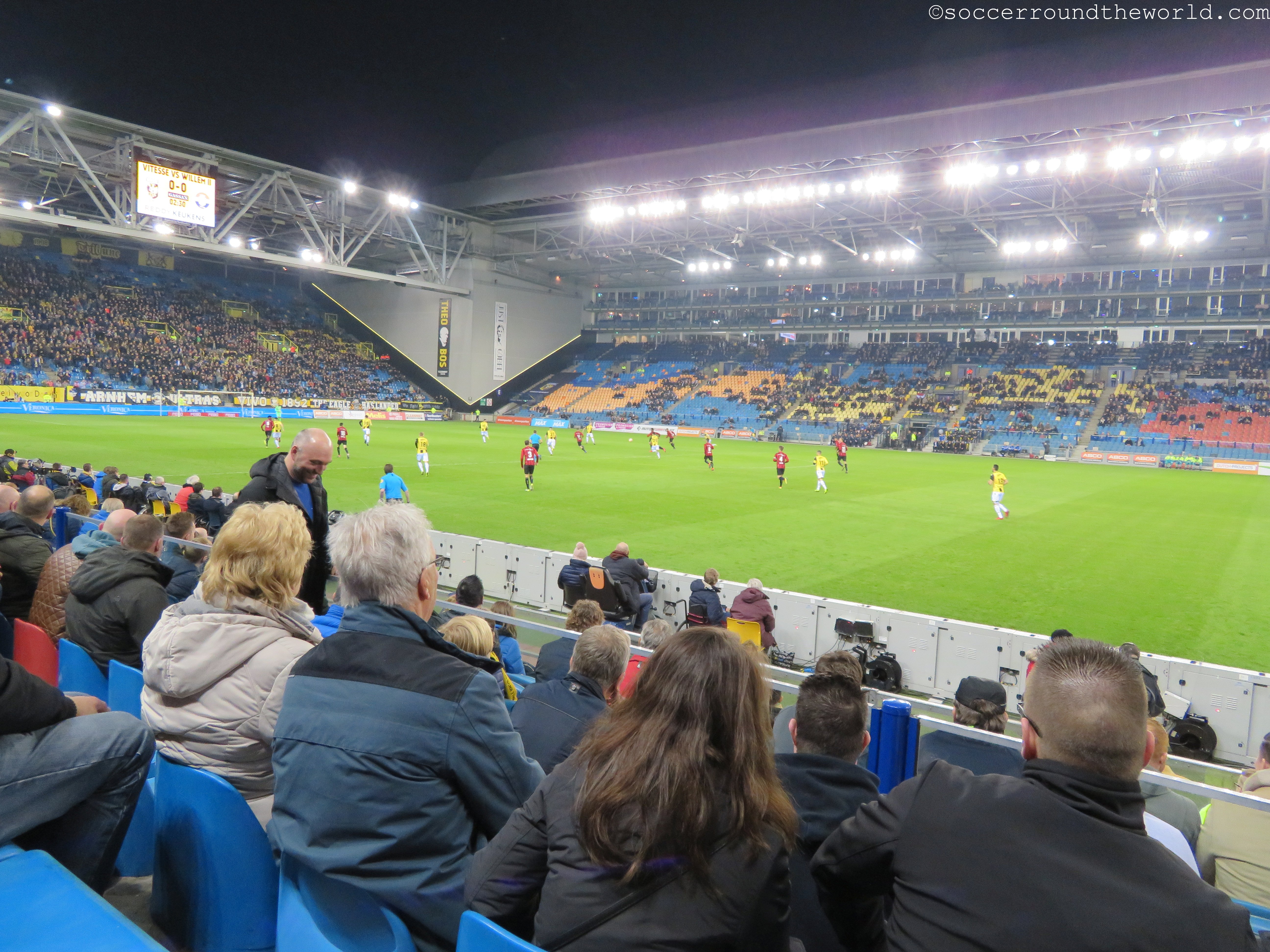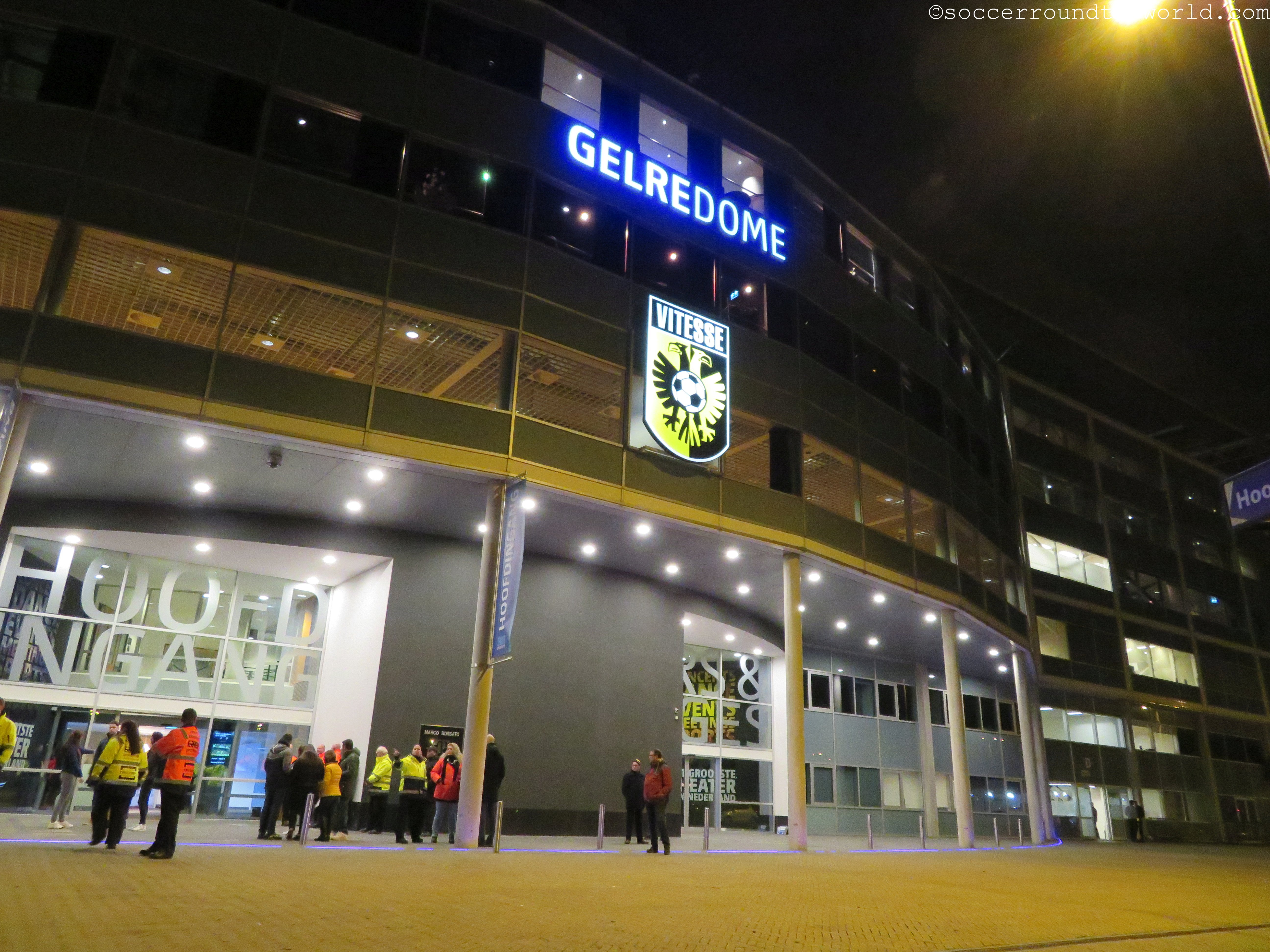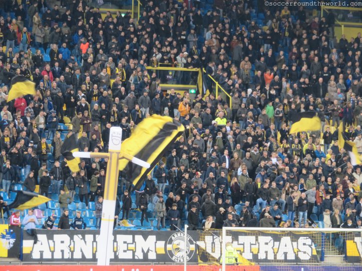 Leider keine große Geschichte besitzt allerdings der Gelredome, das „größte Theater/Konzerthaus“ der Niederlande. 1998 eröffnet, gleicht er eher einem Einkaufszentrum als einem Stadion. Einzig das ausziehbare Spielfeld bzw. deren am heutigen Spieltag leere Außenwanne kann zumindest von einem technischen Standpunkt beeindrucken. Vor allem im Bereich unterhalb der Tribüne, wo sich die Fressmeile befindet, ist der Gelredome eigentlich nur abstoßend. Ein schlechter Witz zudem die nur in 5er-Schritten aufladbare Prepaid-Karte mit der man die völlig überteuerten Lebensmittel erwerben kann. Rundum eine Arena zum Abgewöhnen.