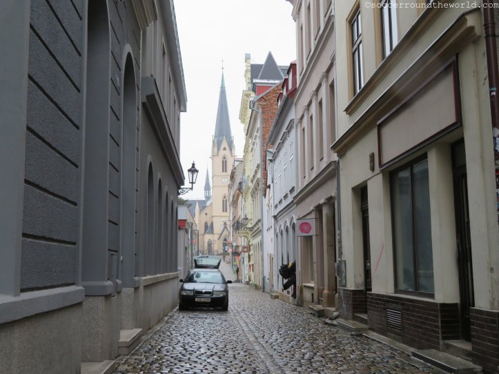 Der „Sturz mit einem Tier“ (so zumindest die computergenerierte Erklärung im Railjet nach Pardubice) und die daraus resultierende 40-minütige Verspätung lässt mich kurz am zeitgerechten Erreichen der Stadt zweifeln. Der Anschluss wird trotzdem gepackt und nach weiteren drei Stunden im Regionalzug schlage ich doch im ebenso verregneten Liberec auf. Dementsprechend ausgestorben präsentiert sich mir auch die Stadt, gebaut auf hügeligem Granitgestein.
