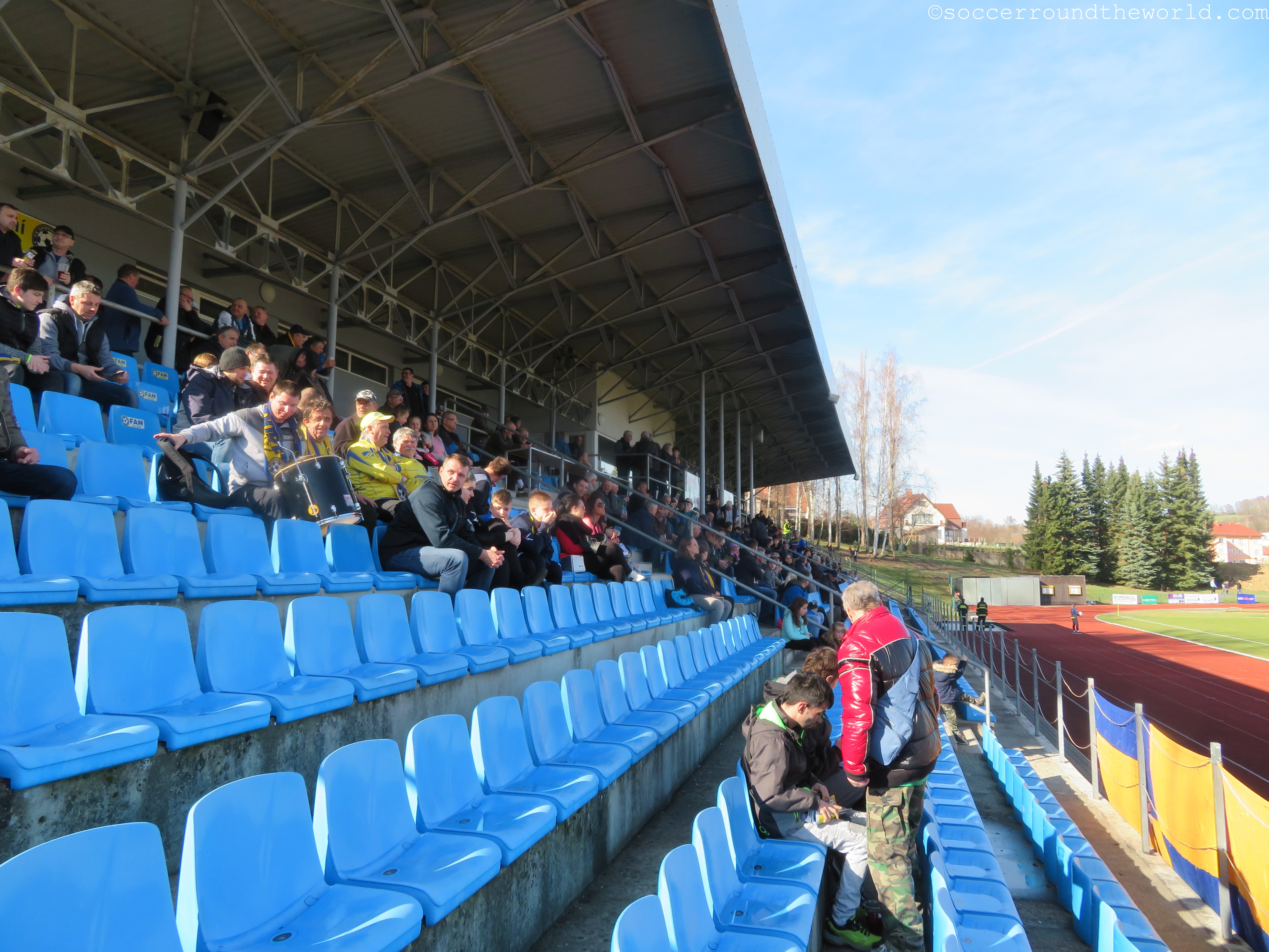 FK Varnsdorf – bis vor ein paar Jahren noch als Slovan angetreten – hatte sich 2015 sportlich sogar mal für die erste Liga qualifiziert. Aufgrund der schlechten Infrastruktur wurde allerdings die Lizenz verweigert. Daher kickt man weiterhin in der Zweitklassigkeit und hofft darauf, das Stadion doch noch mal für höhere Anforderungen anpassen zu können.