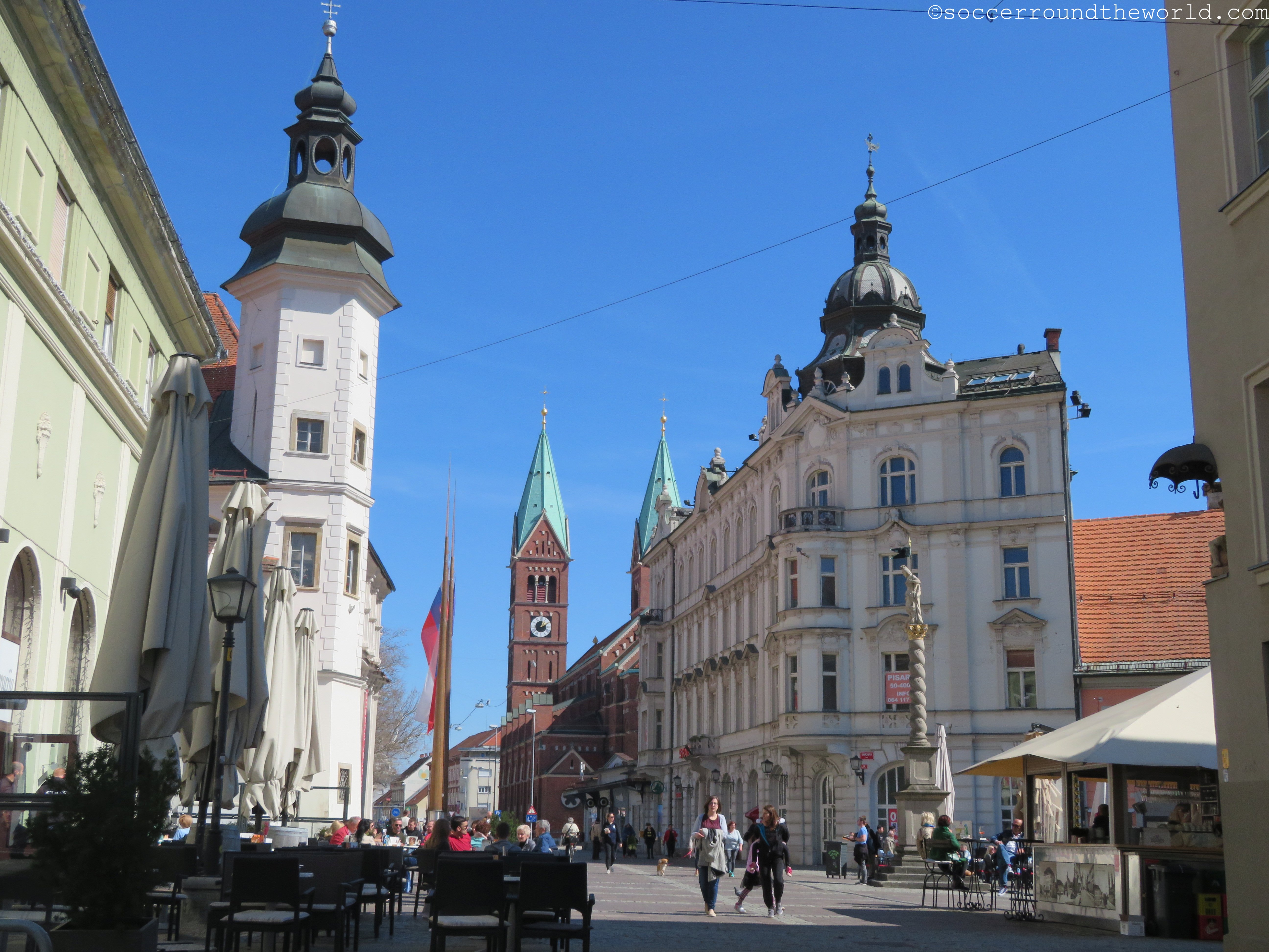 Das herrliche Frühlingswetter trägt freilich einiges zur Hochstimmung bei, aber auch ohne dieses wäre die Stadt immer noch einen Besuch wert. Das kleine, feine Stadtzentrum lädt zum Bummeln ein, die vielen Straßencafés zum Verweilen. Und das Allerbeste: Das Stadion ist gemütlich zu Fuß in wenigen Minuten erreichbar!