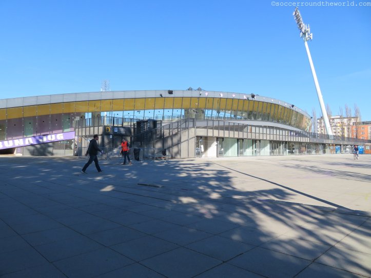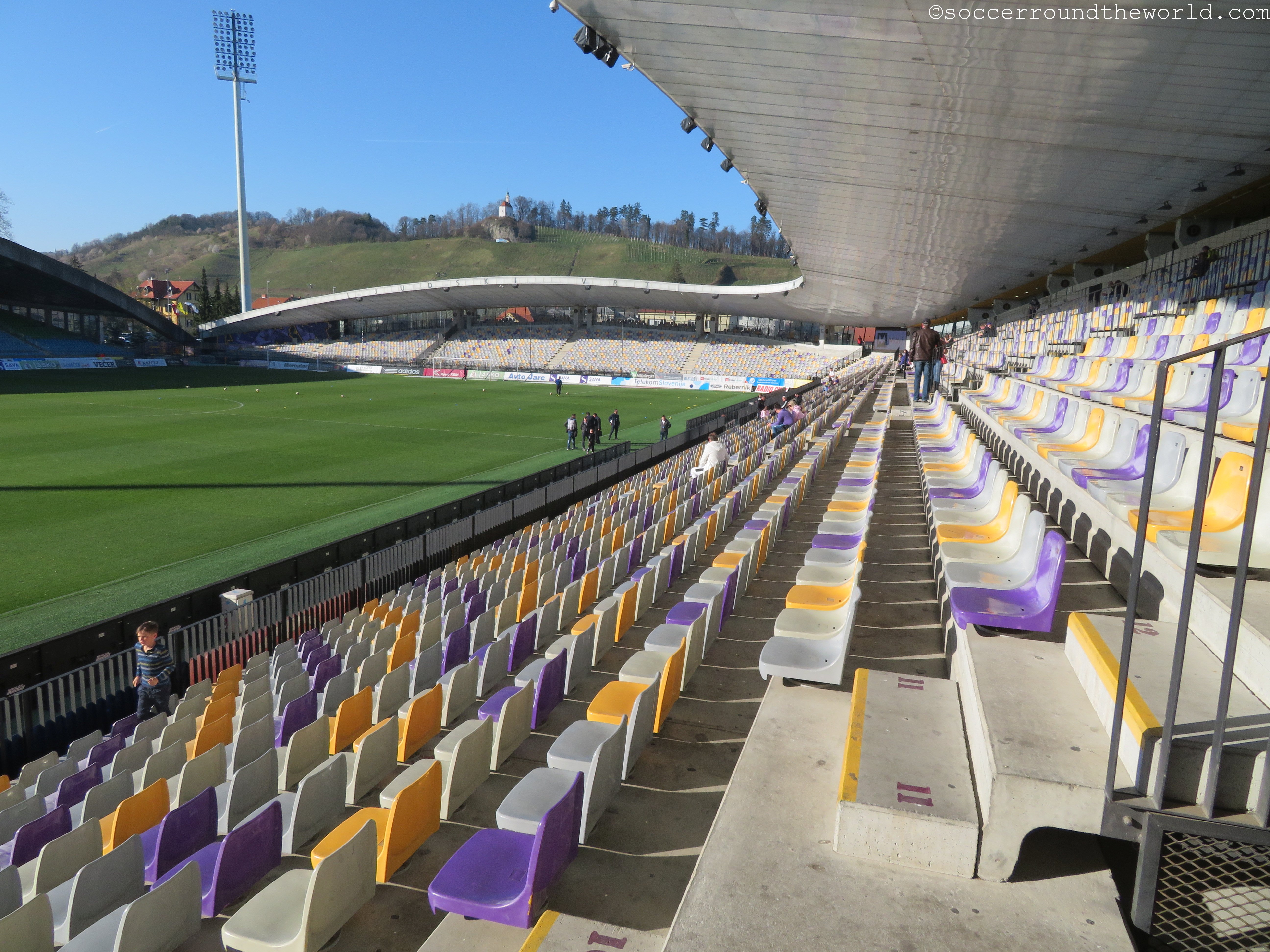 Die Heimstätte des violetten NK (die auf Deutsch „Volksgarten-Stadion“ heißt) ist mindestens so sympathisch, wie der Hinweis „Don’t wear anything green“ beim Kartenkauf: Die alte Haupttribüne wurde an den anderen drei Seiten mit einem ebenso geschwungenen Neubau ergänzt, der es zu einem sehr kompakt wirkenden Kleinstadion macht.