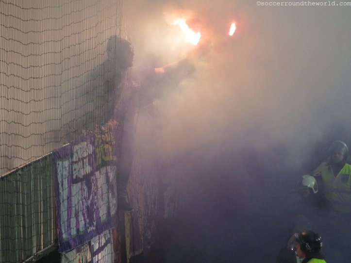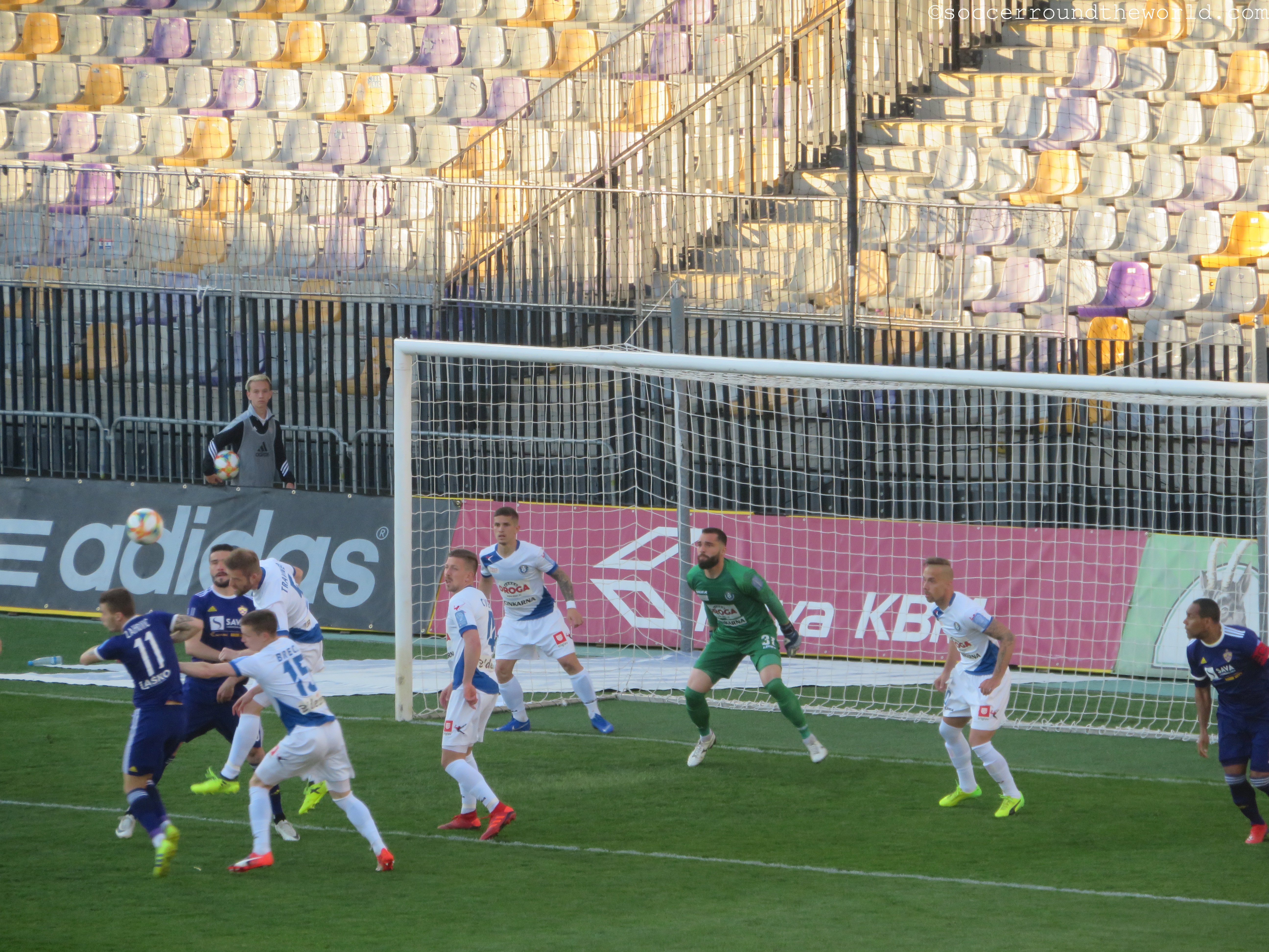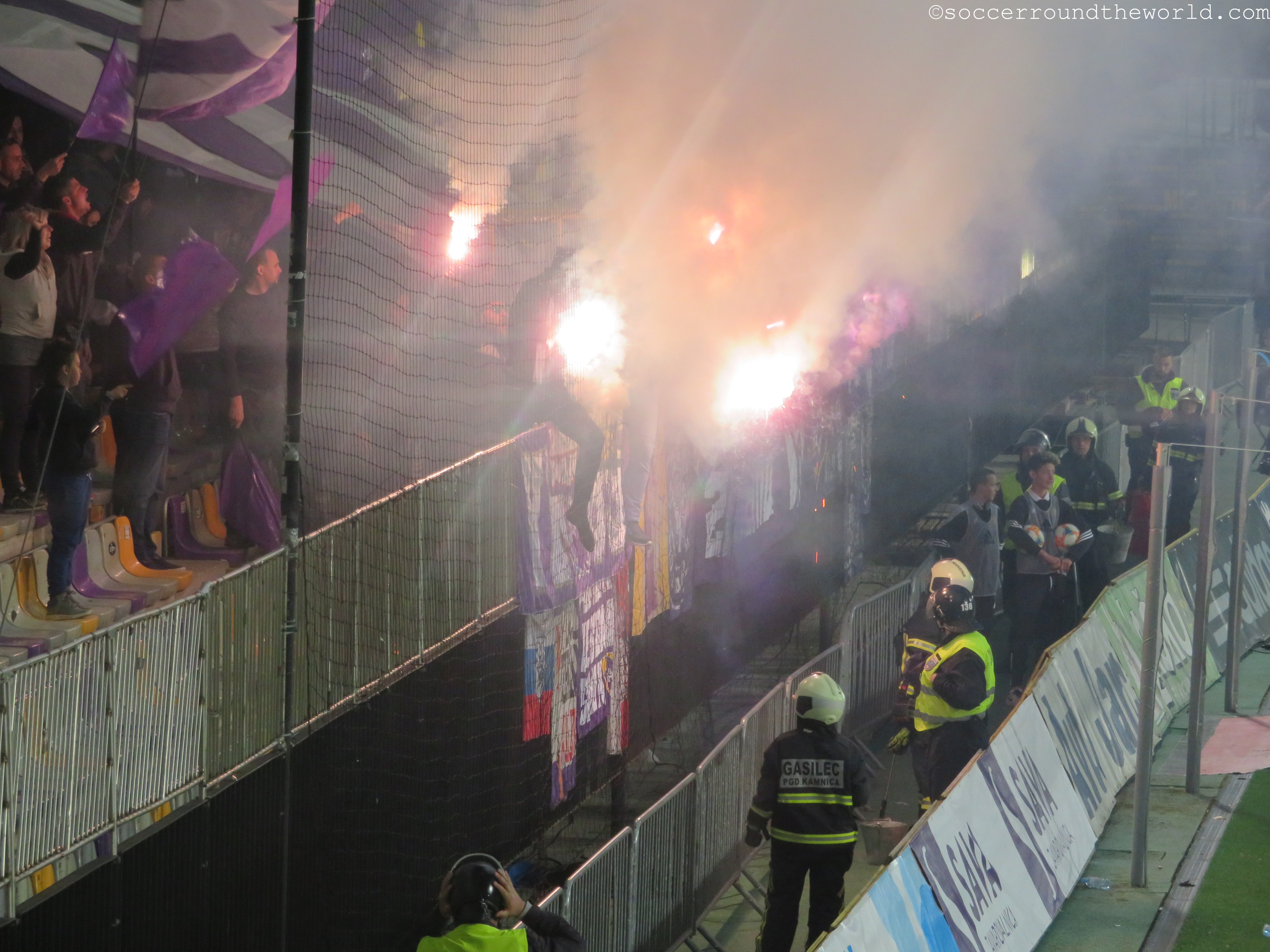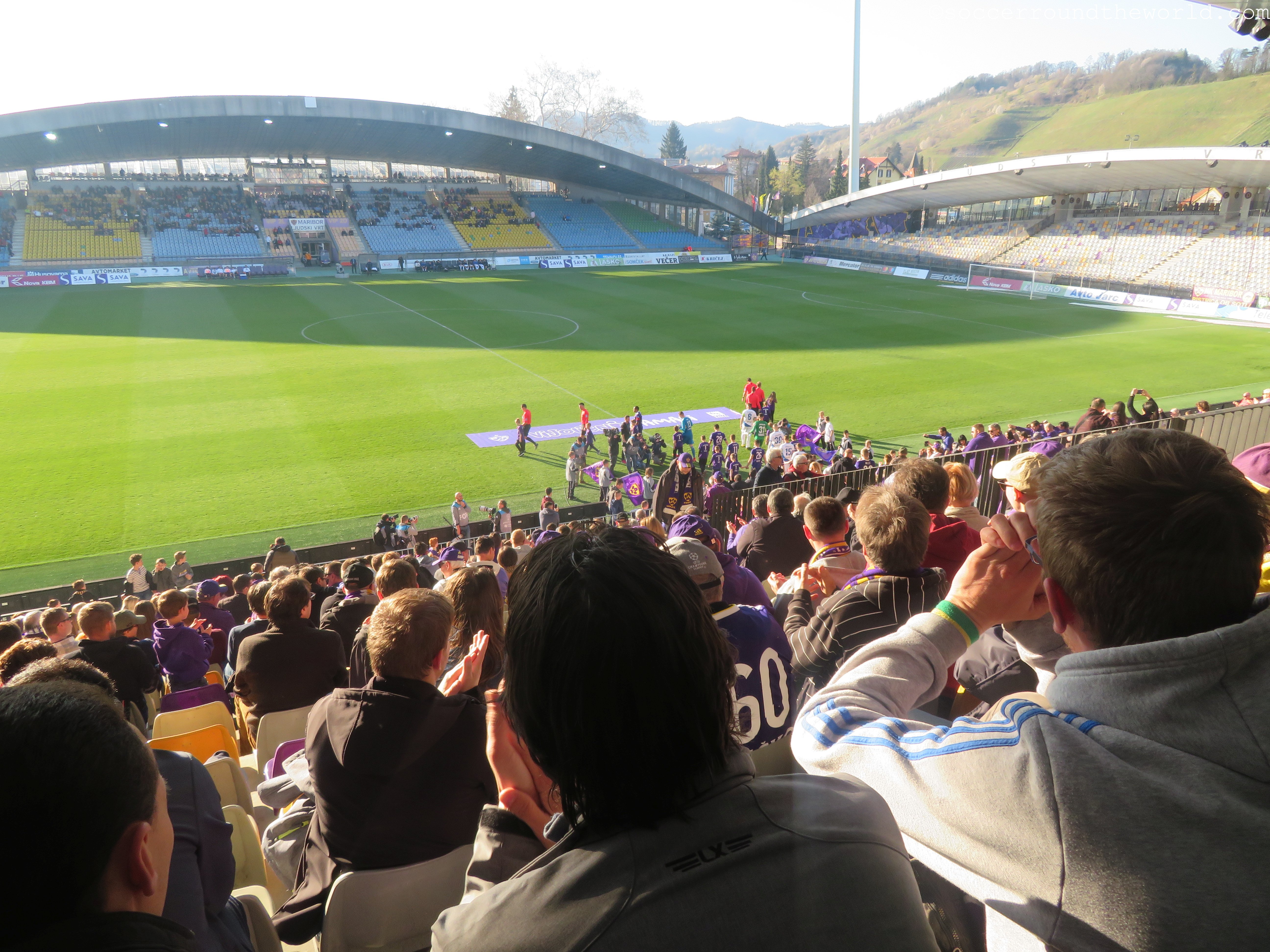 Auf dem Spielfeld wird über weite Strecken ein typisches 0:0 vorgetragen, bei dem die Violetten zwar dominieren, aber wenige hochkarätige Chancen herausarbeiten. Erst ein erfolgreich abgeschlossener Blitzangriff zu Beginn der zweiten Hälfte lässt die Heimfans (Gäste sind gar keine anwesend) hoffen. Doch kurz vor Ende gelingt Celje doch noch der Ausgleich. Über 90 Minuten gesehen wohl nicht ganz unverdient.