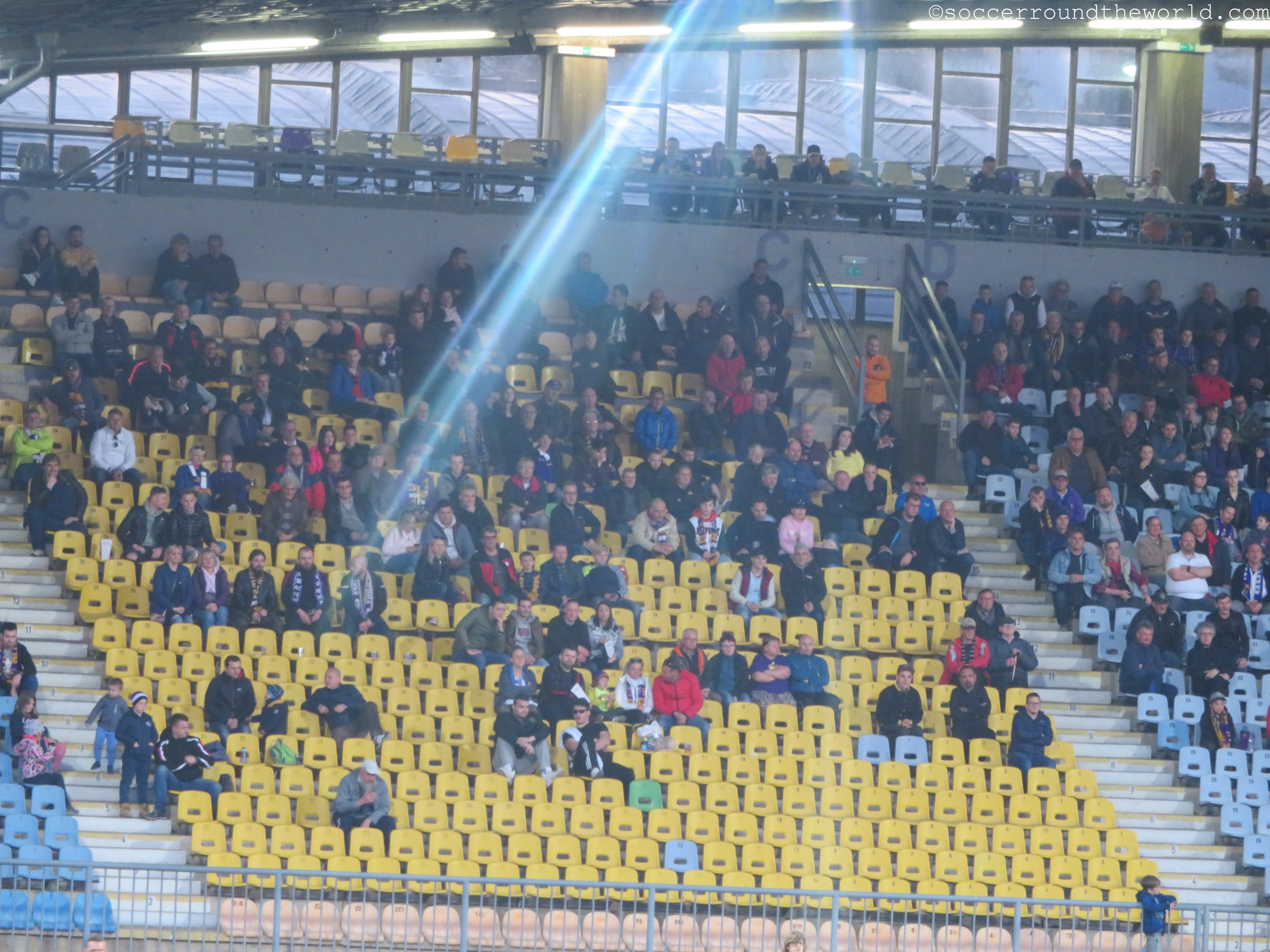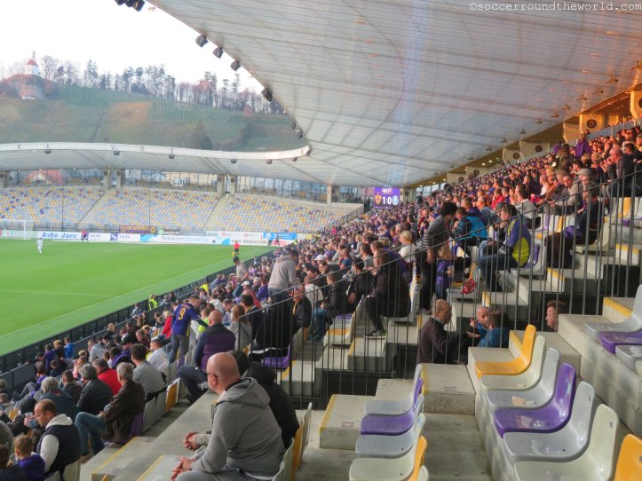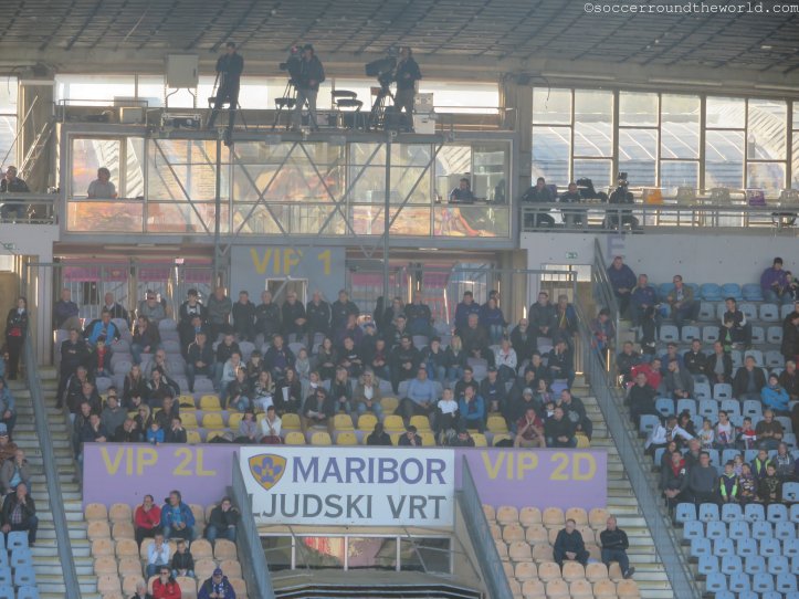 Heute ist es aber nur zu rund einem Drittel gefüllt, vor allem die Fankurve ist erschreckend dünn besiedelt. Die Stimmung ist dennoch über 90 Minuten durchaus gut. Vor allem auch, weil die Zuschauer auf den Geraden durchaus bereitwillig in Lieder einstimmen oder sogar selber welche starten. Besonders kraftvoll kommen die Wechselgesänge „Maribor – Meister!“, die immer wieder angestimmt werden.