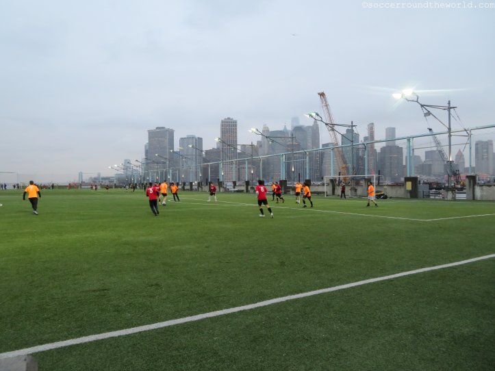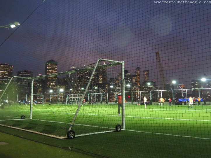 Die erste Begegnung mit soccer findet auf einem der zur Freizeitanlage umgestalteten alten Piers von Brooklyn statt. Neben Fußball finden hier auch noch zahlreiche andere Sportarten Platz und ermöglichen so Betätigung vor der beeindruckenden Skyline Manhattans. Heute werden mehrere Spiele der „Metro Soccer League“, New Yorks größtem Amateurbewerb im Fußball, ausgetragen. Allerdings wird nur 9 gegen 9 und über lediglich 45 Minuten gespielt.