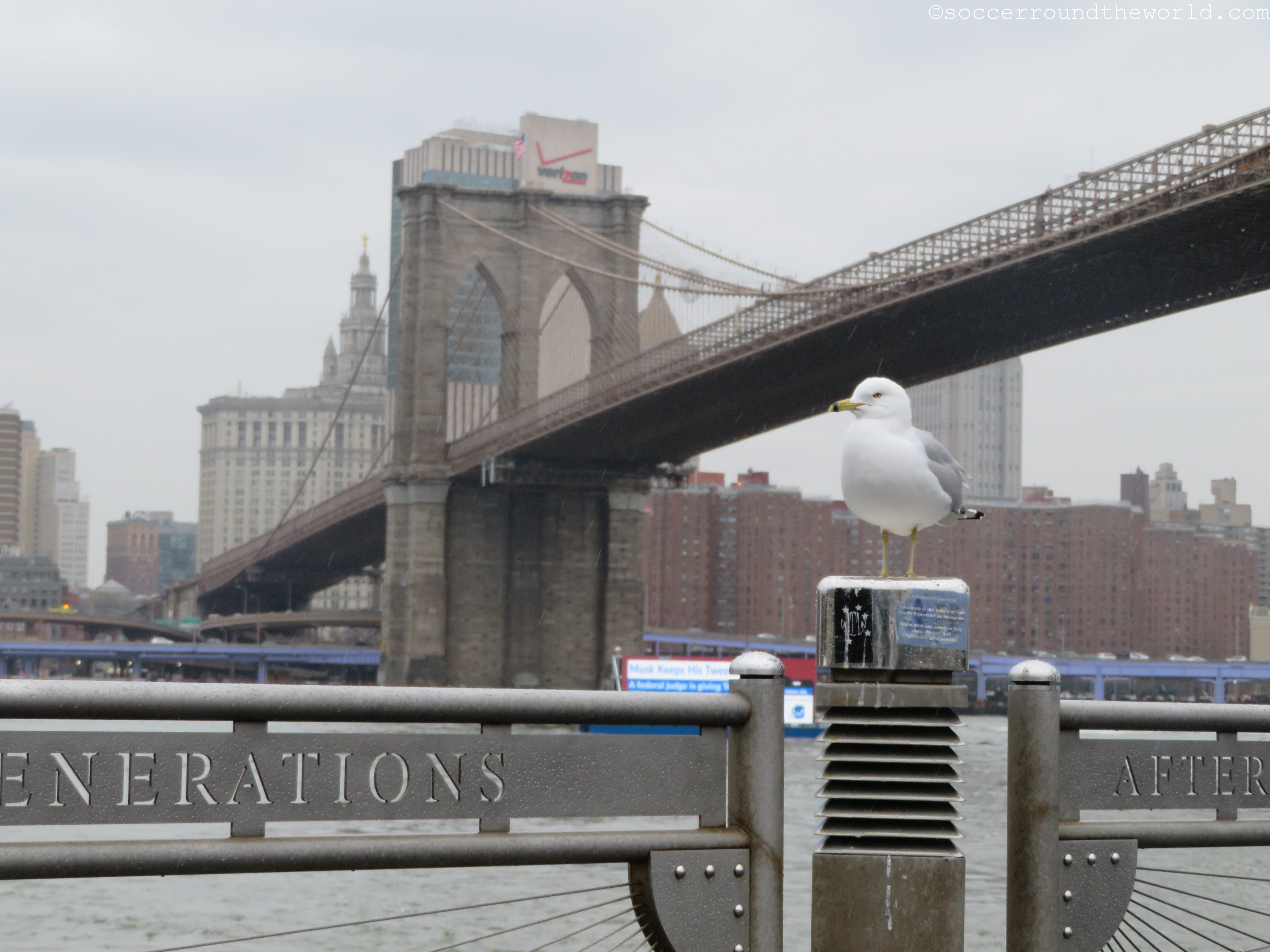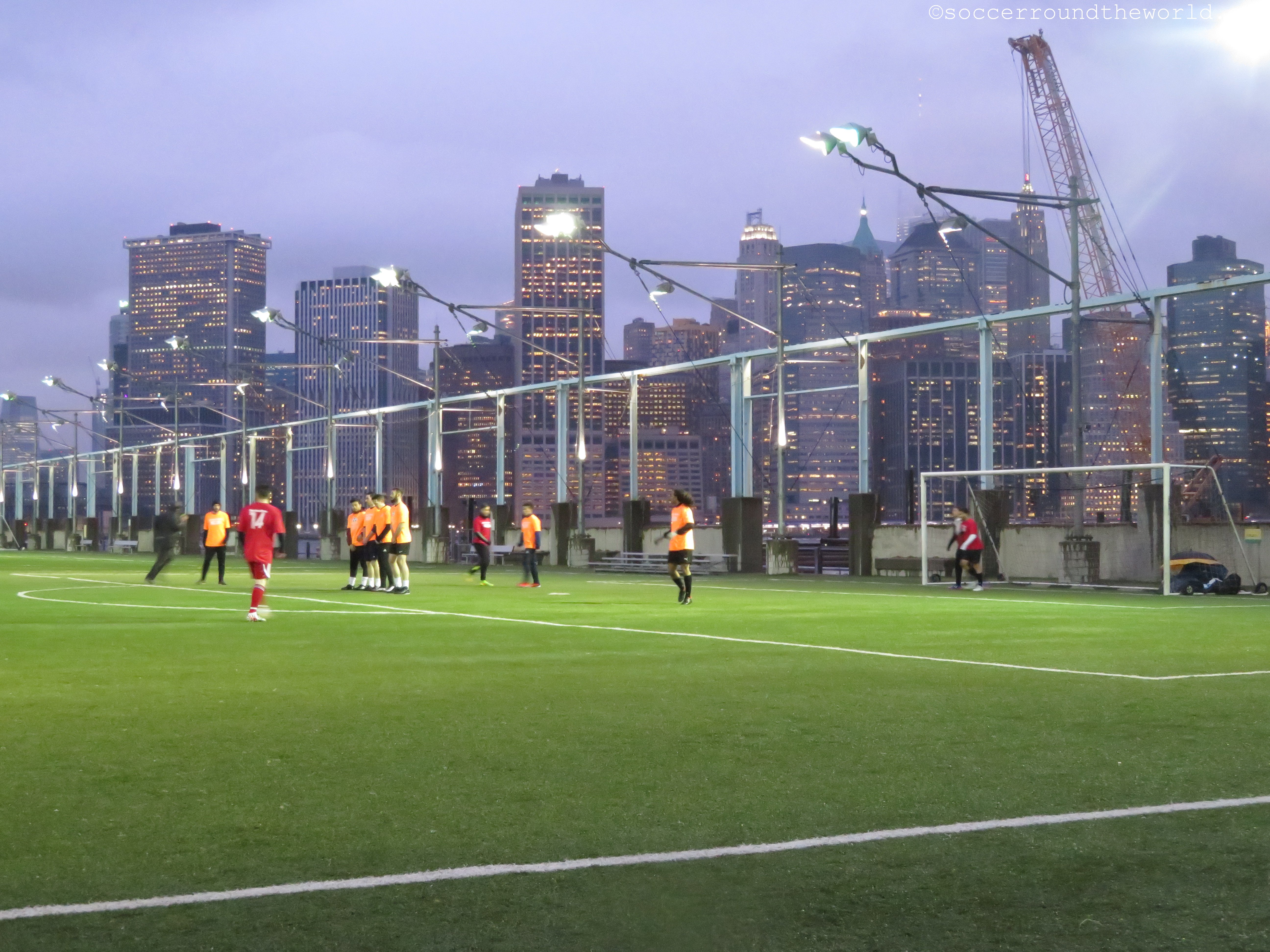 Die erste Begegnung mit soccer findet auf einem der zur Freizeitanlage umgestalteten alten Piers von Brooklyn statt. Neben Fußball finden hier auch noch zahlreiche andere Sportarten Platz und ermöglichen so Betätigung vor der beeindruckenden Skyline Manhattans. Heute werden mehrere Spiele der „Metro Soccer League“, New Yorks größtem Amateurbewerb im Fußball, ausgetragen. Allerdings wird nur 9 gegen 9 und über lediglich 45 Minuten gespielt.