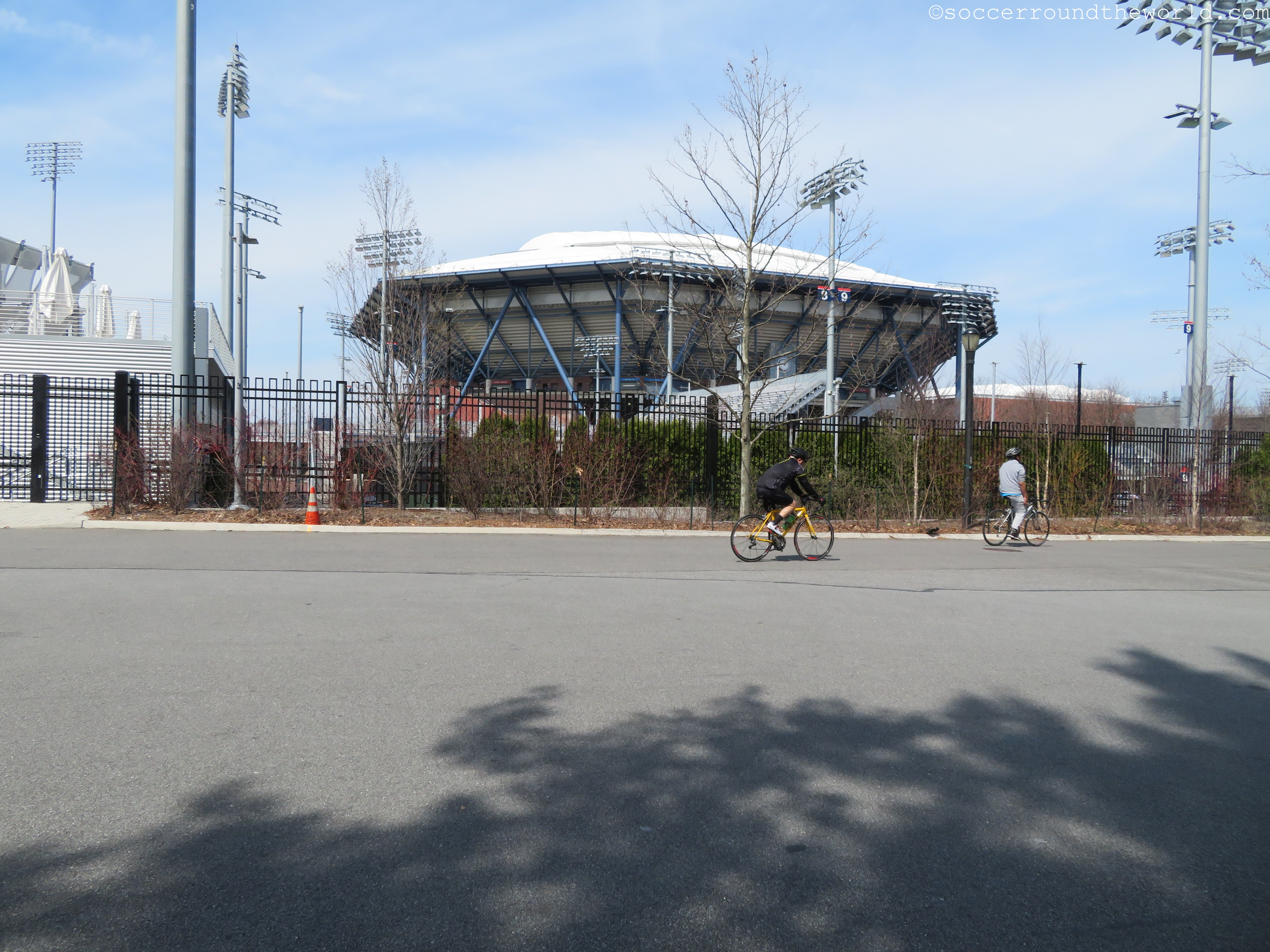 Im Stadtteil befindet sich auch der Corona Park von Flushing Meadows, der für die Weltausstellung 1939/40 angelegt wurde. An dessem Eingang steht mit dem Citi Field der Mets das zweite große Baseball-Stadion von New York. Dass an diesem Tag ein Spiel hier stattfindet, wusste ich nicht, nehme aber gerne die Atmosphäre eines solchen Events auf, bevor ich weiter in die Grünanlage vordringe und dabei auch am Tennisstadion der US Open vorbeikomme.