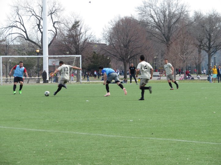 Überall im Park finden Fußballspiele statt – auch hier ist überwiegend Spanisch die verwendete Sprache. Bei einem Match bleibe ich dann über die gesamte Spielzeit hängen. Es handelt sich dabei um eine Partie einer Studenten-Liga, die zu Ehren eines ecuadorianischen Einwanderers veranstaltet wird, der den Hispanic-Fußball besonders gefördert hat und im letzten Jahr verstorben ist.