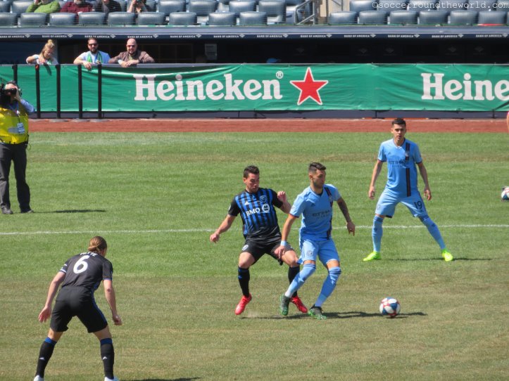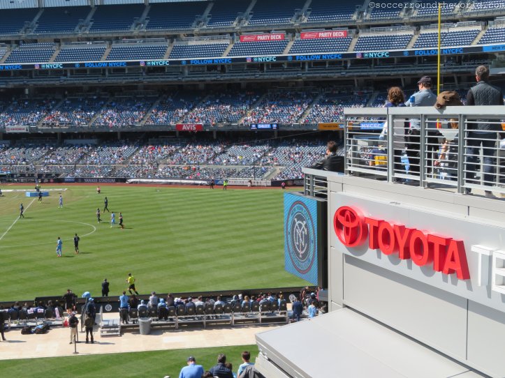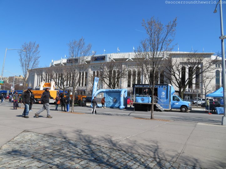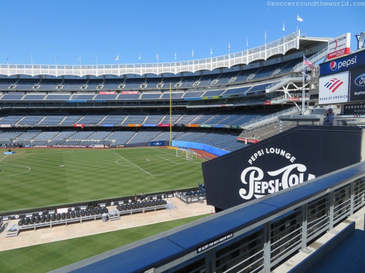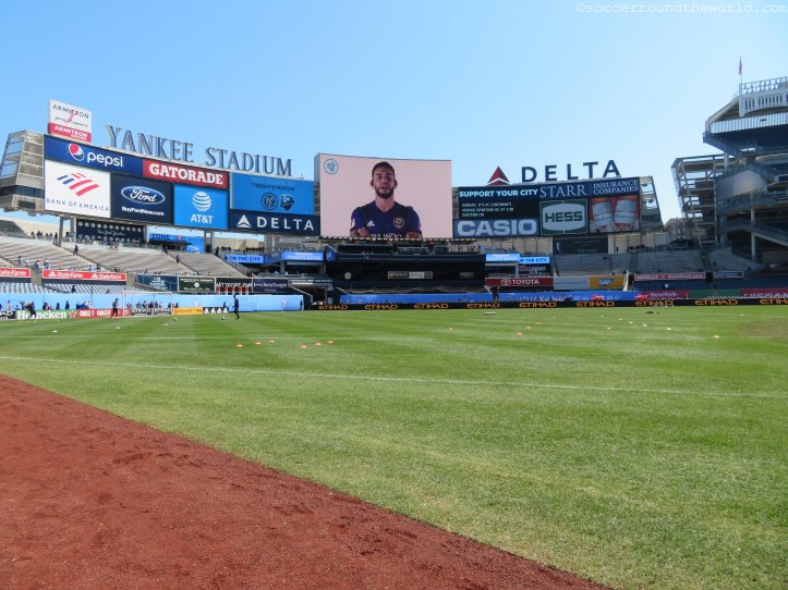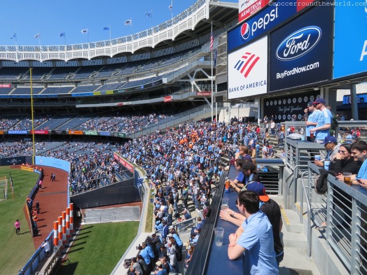 Zuerst aber zum Positiven: Das Yankee-Stadion steht am Übergang von Manhattan zur Bronx und ist im Auftritt durchaus imposant. Die Außenfassade ist römischen Prunkbauten nachempfunden und deckt die gesamte Tribünenhöhe ab, knapp 55.000 Zuschauer fänden hier Platz. Für dieses Spiel werden die zwei obersten Ränge aber erst gar nicht aufgemacht, sieht man sich die schüttere Besucherzahl an, so ist dies auch bei Weitem nicht notwendig.