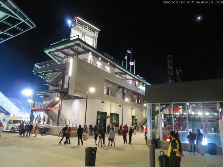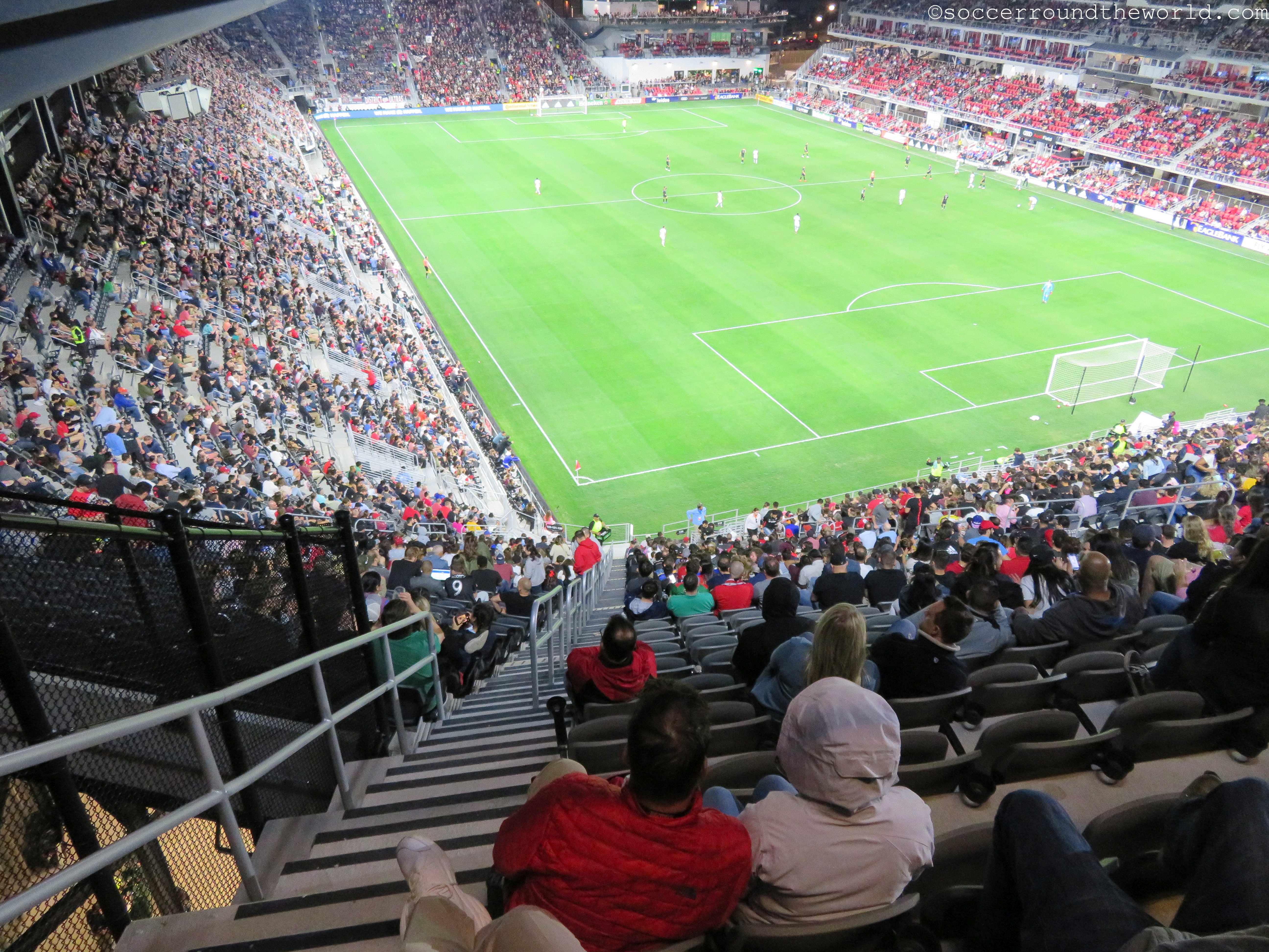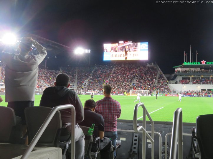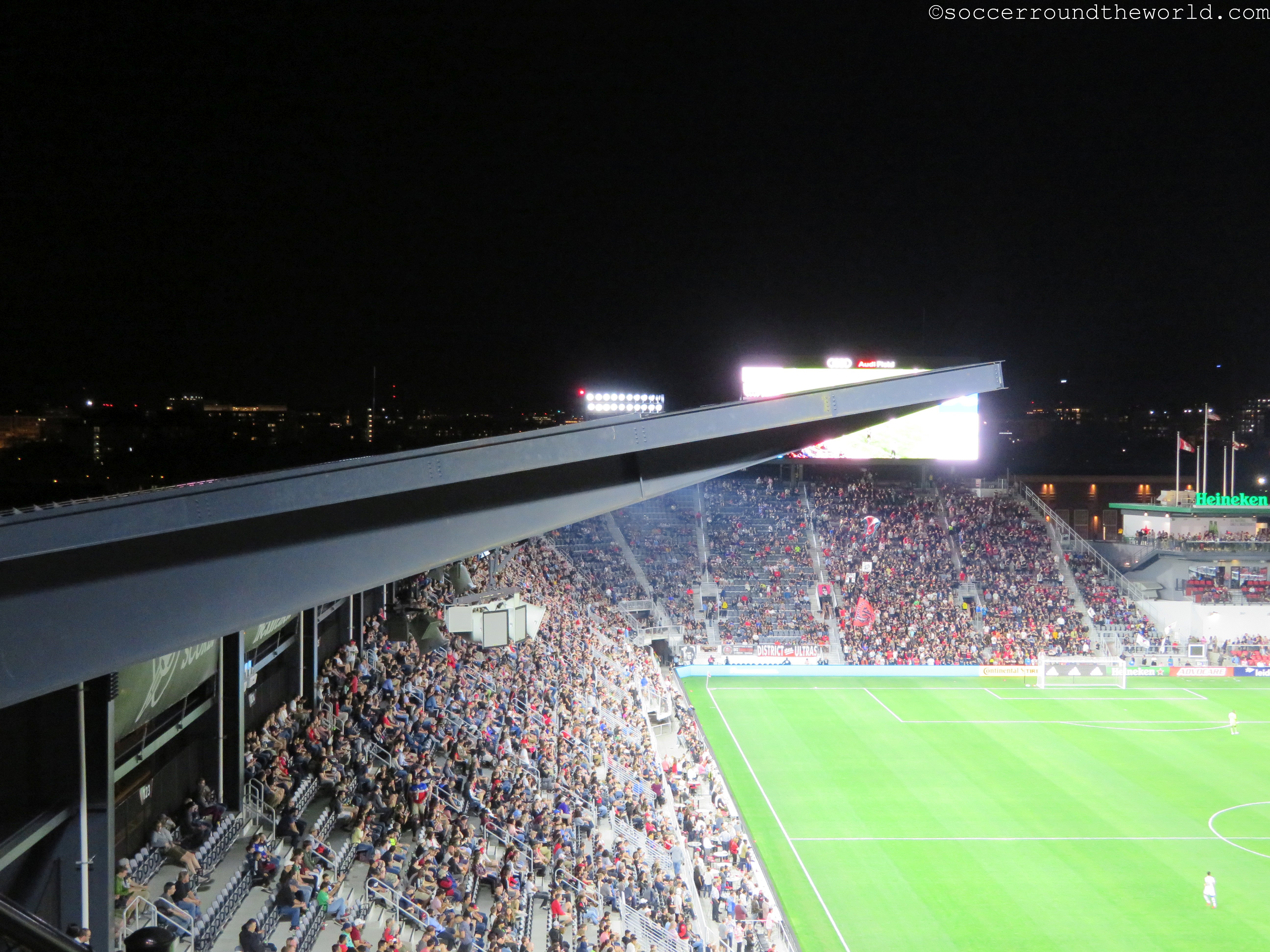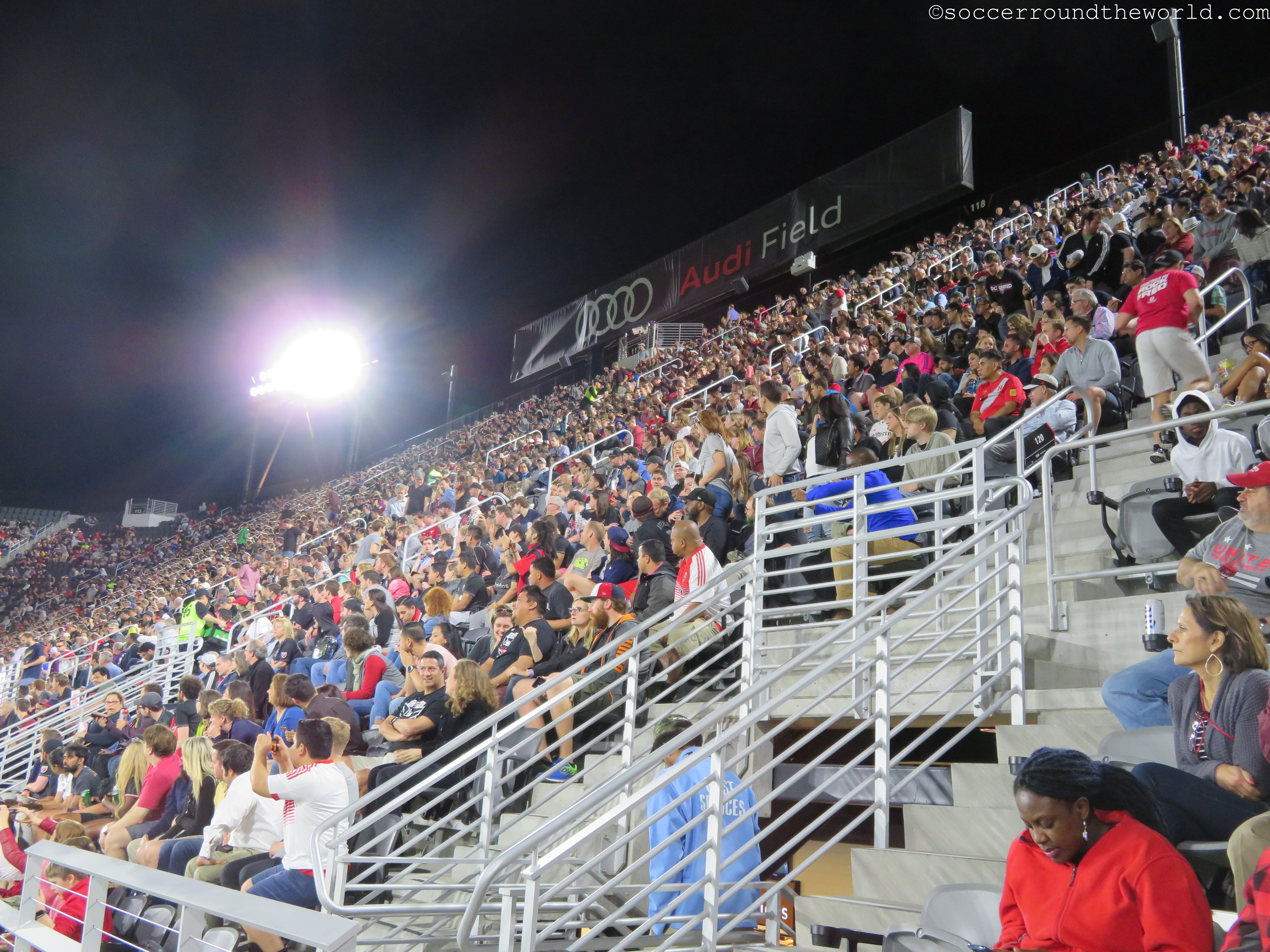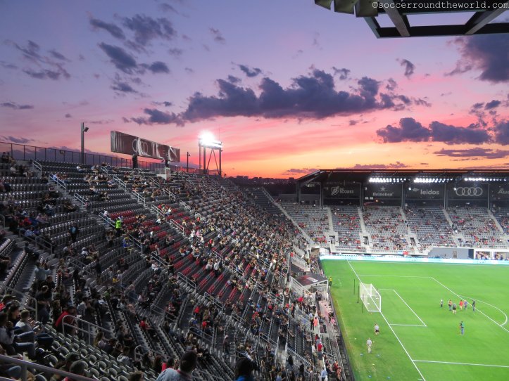 Das Stadion von United, immerhin zweiterfolgreichster Klub der MLS, gibt es erst seit der letzten Saison. Es befindet sich etwas außerhalb des Zentrums, direkt am Potomac und in unmittelbarer Nähe des Baseballstadions der Washington Nationals. Keine der vier Tribünen ist gleich, die Ecken sind nicht geschlossen. Hinter den Toren sind die Ränge sehr steil und mit Verlauf des Abends oben auch durchaus sehr windig. Nur die Geraden sind überdacht, wodurch es schwer ist, kompakte Stimmung zu erzeugen.