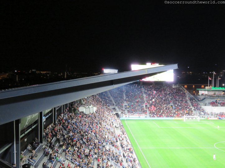 In der Heimkurve singen die „Barra brava“, „Screaming Eagles“ und „La Norte“ die gesamten 90 Minuten durch. Oft beteiligen sich auch die anderen Tribünen zumindest an Klatscheinlagen. Mitgesungen wird aber nur bei den spanischsprachigen Chants. Insgesamt ist es bisher durchaus die beste erlebte Atmosphäre bei einem Fußballspiel in den USA. Ein Torjubel hier könnte schon durchaus eine imposante Lautstärke entwickeln.
