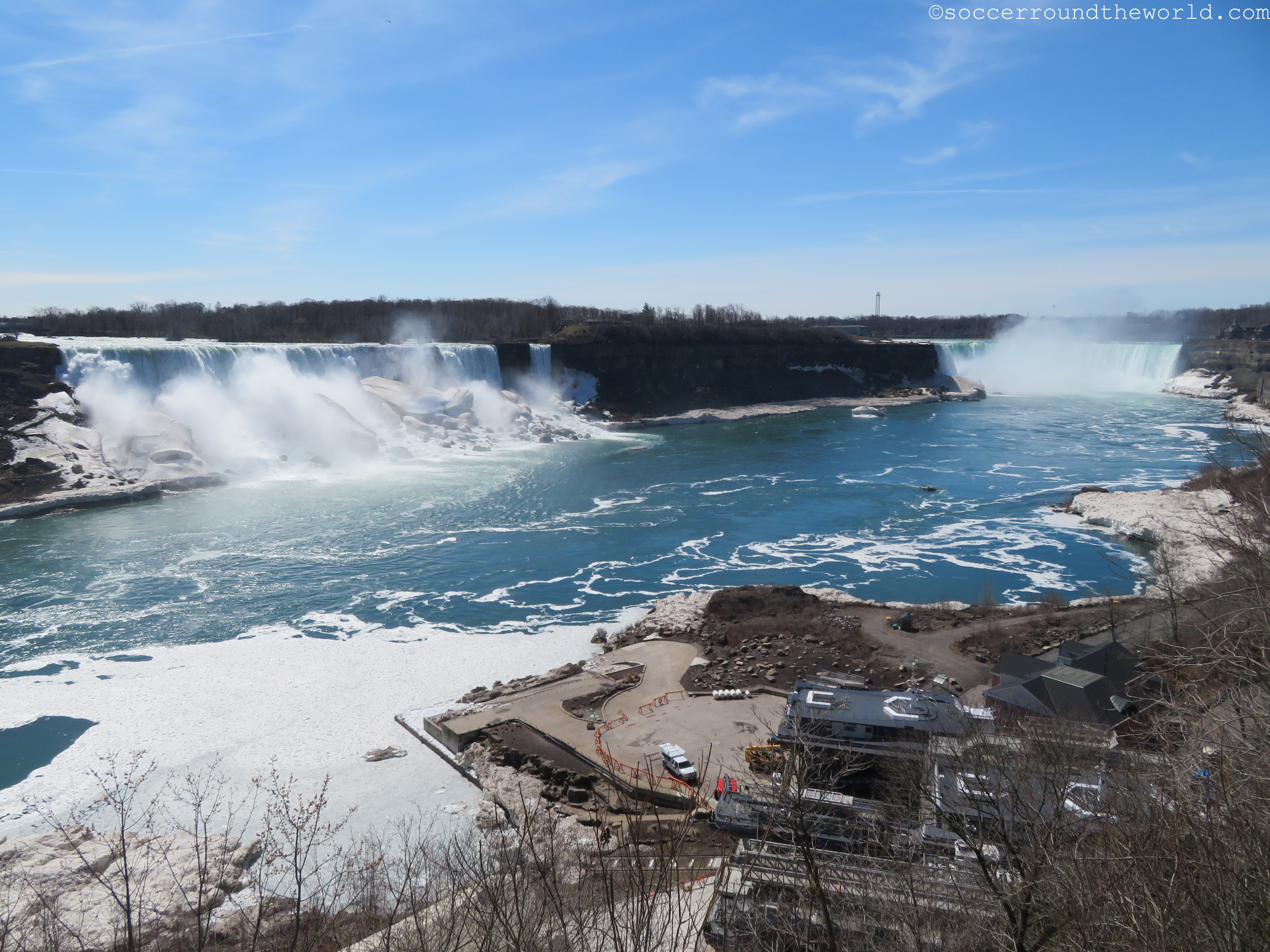 Einer der Gründe hier vorbeizukommen, sind aber ohnehin vor allem die knapp zwei Stunden entfernten Niagarafälle an der Grenze zu den USA. Bei deren Besuch erwischte ich auch den einzigen Sonnentag des gesamten Aufenthalts im Land der Ahornblätter. Zwar ist der Ort an diesem Naturwunder insgesamt auch extrem (mit Casinos und Vergnügungsviertel) verschandelt, die Wasserfälle selbst sind jedoch in jedem Fall einen Besuch wert.
