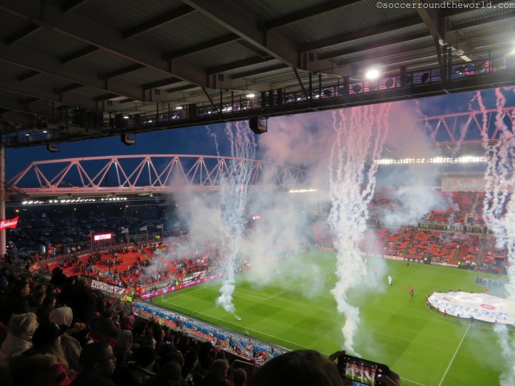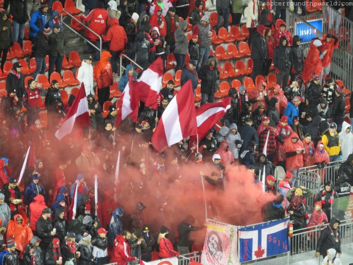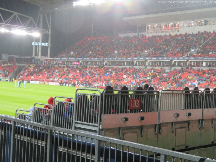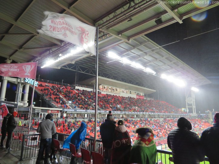 Falls ihr auf einem der Fotos übrigens auch die Flagge mit „Canadian Champion“ entdeckt: Die Landesmeisterschaft wird einzeln ausgespielt, wobei auch unterklassige Mannschaften daran teilnehmen. Allerdings steigen die MLS-Mannschaften erst im Halbfinale ein, in dem sie damit auch drei der vier Plätze fix stellen. In den letzten drei Jahren konnte sich Toronto den Titel sichern.