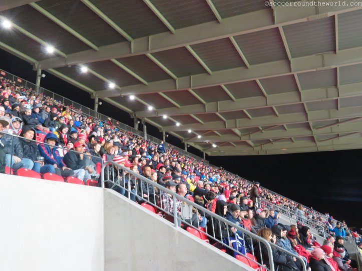 Stimmung wird hier ausschließlich englischsprachig von mehreren separaten Gruppen direkt hinter dem Tor erzeugt, an sich auch gar nicht so schlecht. Vor allem bei den „TFC“-Gesängen geht immer wieder das gesamte Stadion mit, so wie auch bei Torsituationen. Sehr einfallsreich sind die dargebrachten Gesänge allerdings nicht.