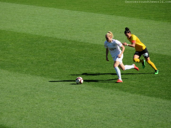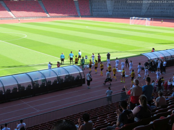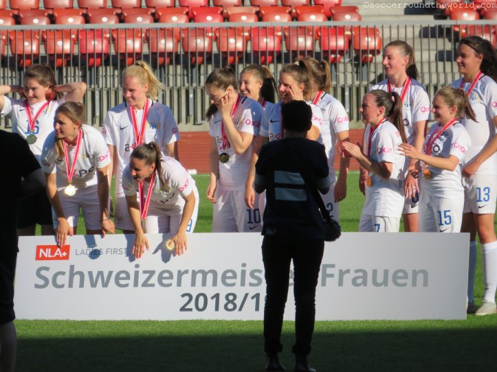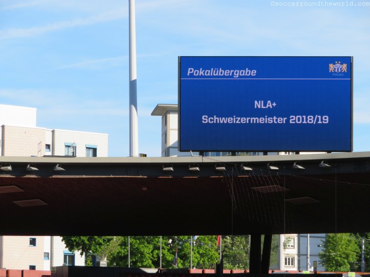 Erst wenige Tage vor der Ankunft wurde das finale Meisterschaftsspiel zu Ehren der bereits als Meister feststehenden FC Zürich Frauen von der eigentlichen Heimstätte Heerenschürli ins bei Weitem größere Stadion am Letzigrund, wo auch die Herren ihre Matches austragen, verlegt. Auch wenn ich dieses gerne lieber bei höherem Zuschauerinteresse besucht hätte, ist es für das Team freilich eine große Ehre und zeigt ihnen gegenüber Anerkennung für eine überragende Saison (26 Siege bei nur einem Remis und einer Niederlage). Bei freiem Eintritt kommen zudem auch mehr Anhänger als normalerweise.