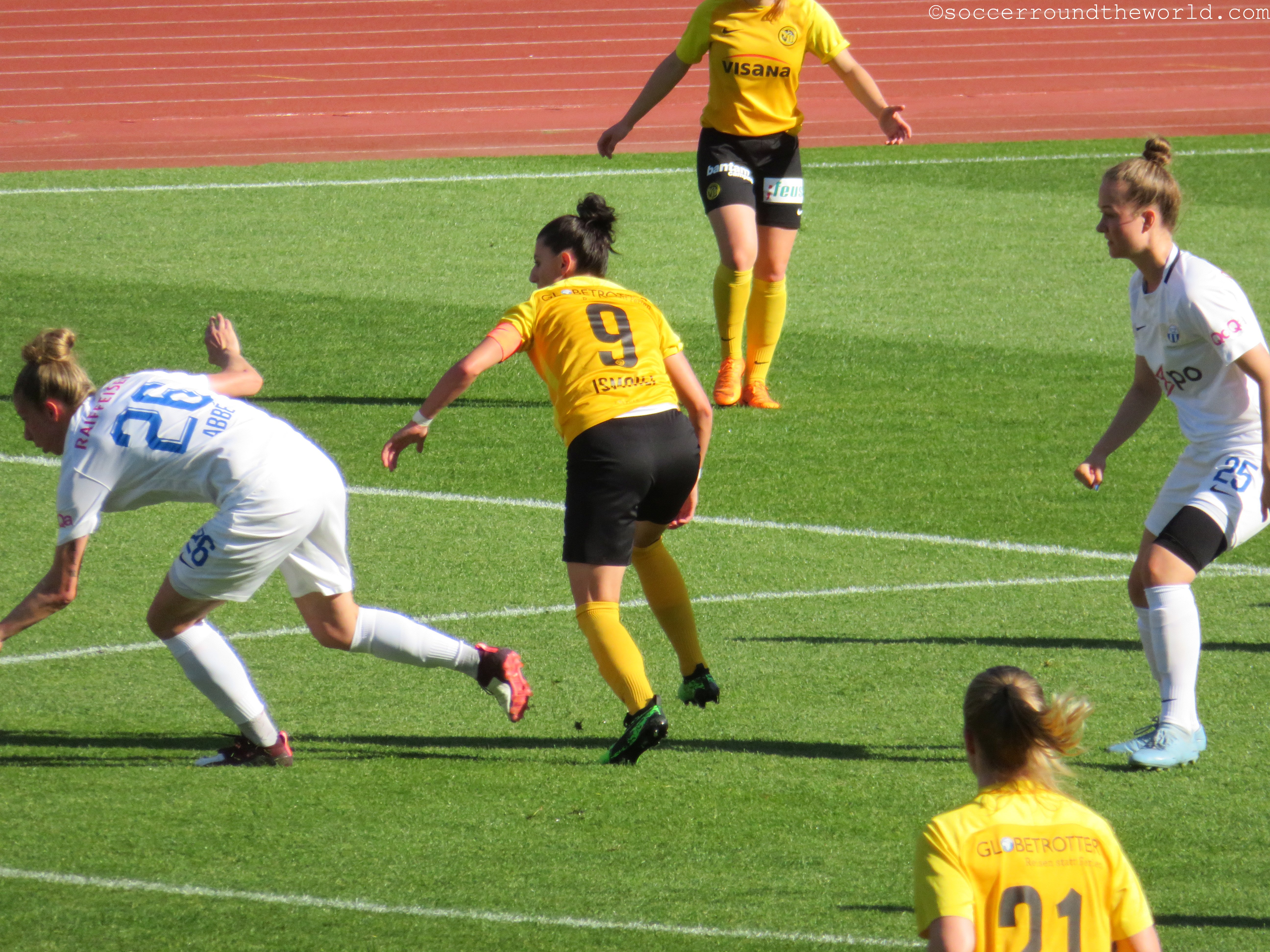Erst wenige Tage vor der Ankunft wurde das finale Meisterschaftsspiel zu Ehren der bereits als Meister feststehenden FC Zürich Frauen von der eigentlichen Heimstätte Heerenschürli ins bei Weitem größere Stadion am Letzigrund, wo auch die Herren ihre Matches austragen, verlegt. Auch wenn ich dieses gerne lieber bei höherem Zuschauerinteresse besucht hätte, ist es für das Team freilich eine große Ehre und zeigt ihnen gegenüber Anerkennung für eine überragende Saison (26 Siege bei nur einem Remis und einer Niederlage). Bei freiem Eintritt kommen zudem auch mehr Anhänger als normalerweise.