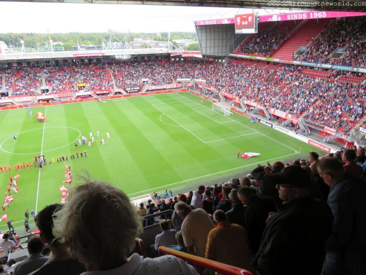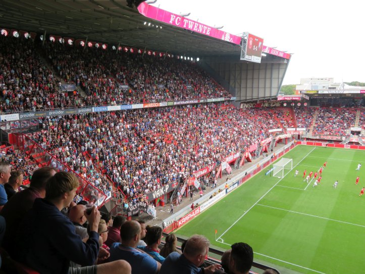 In der „Hölle von Enschede“ wird mittlerweile also wieder erstklassiger Fußball besungen, und das für die Ankickzeit von 12.15 Uhr auch wirklich beeindruckend laut. Das Match trägt nur wenig dazu bei, ist es doch trotz hohem Tempo eher zerfahren. Utrecht startet eigentlich besser, kann aber seine Chancen nicht verwerten. Dafür wird es dann auch per Tor durch einen sehenswerten Weitschuss bestraft. Der zwischenzeitliche Ausgleich lässt die zahlreichen mitgereisten Fans nur kurz hoffen. Dem dann verdienten 2:1 folgt in der Nachspielzeit sogar noch ein weiterer Treffer für Twente.