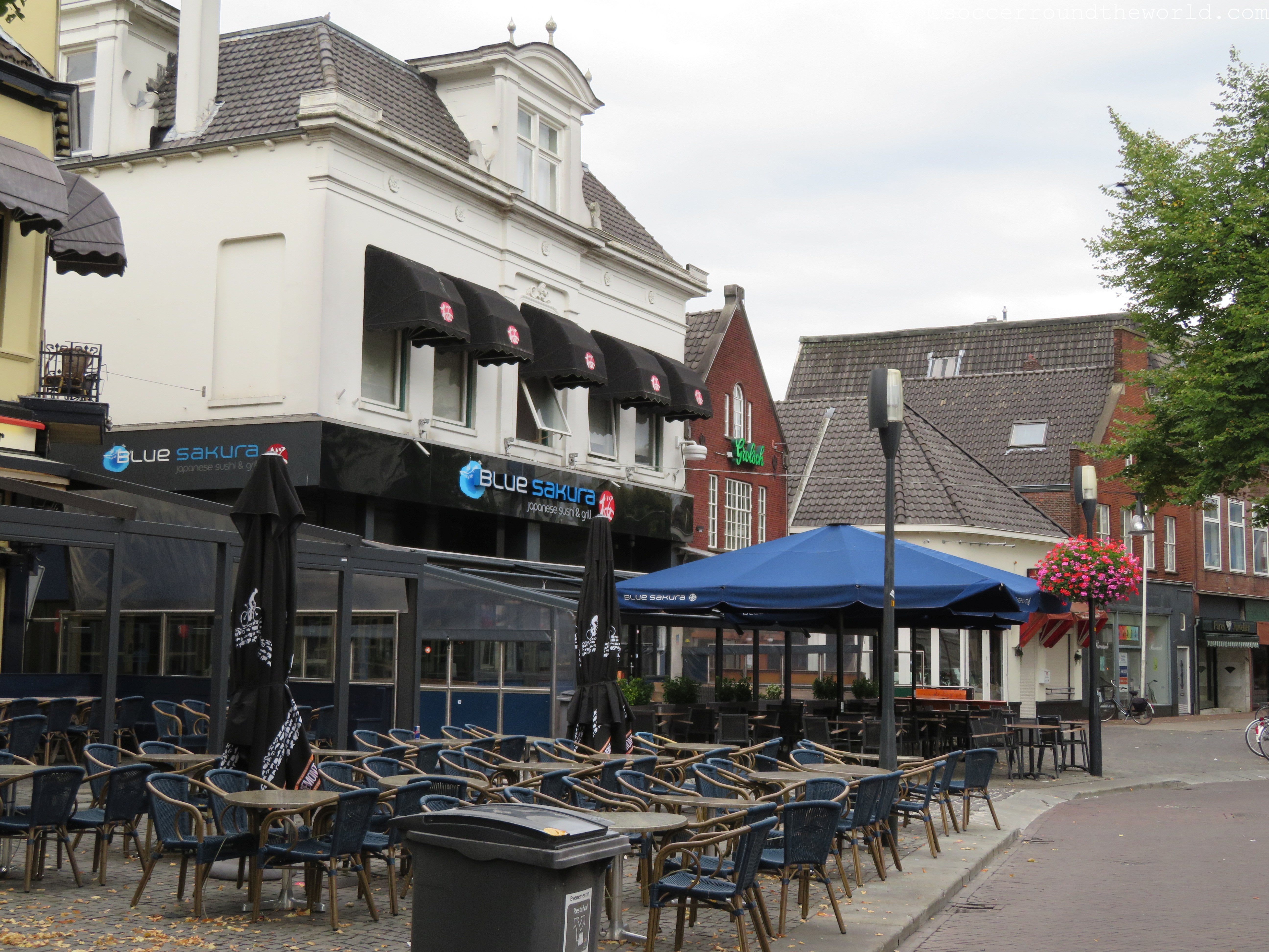 Enschede ist eine Grenzstadt zu Deutschland und eher beschwerlich per Bummelbahn über Dortmund zu erreichen. Rund um den alten Markt herrscht klassisch niederländisches Flair, am frühen Sonntagmorgen ist das Zentrum aber so gut wie ausgestorben. Kein Wunder, wurde doch offenbar die Nacht davor bei einem Straßenfest ganz ordentlich gefeiert.