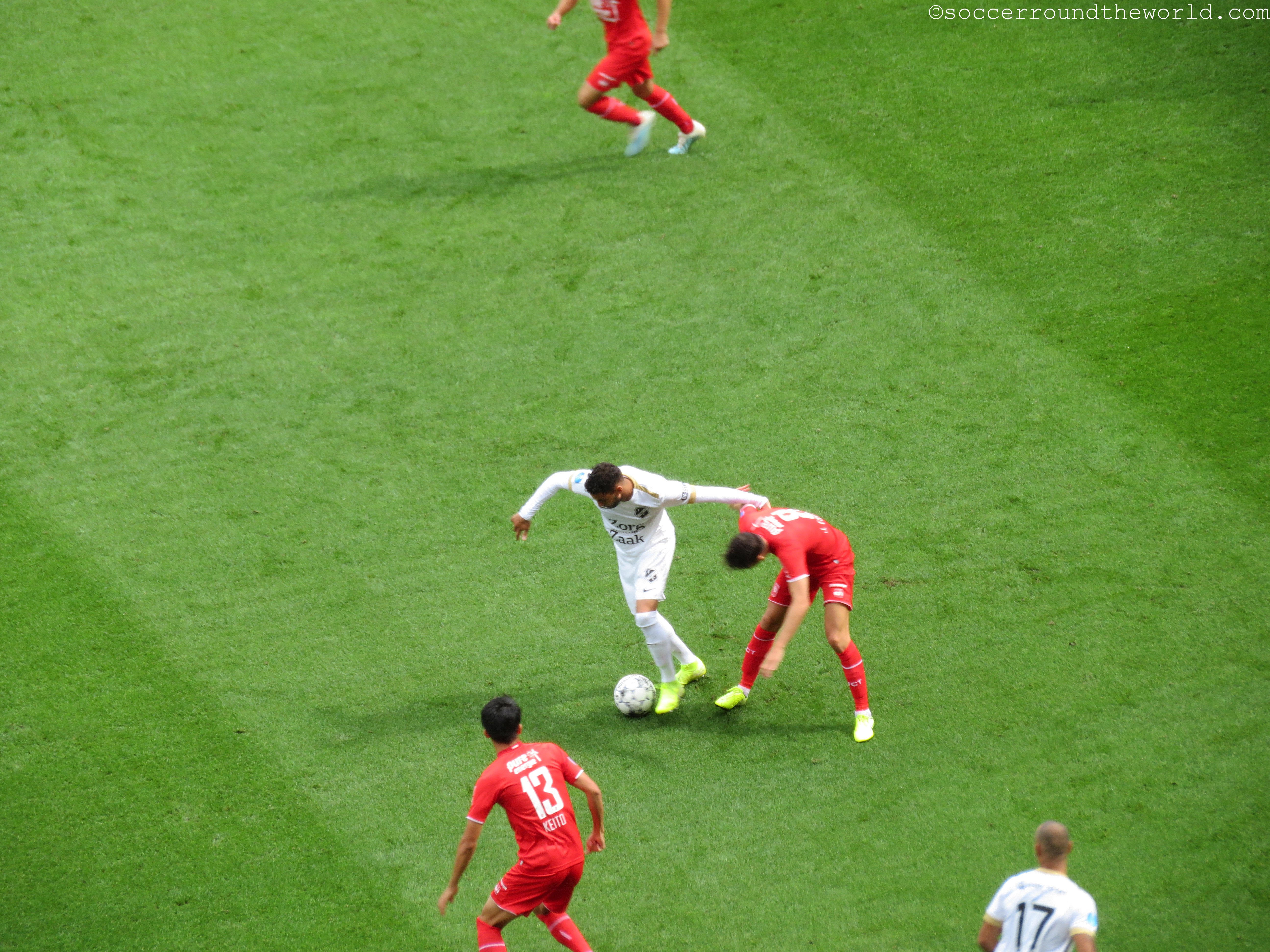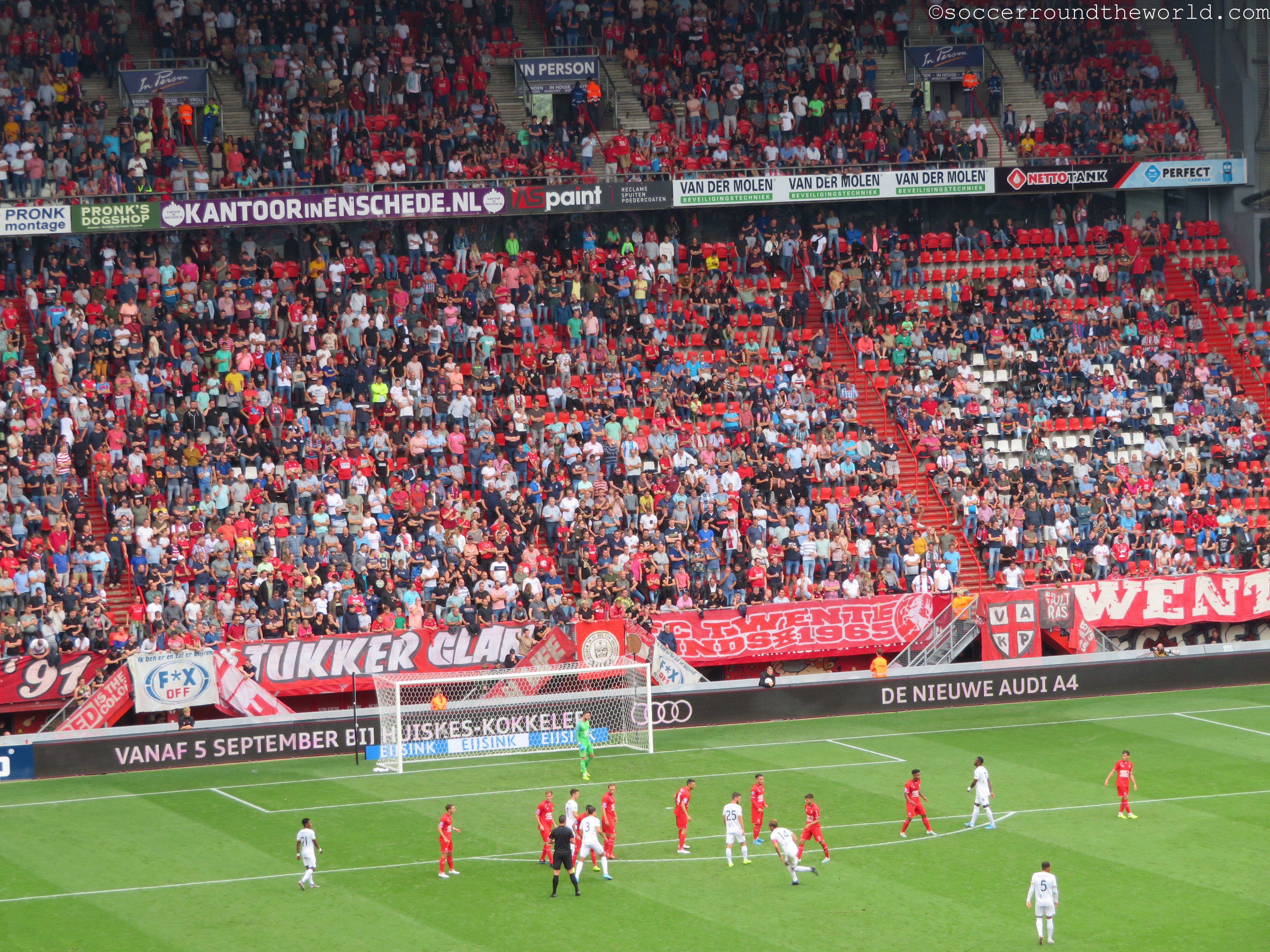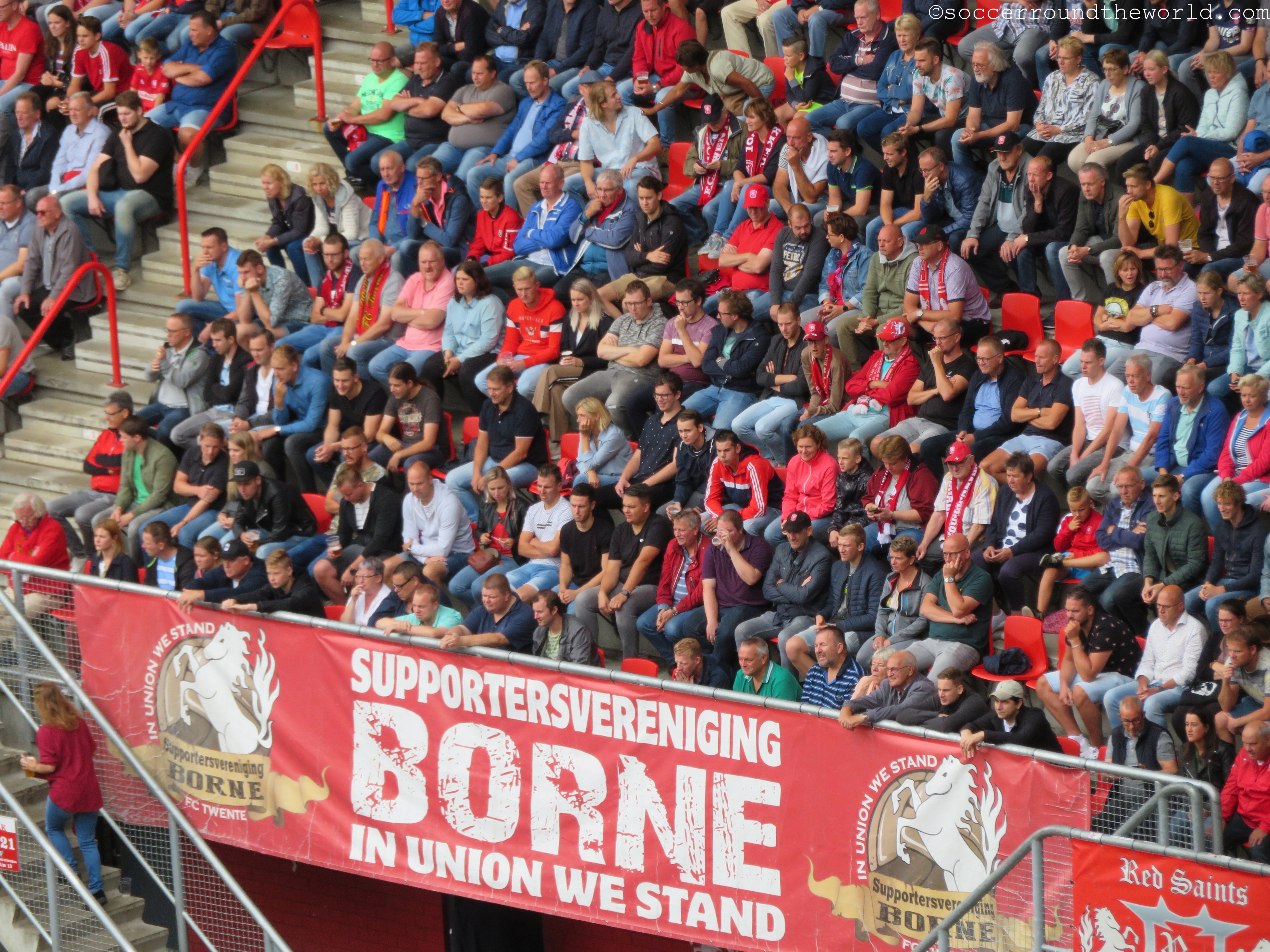 In der „Hölle von Enschede“ wird mittlerweile also wieder erstklassiger Fußball besungen, und das für die Ankickzeit von 12.15 Uhr auch wirklich beeindruckend laut. Das Match trägt nur wenig dazu bei, ist es doch trotz hohem Tempo eher zerfahren. Utrecht startet eigentlich besser, kann aber seine Chancen nicht verwerten. Dafür wird es dann auch per Tor durch einen sehenswerten Weitschuss bestraft. Der zwischenzeitliche Ausgleich lässt die zahlreichen mitgereisten Fans nur kurz hoffen. Dem dann verdienten 2:1 folgt in der Nachspielzeit sogar noch ein weiterer Treffer für Twente.