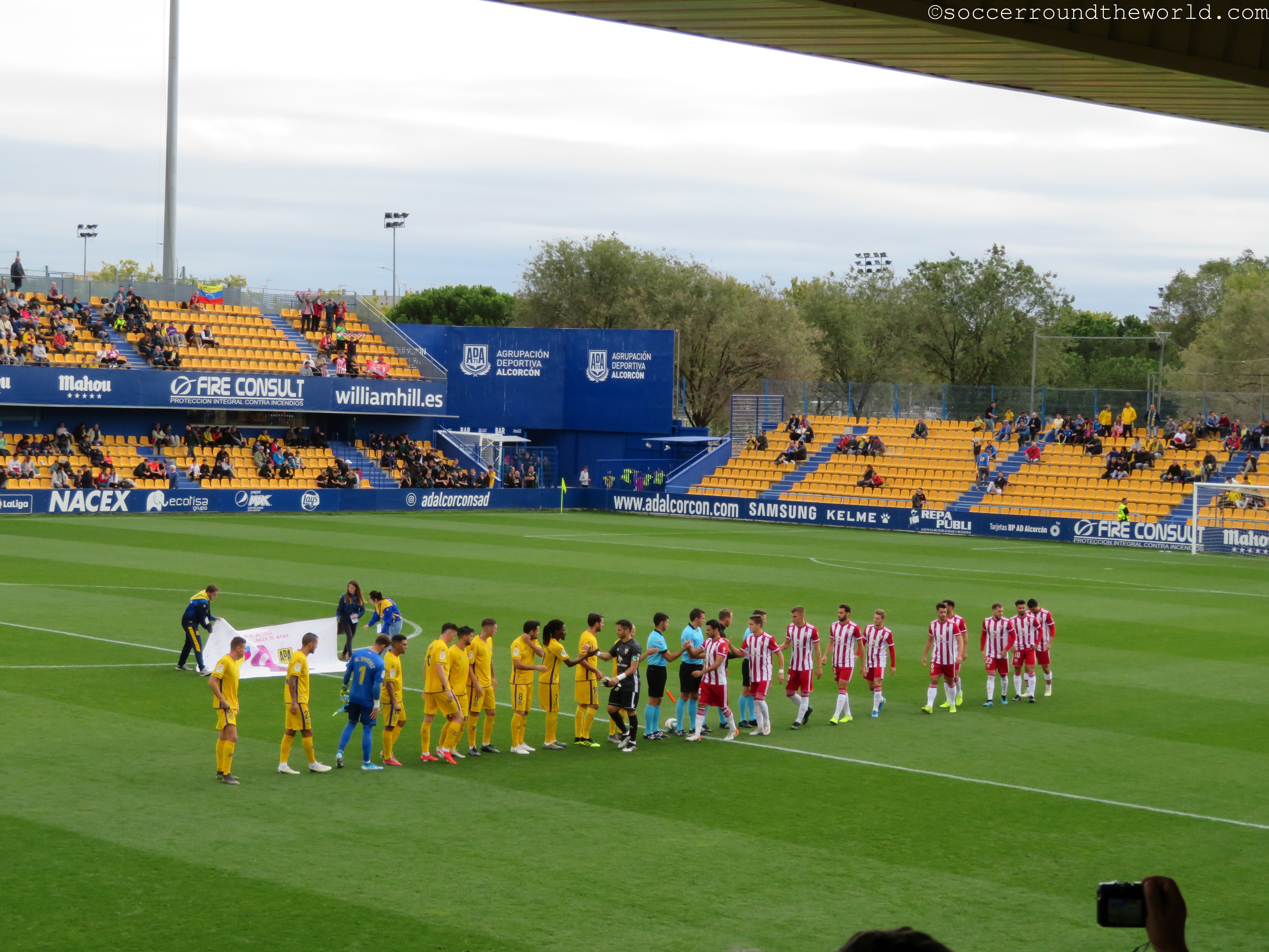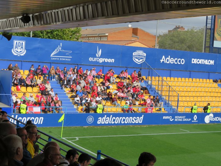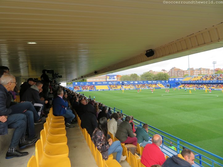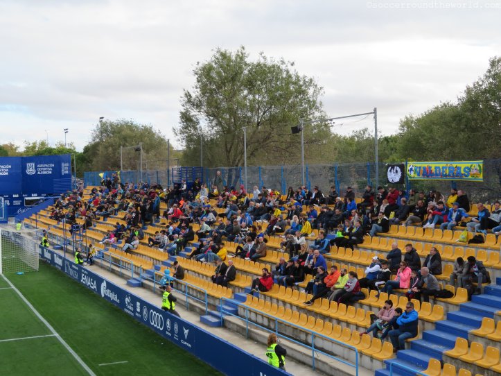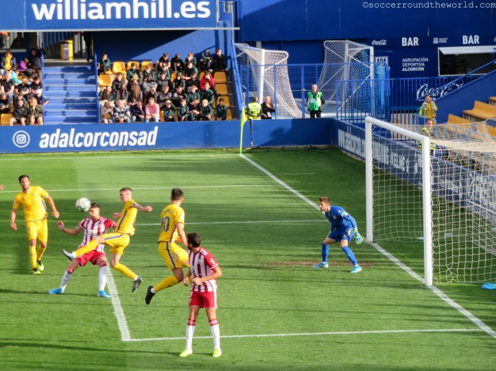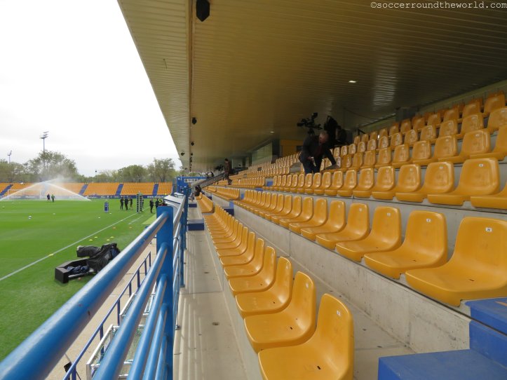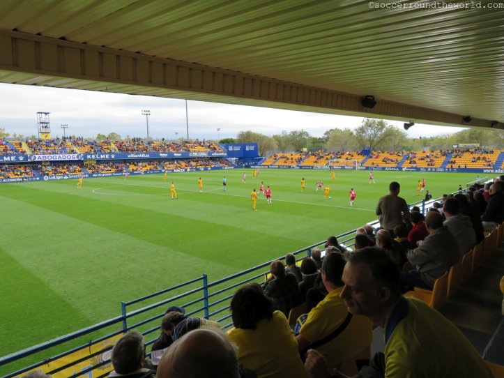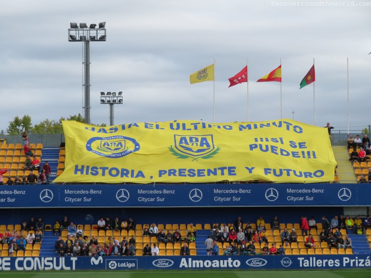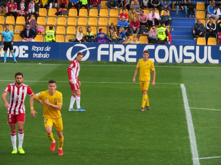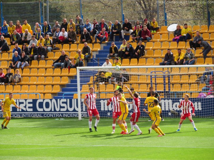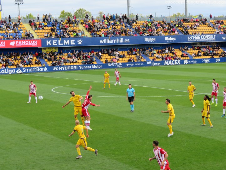 Dem städtischen Stadion mag es zwar äußerlich an besonderen Reizen mangeln, an der Kassa lässt man sich aber dennoch nicht lumpen und verlangt satte 40 Euro für eine Zweitligapartie. Selbst für spanische Verhältnisse ist dies doch beachtlich, vor allem wenn dann in den 90 Minuten eine wirklich erbärmliche Leistung beider Teams und des Schiedsrichters folgt. Bei den ersten beiden Treffern lässt sich der Mann in Schwarz auf minutenlange Diskussionen mit den Spielern ein, um zuerst den Elfer zum 1:0 (10. Minute) und dann den zuvor wegen Abseits aberkannten Treffer zum 1:1 (63. Minute) nach Videobeweis doch noch zu geben. Immerhin sorgt er so für Unterhaltung am Platz – und auf den Rängen. Halbwegs ansehnlich ist lediglich die turbulente Schlussphase, die noch je einen Treffer auf beiden Seiten verzeichnet.