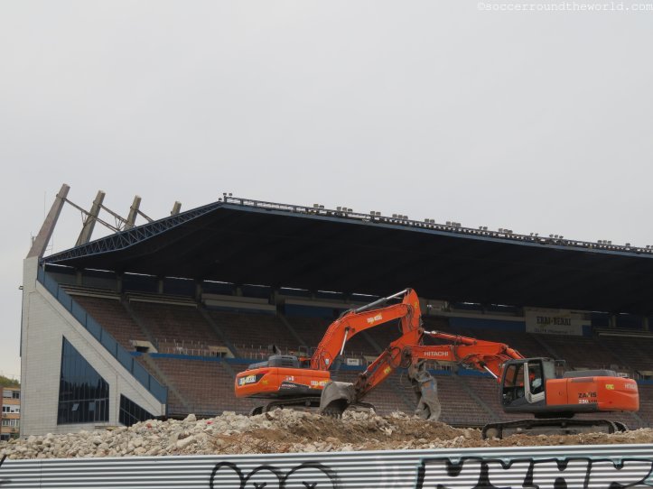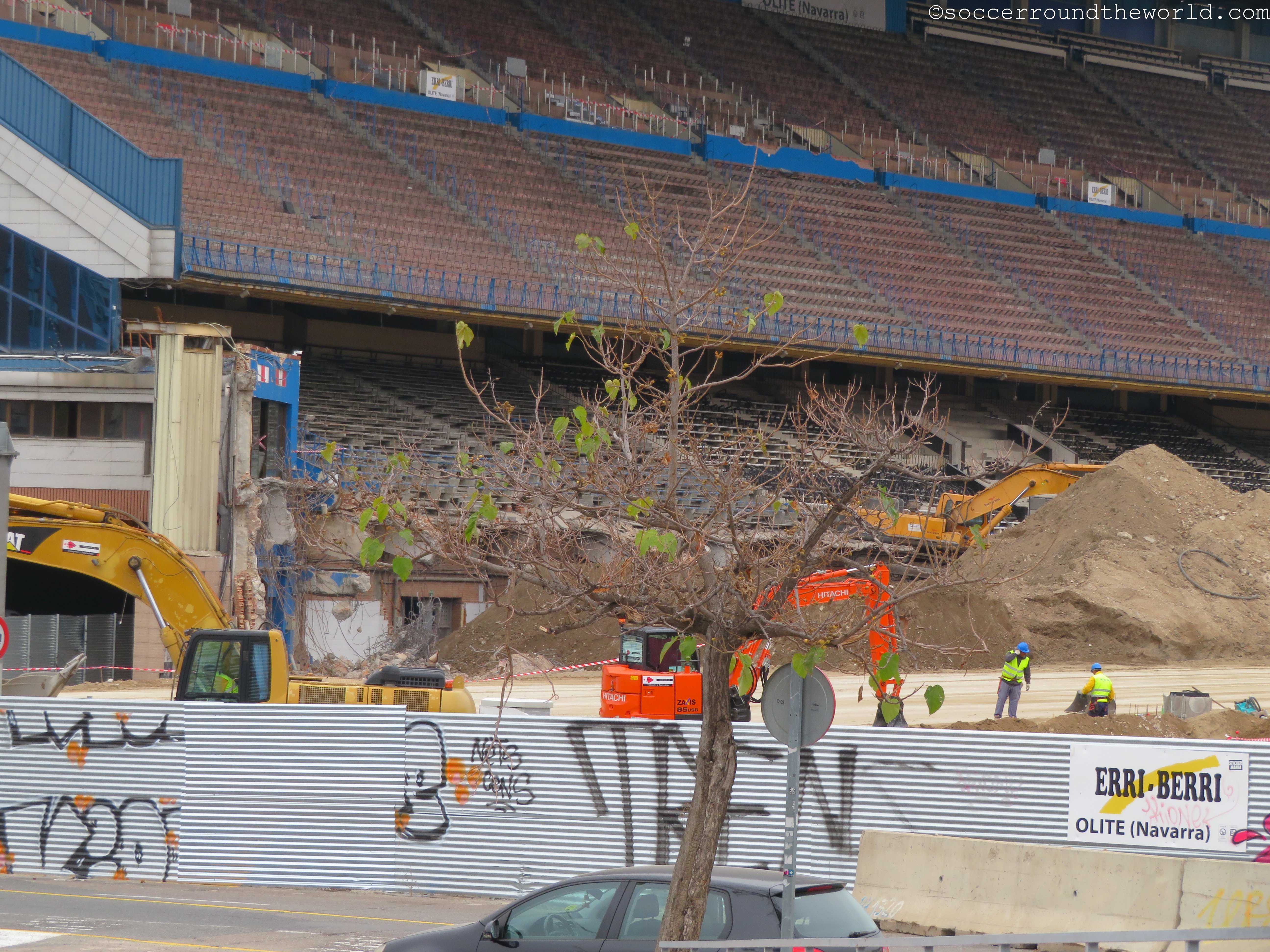 Vor der Fahrt zur neuen Heimat von Atletico am Stadtrand nehme ich zudem noch einen Abstecher zum alten Estadio Vicente Calderon, das gerade abgerissen wird. Vom legendären Stadion steht mittlerweile nur mehr die Haupttribüne, auf der ich vor sieben Jahren ein 4:3 gegen Rayo Vallecano mitverfolgen durfte.