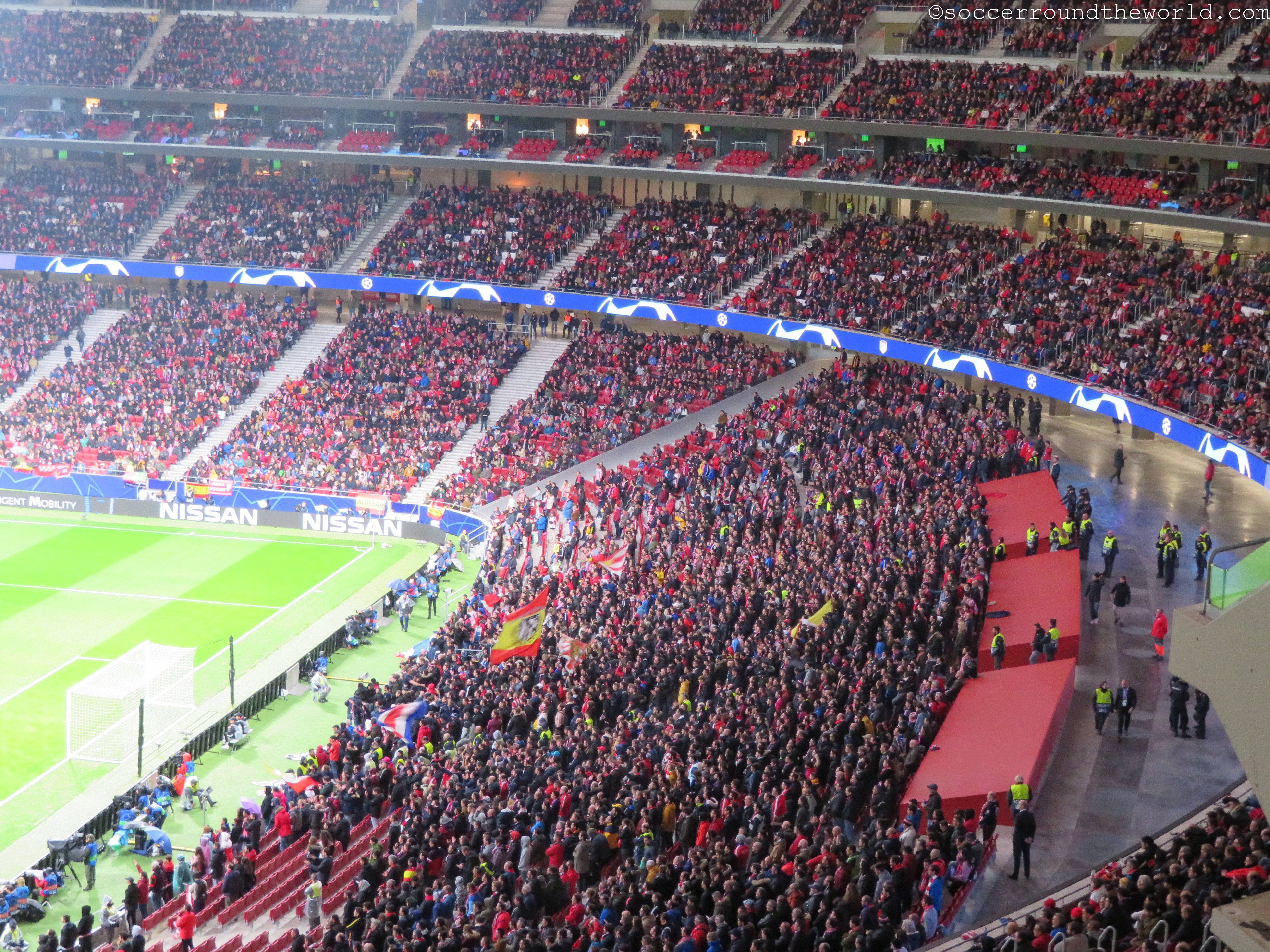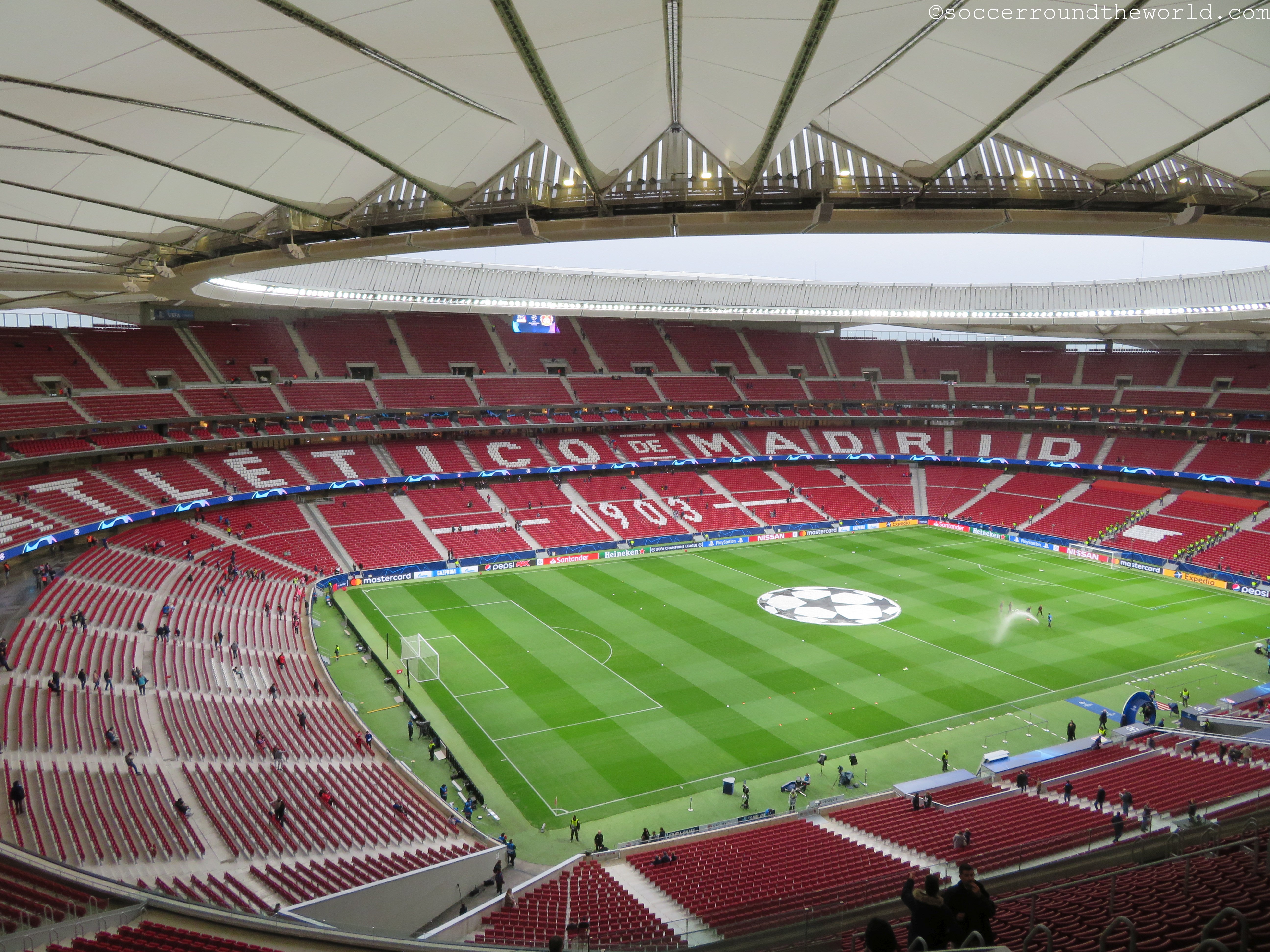 Das neue Stadion liegt weit weniger zentral bereits an der Stadtgrenze im Nordosten und wurde ursprünglich hinsichtlich der (erfolglosen) Bewerbung Madrids für die Olympischen Spiele errichtet. Erst danach einigte man sich mit Atletico auf eine Weiternutzung und baute erstens die Kapazität weiter aus und zweitens das Stadion in eine reine Fußball-Arena um. Zwar gab es dabei einige Verzögerungen, seit zwei Jahren ist nun aber das neue Metropolitano (Wanda ist ein Sponsor) die Heimat der Rot-Weißen. Der Name ist dabei eine Reminiszenz an die Atletico-Spielstätte von 1923-66, in dem das österreichische Nationalteam 1936 übrigens ein Freundschaftsspiel gegen das republikanische Spanien austrug.