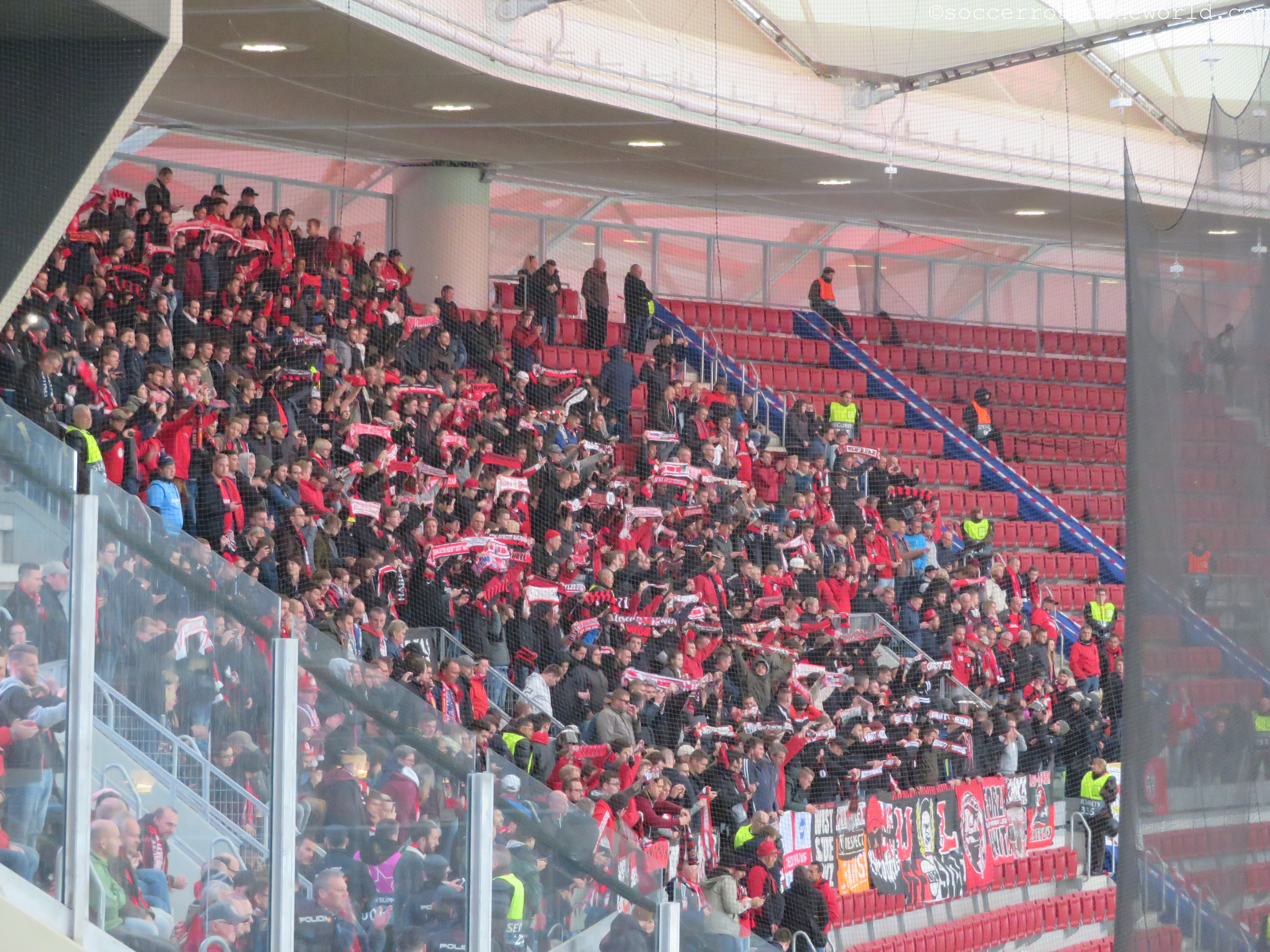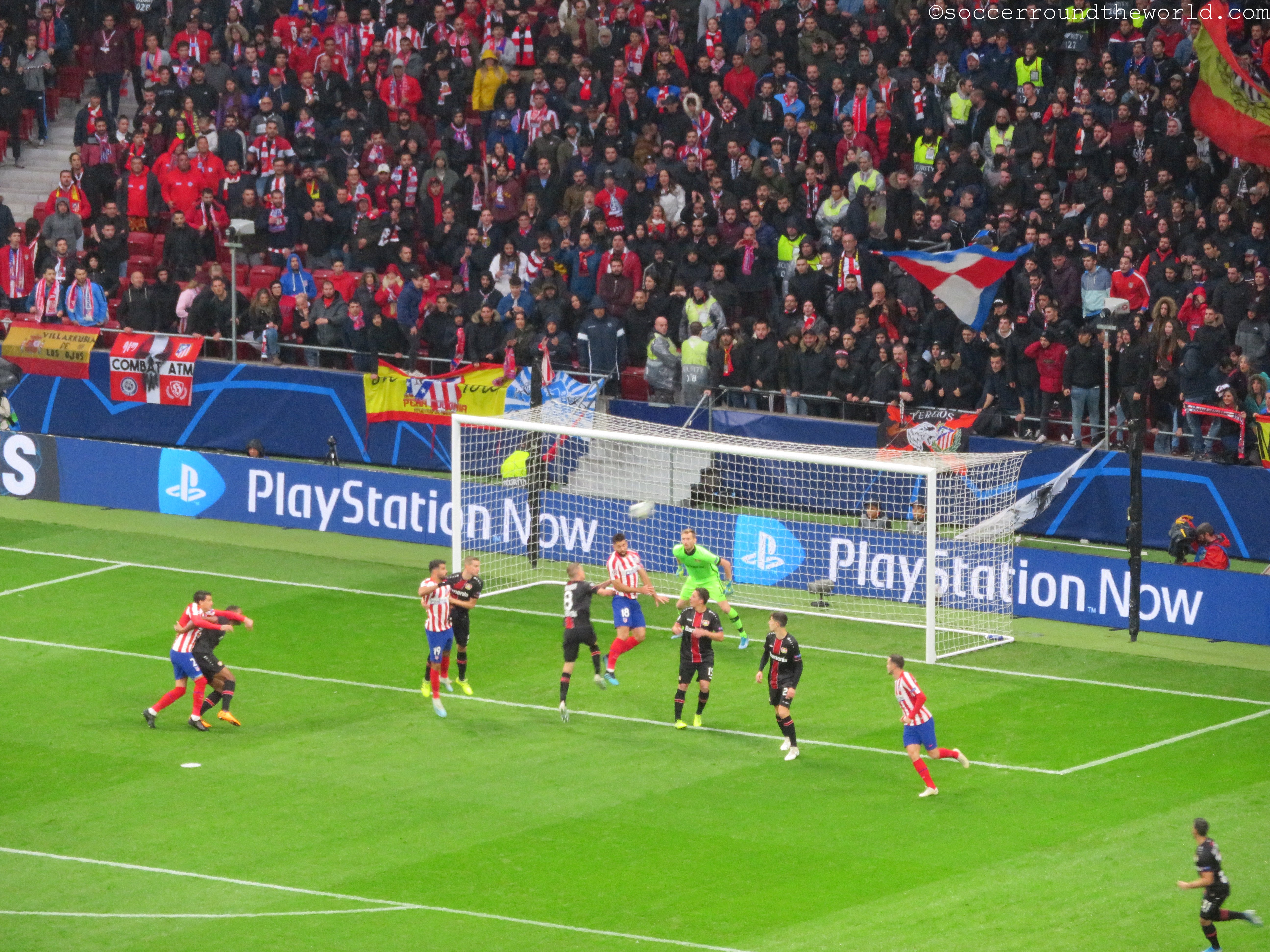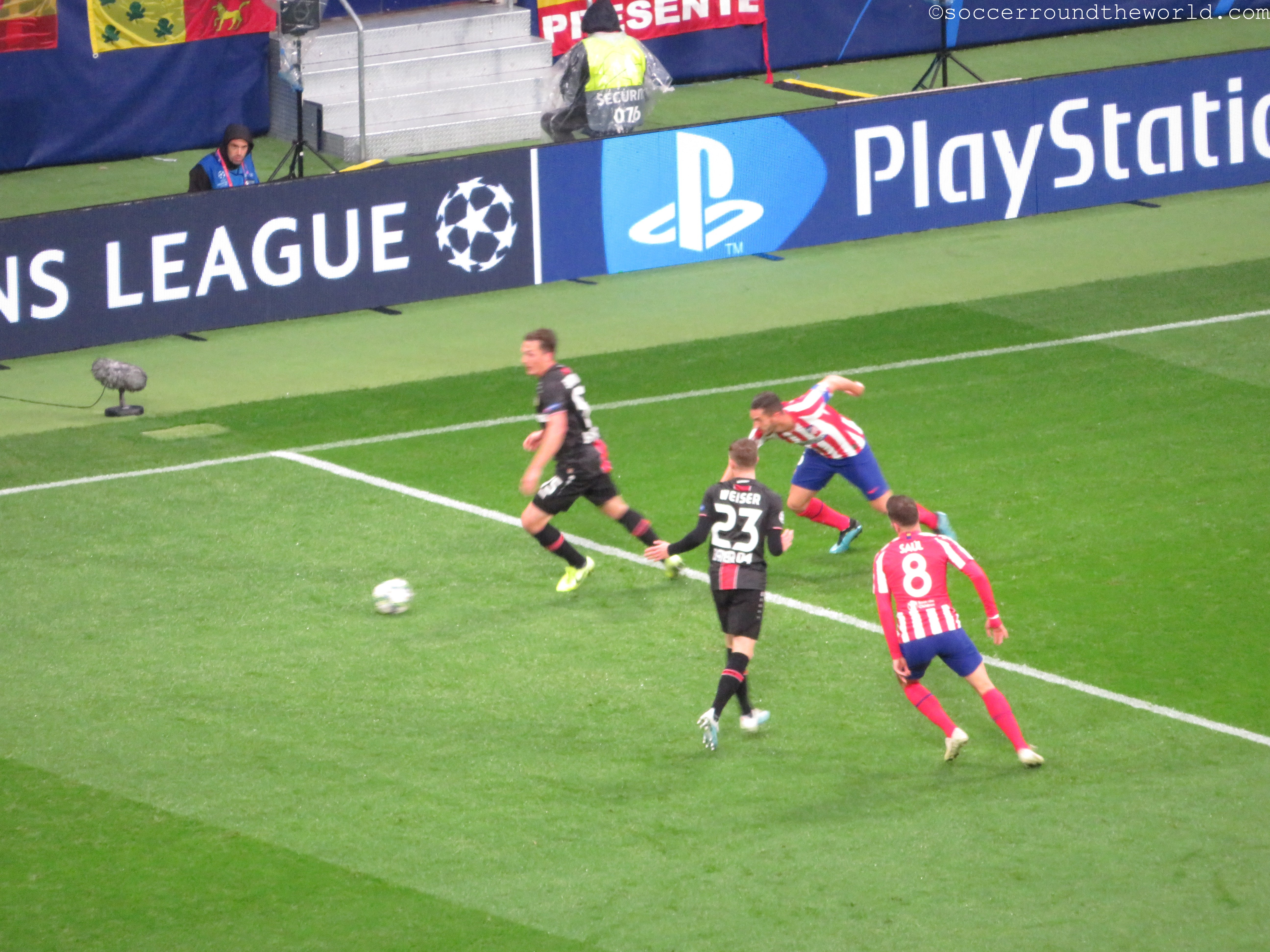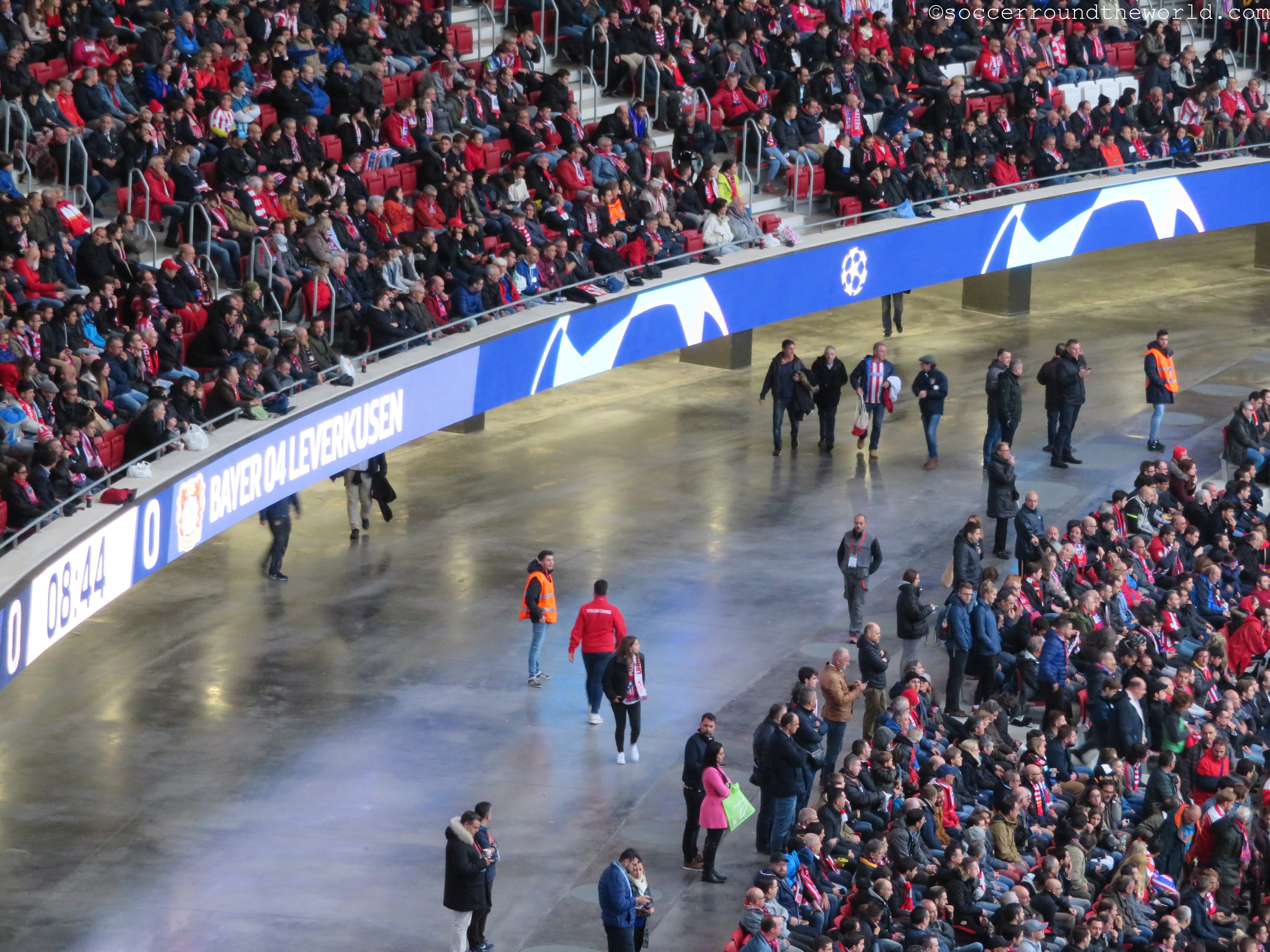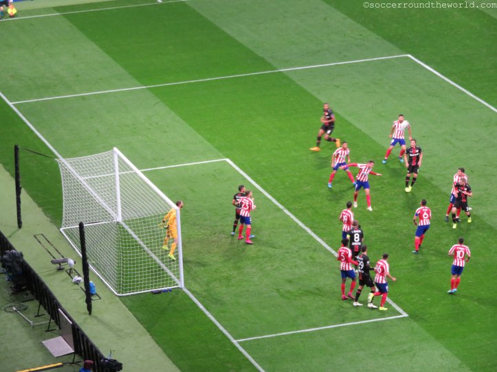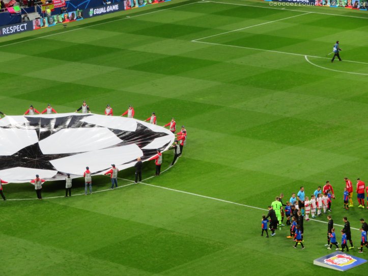Kurz vor Spielbeginn setzt in Madrid auch noch strömender Regen ein, nachdem es zuvor den Tag nur durchgehend genieselt hatte. Durch die Überdachung sind zwar die meisten Zuschauer davor geschützt, die Temperatur fällt dafür aber noch einmal um ein gutes Stück. Auf dem Spielfeld selbst entwickelt sich aber durchaus ein hitziger Schlagabtausch, auch wenn das einzige und daher spielentscheidende Tor erst in der 78. Minute fällt. Durchaus engagiert sind auch beide Fanlager – wobei Leverkusen durchaus gut den Auswärtssektor füllt und sich immer wieder mit Gesängen bemerkbar macht.
