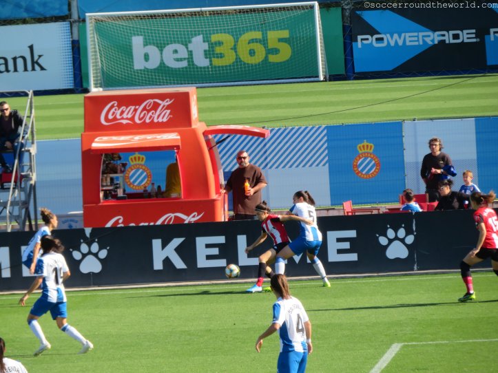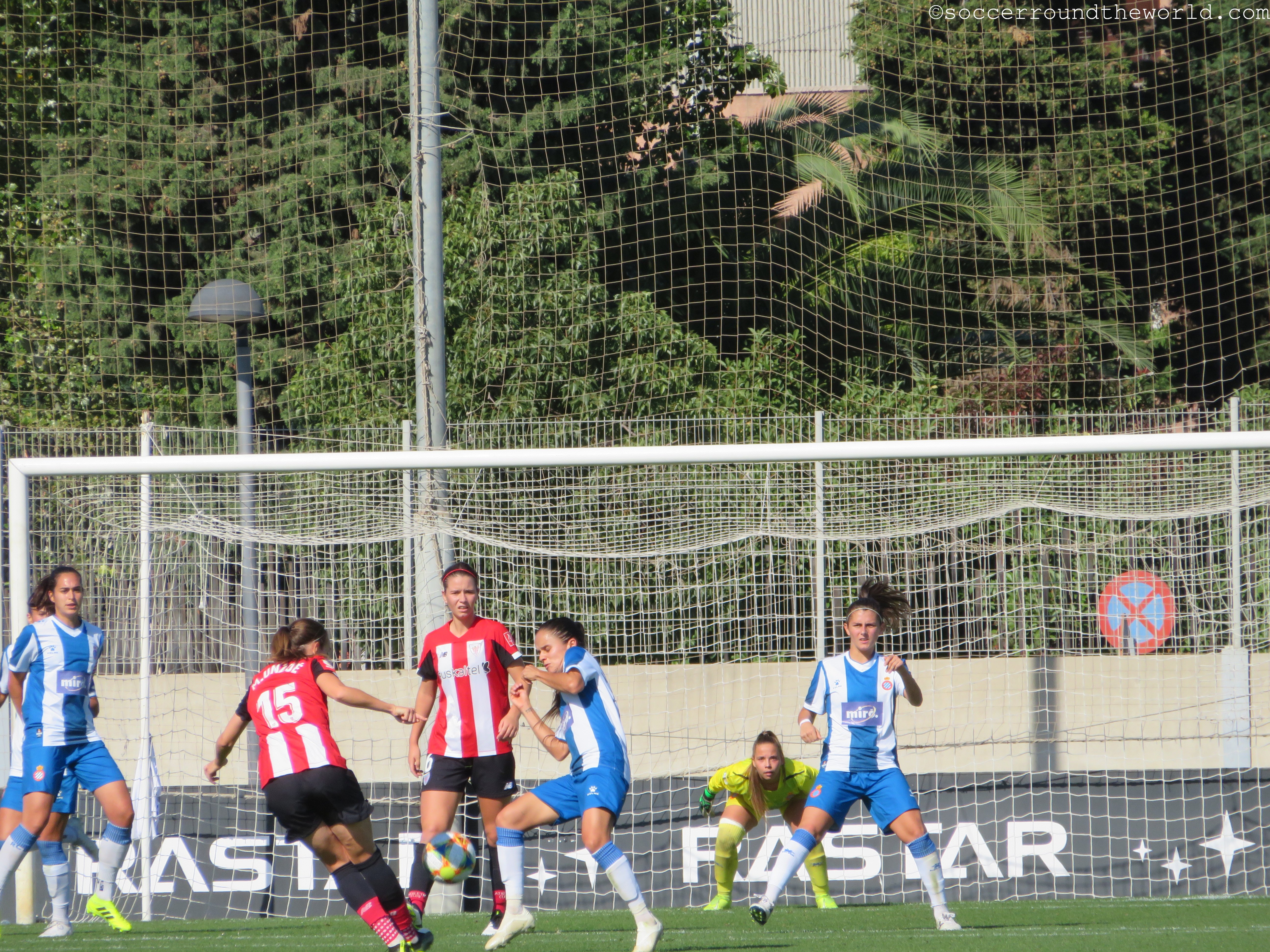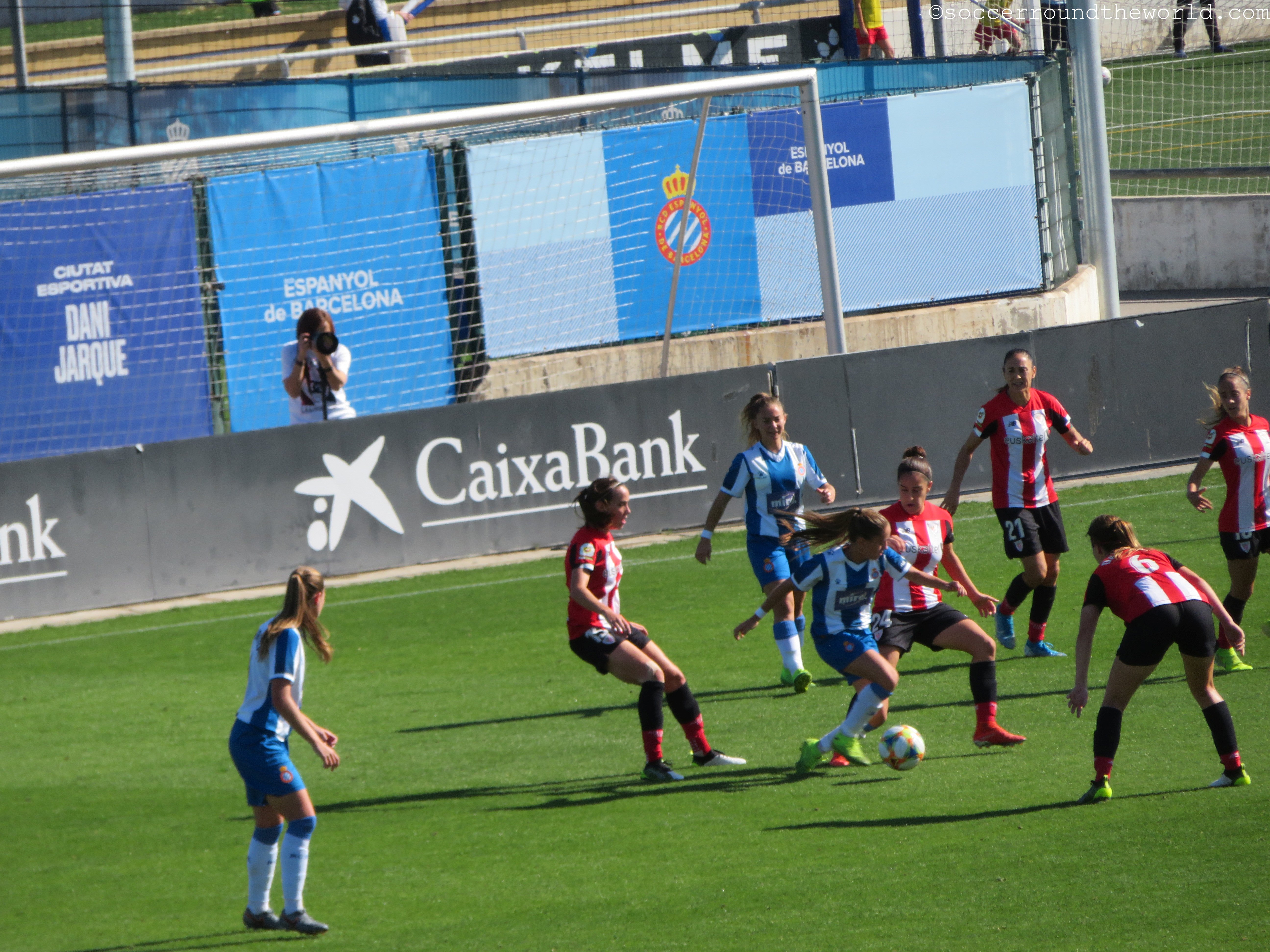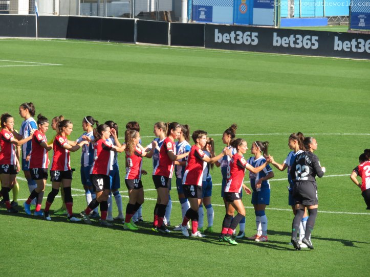 Das Gefälle innerhalb der ersten spanischen Frauen-Liga ist allerdings sehr groß, wie auch dieses Spiel im Trainingszentrum von RCD Espanyol, das dem 2009 in einem Trainingslager verstorbenen RCD-Spieler Dani Jarque gewidmet ist, zeigt. Espanyol zählte zwar zu den Pionierinnen und gründete bereits 1970 eine eigene Damenmannschaft, büßte aber seit dem Einstieg der größeren Vereine (lokal klarerweise des FC Barcelona) kontinuierlich an seiner früheren Dominanz ein. Heuer spielt das Team sogar klar gegen den Abstieg. Auf der anderen Seite Athletic Bilbao, das zuletzt sogar seine zweite Frauenmannschaft professionalisiert hat, über die klar durchtrainierteren Spielerinnen verfügt und als eindeutiger Favorit angereist ist.