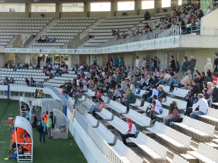 Weitaus besser gefällt mir hingegen das städtische Stadion von L’Hospitalet, das für einen Viertligisten gar überproportioniert wirkt. Der Anspruch des 1957 durch Fusion dreier Vereine entstandenen Vereins ist auch deutlich höher. Dennoch schaffte man es bisher nur einige Saisonen lang, in der zweiten Liga zu spielen. Momentan gurkt man eben gar nur in der regionalen Tercera herum.