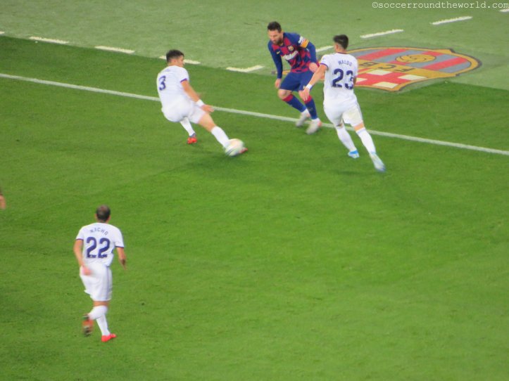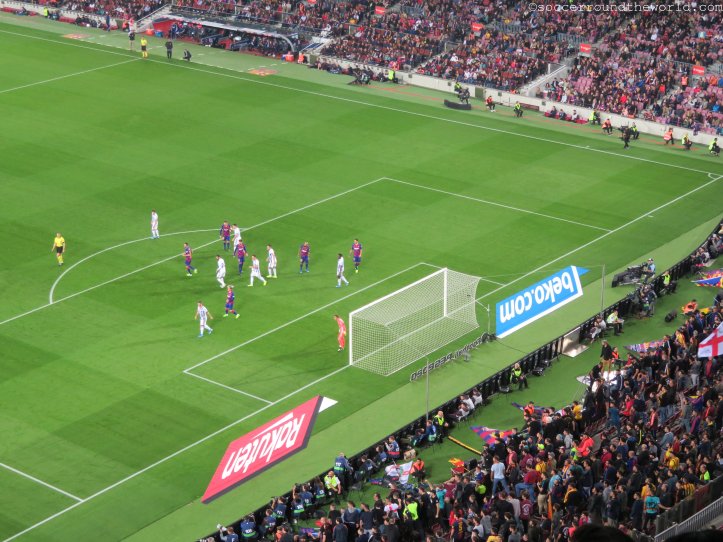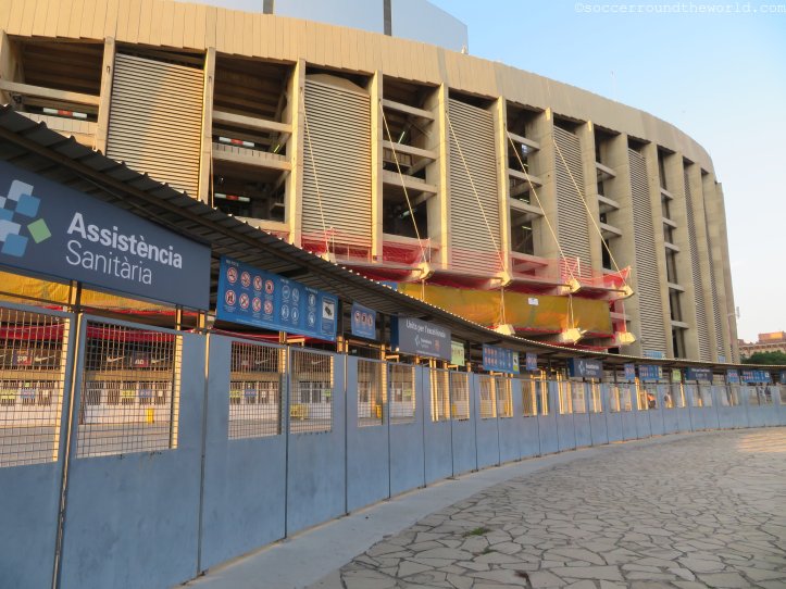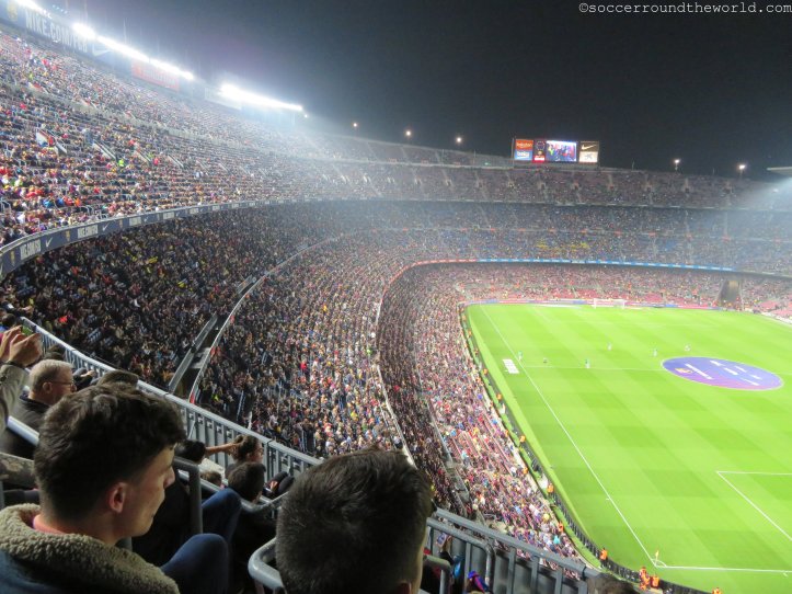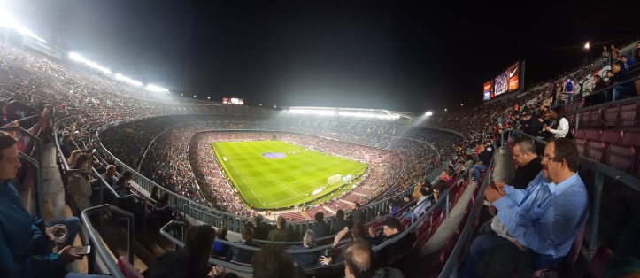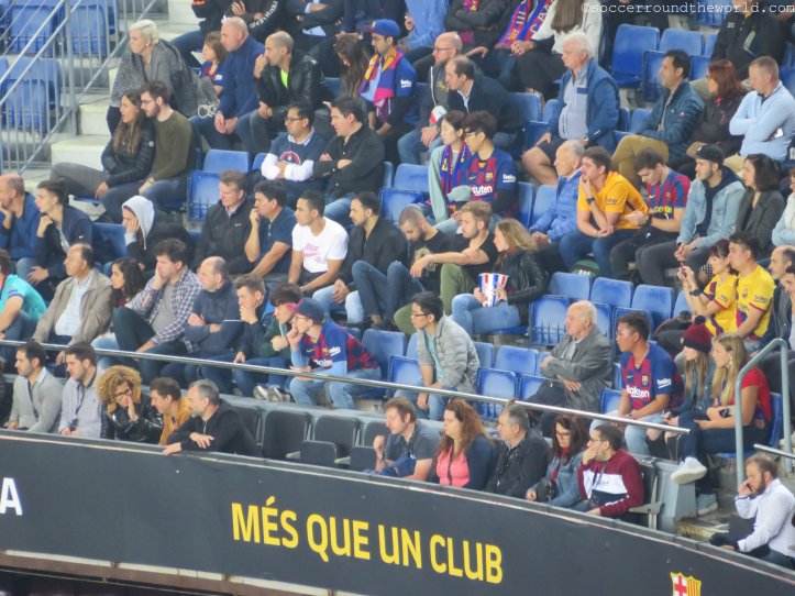 Beim am Samstag vorgesehenen Clasico wären wohl auch die Ränge um einiges voller gewesen, obwohl die knapp 60.000 durchaus eine ansehnliche Kulisse hergeben. Bei den Eingängen merkt man sehr deutlich, dass FC Barcelona mittlerweile eine globalisierte Marke ist. Katalanisch oder Spanisch hört man unter den Wartenden relativ selten – Französisch, Deutsch, Russisch und diverse asiatische Sprachen dafür umso mehr. Einheimische versuchen eher ihre Karten auf dem (heute) nicht sehr gefragten Schwarzmarkt doch noch anzubringen.