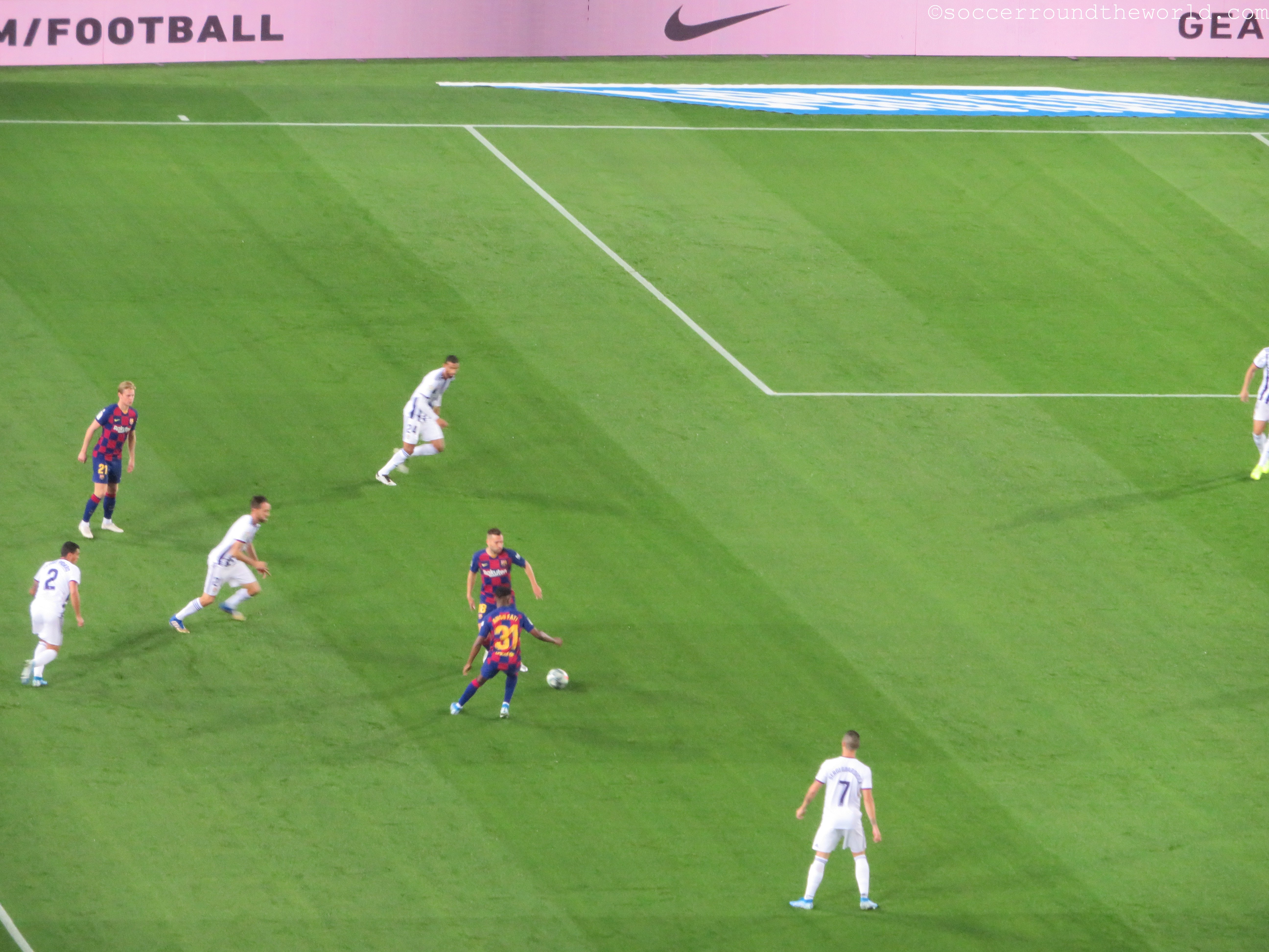 Das erste Heimspiel des FC Barcelona seit dem Beginn der Protestwelle gegen die Urteile für mehrere katalanische Politiker, welche die Unabhängigkeit von Spanien angestrebt haben, kommt freilich nicht ohne Unmutsäußerungen aus. Da der Gegner zwar ein „Real“ im Namen führt, jedoch nicht wie eigentlich laut Spielplan vorgesehen aus Madrid kommt, sind diese zwar durchaus lautstark und auffallend, aber halten sich in einem doch sehr überschaubaren Rahmen.