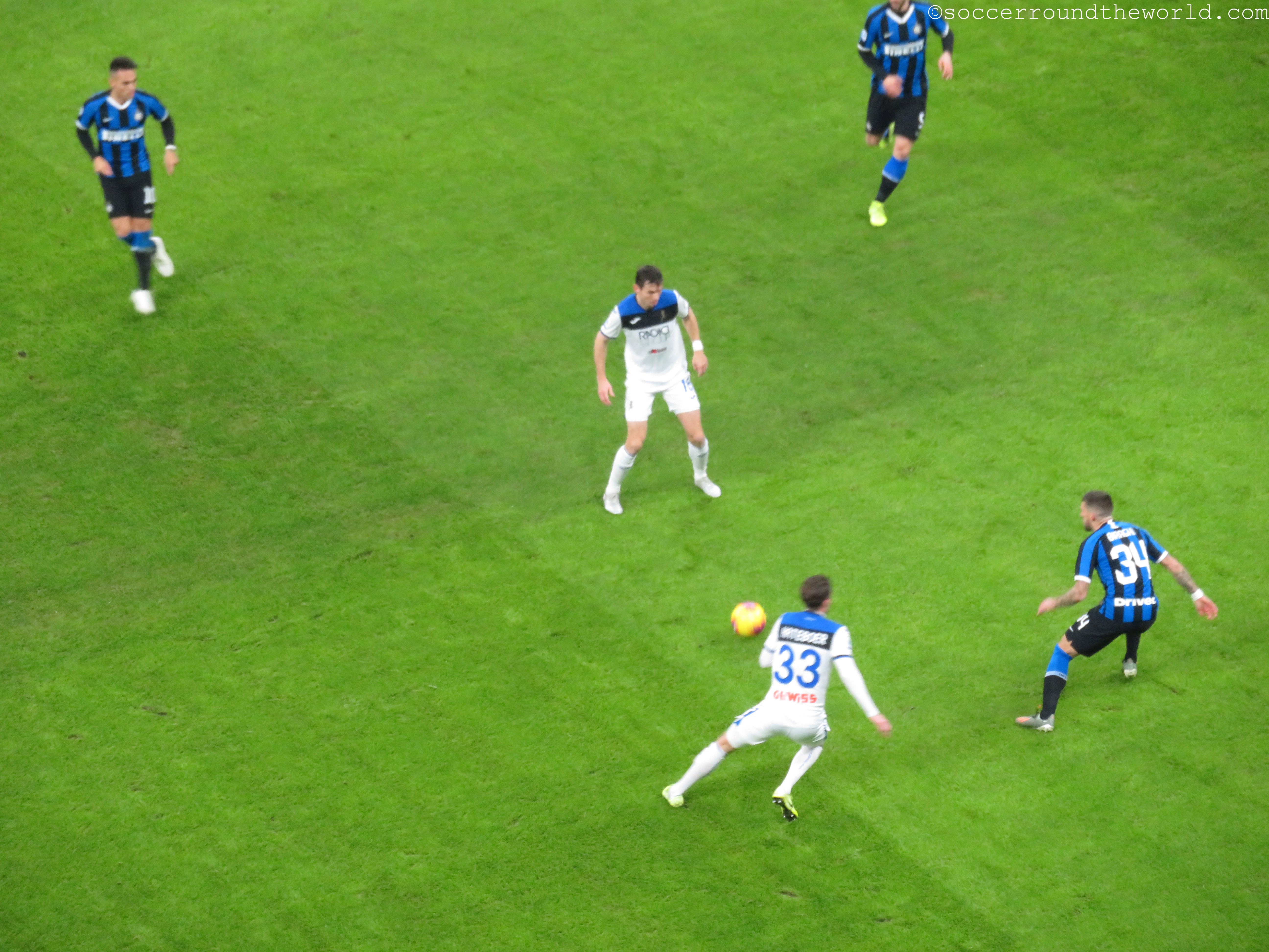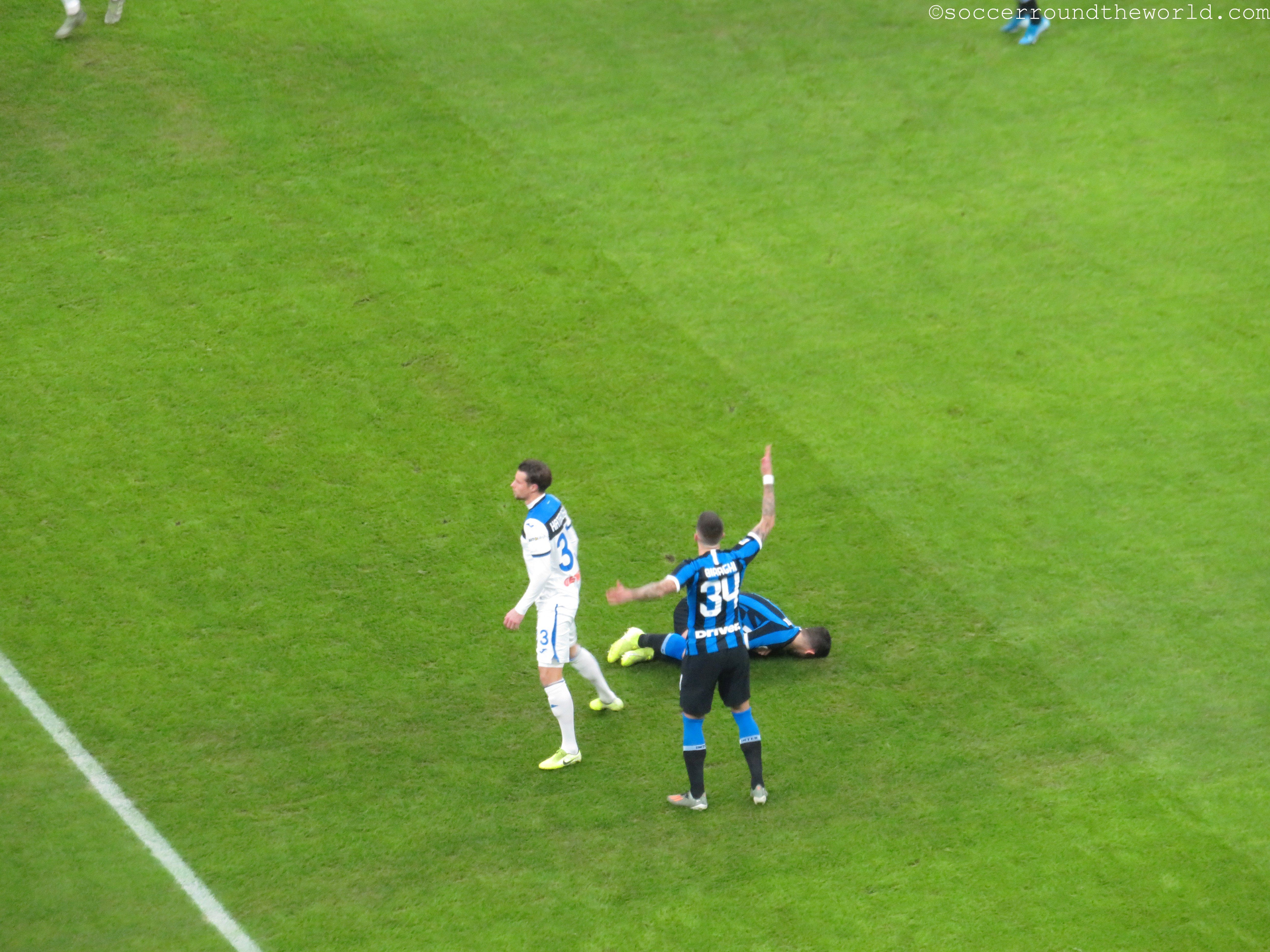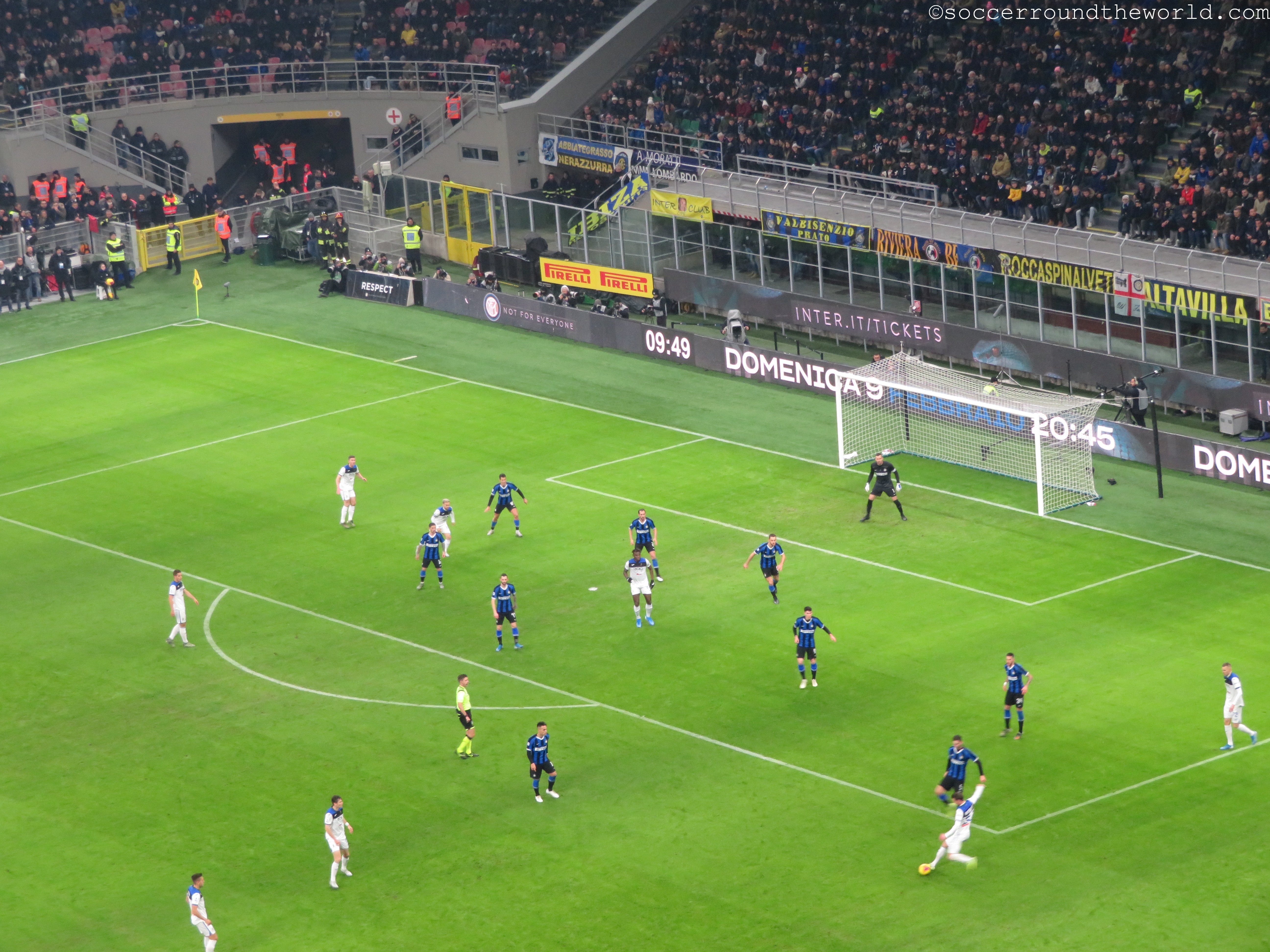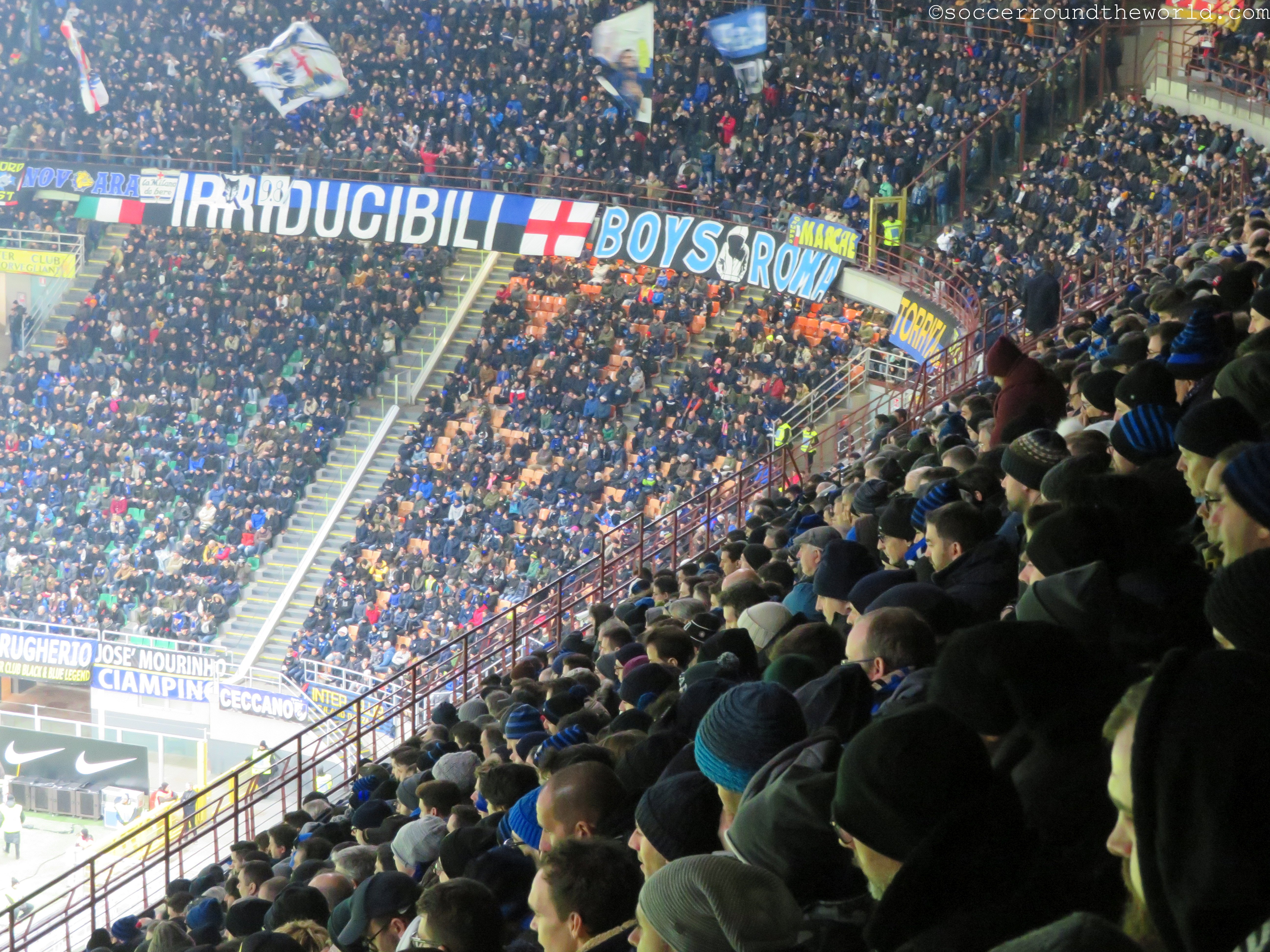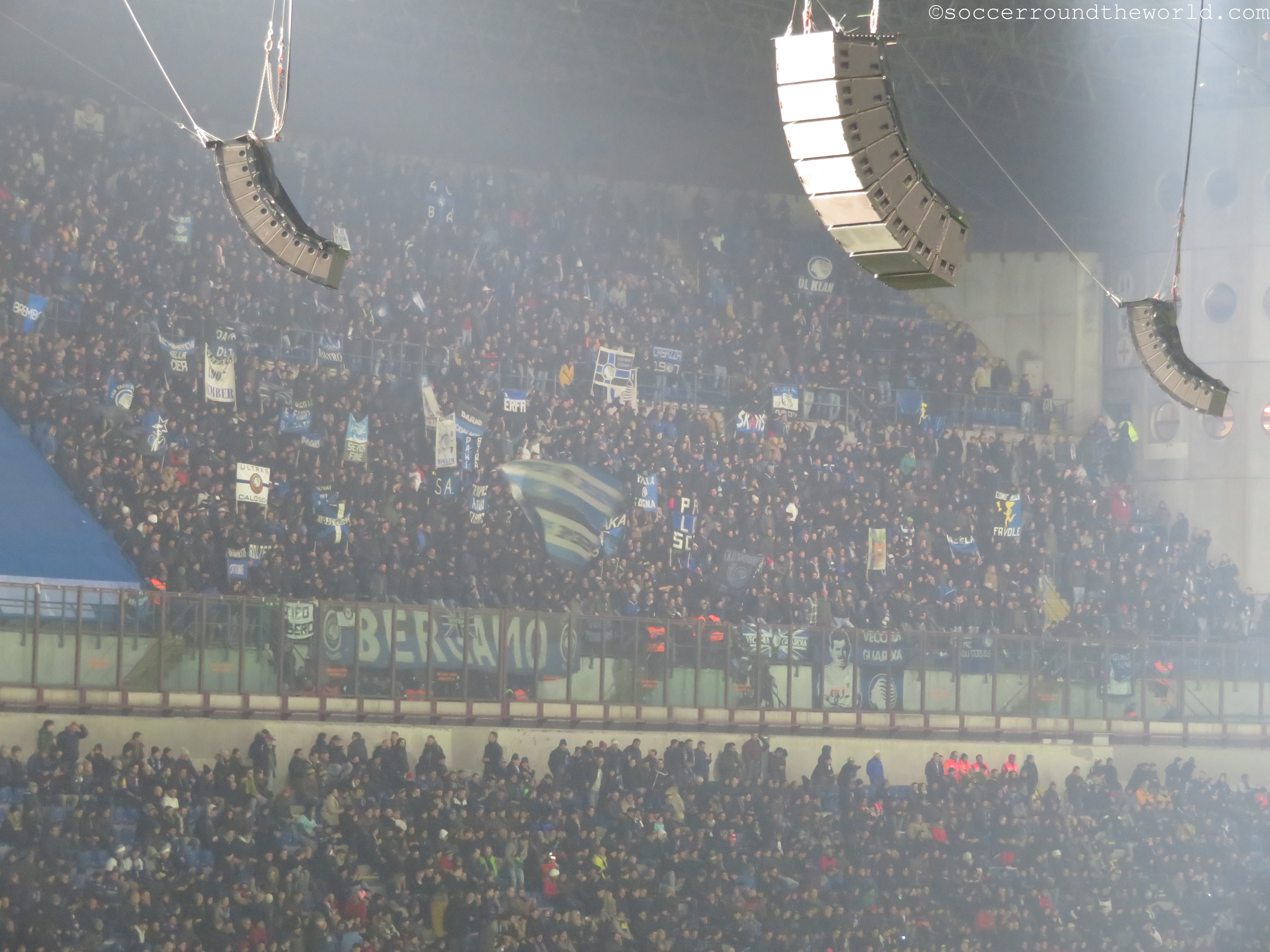 Die Erwartungen an dieses Match werden dadurch in die Höhe getrieben, können aber nur über kleine Strecken dann auch tatsächlich erfüllt werden. Der frühe Führungstreffer für Inter lässt das gesamte Stadion in durchaus beeindruckender Lautstärke jubeln, ein Stimmungsboykott der heimischen Ultras in den ersten 15 Minuten drückt die Stimmung allerdings doch beachtlich. Als sich die Heimkurve dann doch zu Wort meldet, bessert sich die Atmosphäre klarerweise deutlich, bleibt aber dennochh hinter den bereits geweckten Erwartungen zurück. Erst die turbulente Schlussphase des Spiels bringt dann wieder wirklich starke Emotionen auf den Rängen hervor.