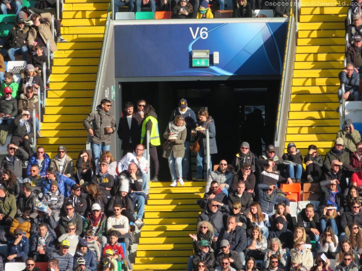 Dem mittäglichen Serie-A-Spiel steht damit also nichts mehr im Wege. Weniger gastfreundlich geben sich heute allerdings die Schwarz-Weißen Hausherren, die sich gegen Sassuolo klar und deutlich mit 3:0 durchsetzen. Dementsprechend gut ist auch die Stimmung auf den Rängen, die von einer sehr kreativen Fanszene hinter dem Tor angekurbelt wird.